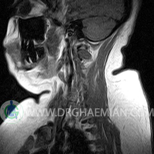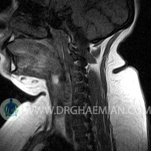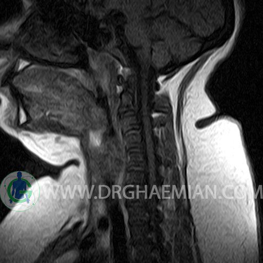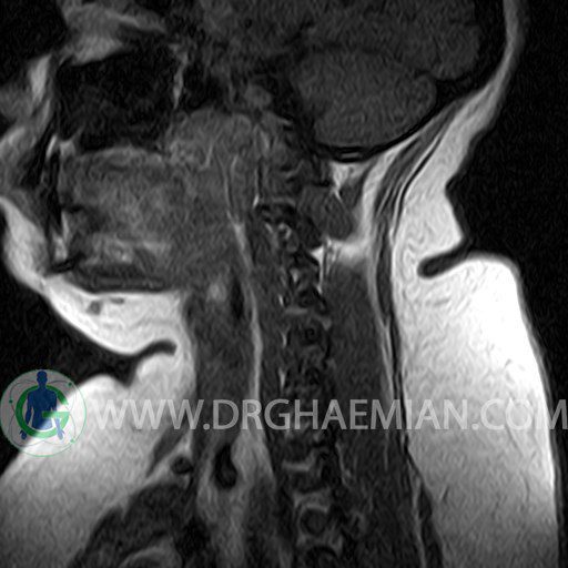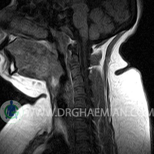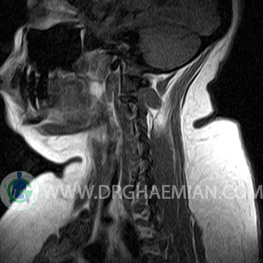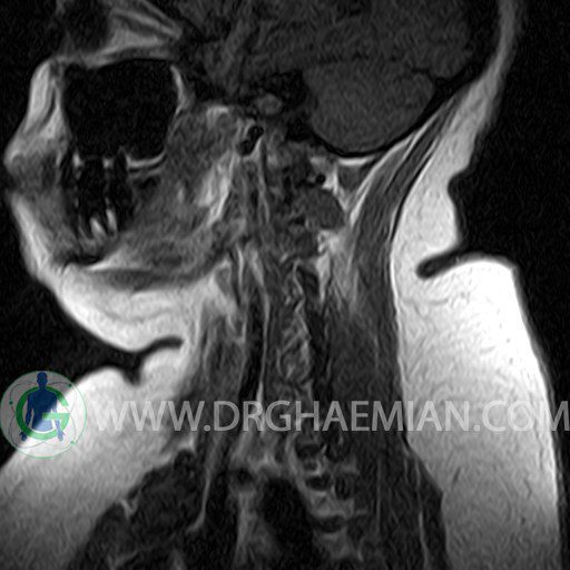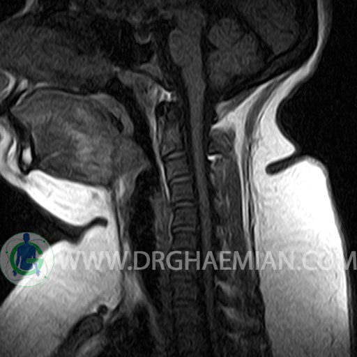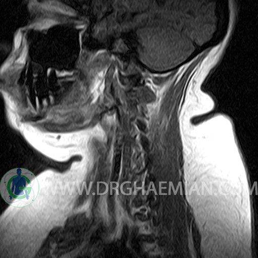 ام آر آی گردن با استفاده از انرژی آهنرباهایی قوی نصاویری از قسمت ستون فقرات که از گردن (ناحیه گردن ستون فقرات) عبور می کند، ایجاد می کند. ام آر آی از تشعشعات استفاده نمی کند. در این کیس کیفوز گردن و دیهیدراته و بیرون زدگی مهره های C3/C4/C5/C6/C7 دیده می شود.