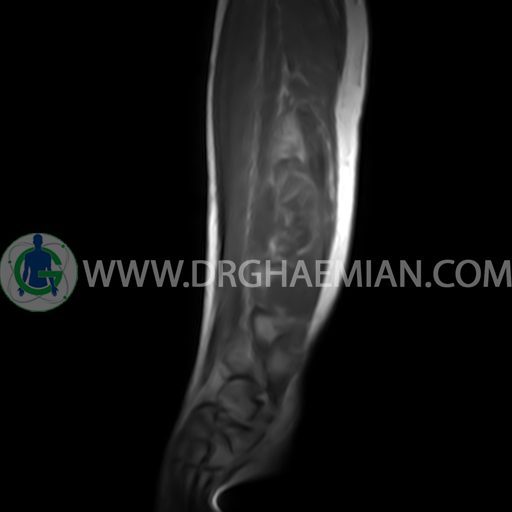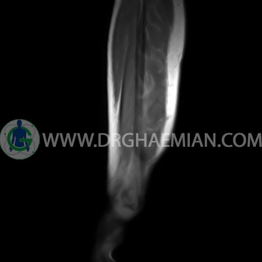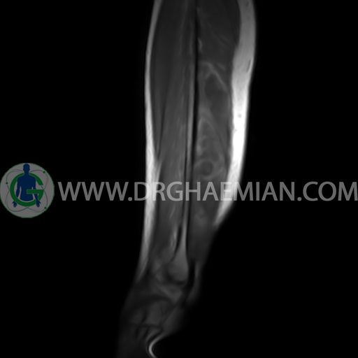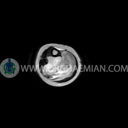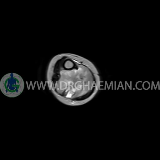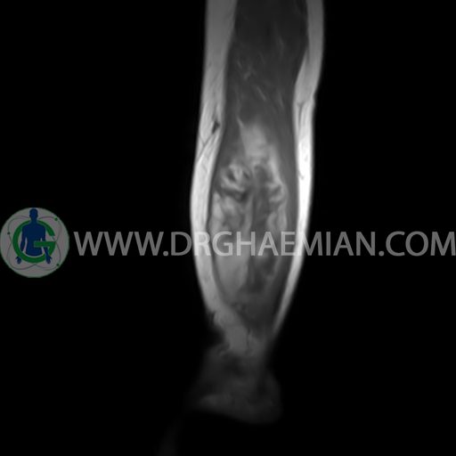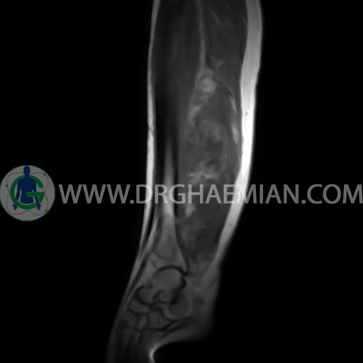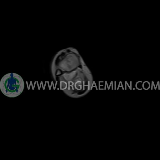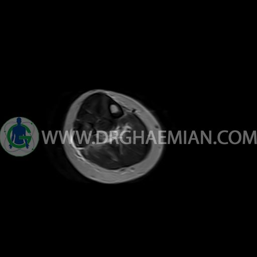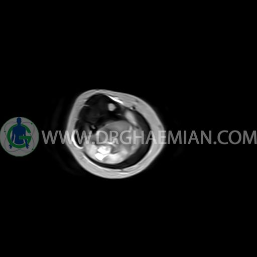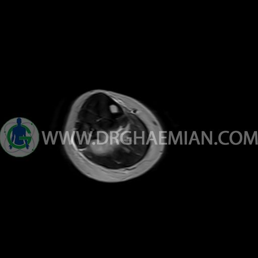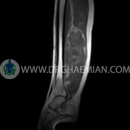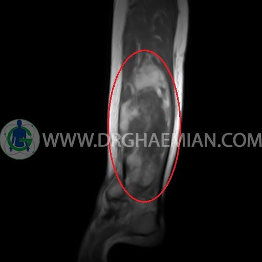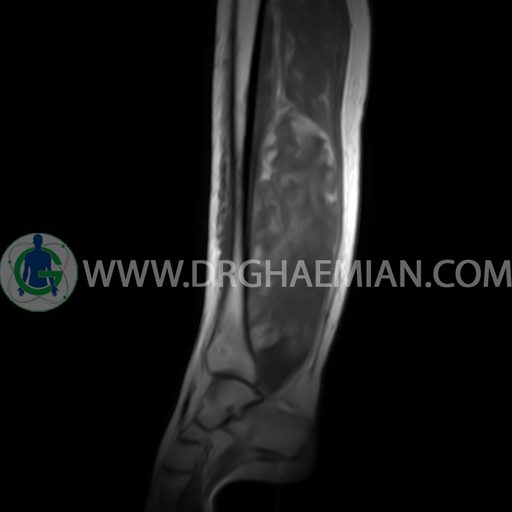 ام آر آی پا روشی تصویربرداری از پا است که با استفاده از آهنرباهایی قوی تصاویری از پا ایجاد می کند. این تصاویر شامل قوزک، ساق پا و بافت های پیرامون آن ها می شود. ام آر آی از تشعشعات استفاده نمی کند. در این کیس تومور جاینت سل به ابعاد 60x70x180 میلی متر، ضایعه نئوپلاستیک و متاستاز استخوانی دیده می شود.