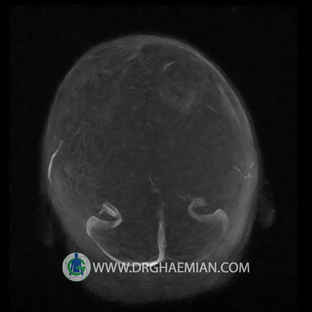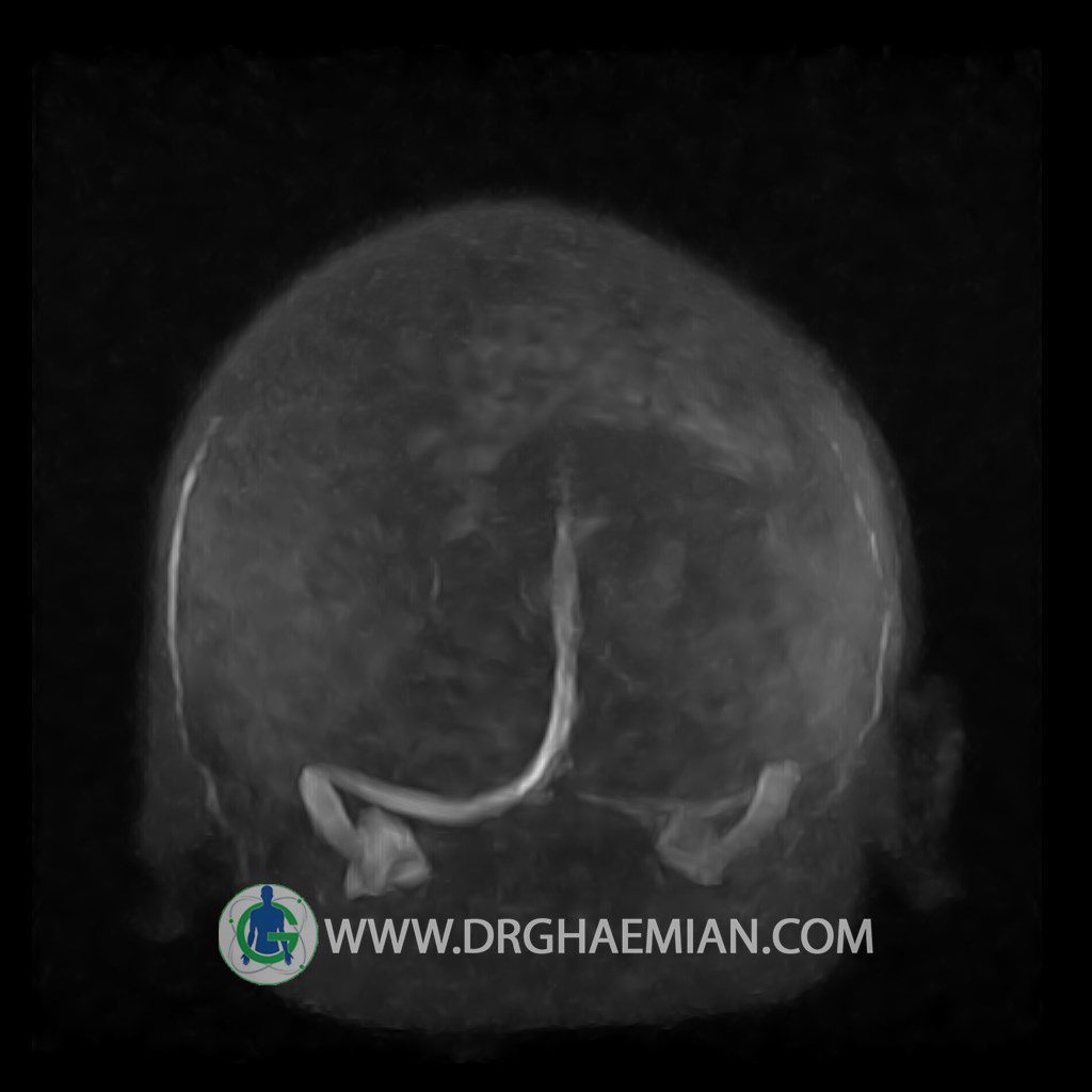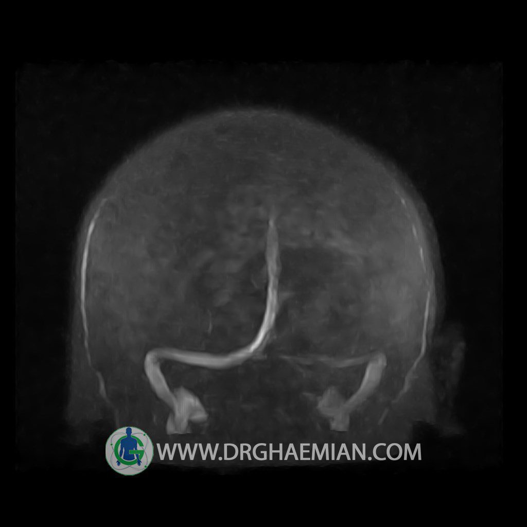 ام آر وی یک روش تصویربرداری دقیق و غیر تهاجمی است که برای معاینه ورید های بدن و ارزیابی سلامت رگ ها استفاده می شود. ورید ها خون را از اعضای بدن به قلب باز می گرداند تا دوباره اکسیژن و مواد مغذی به خون داده شود. ام آر وی جریان خون را ارزیابی و موارد غیرعادی مضر مانند لخته های خونی را شناسایی می کند. در این کیس هیپوپلازی مادرزادری، ایسکمی فوکال مغز و گلیوما سطح پایین مشاهده می شود.