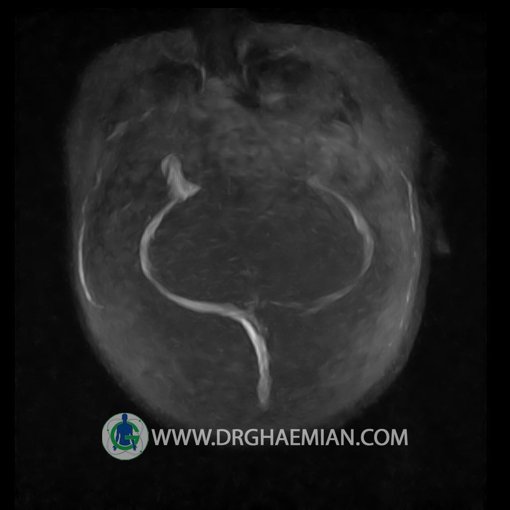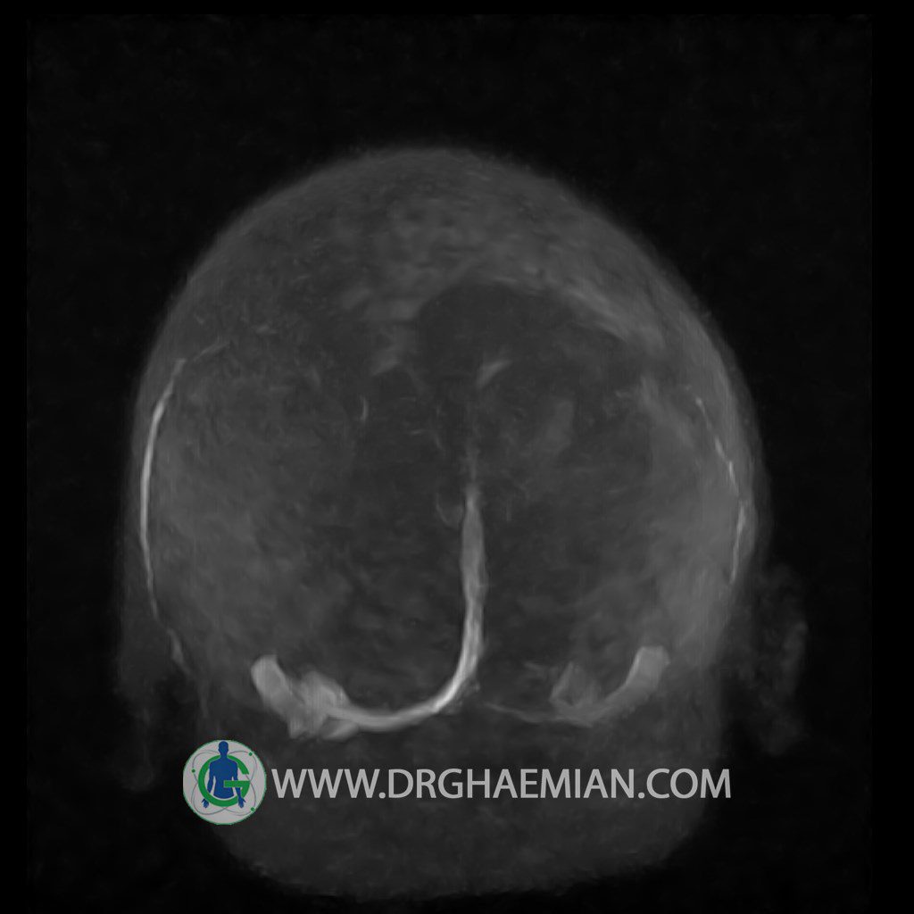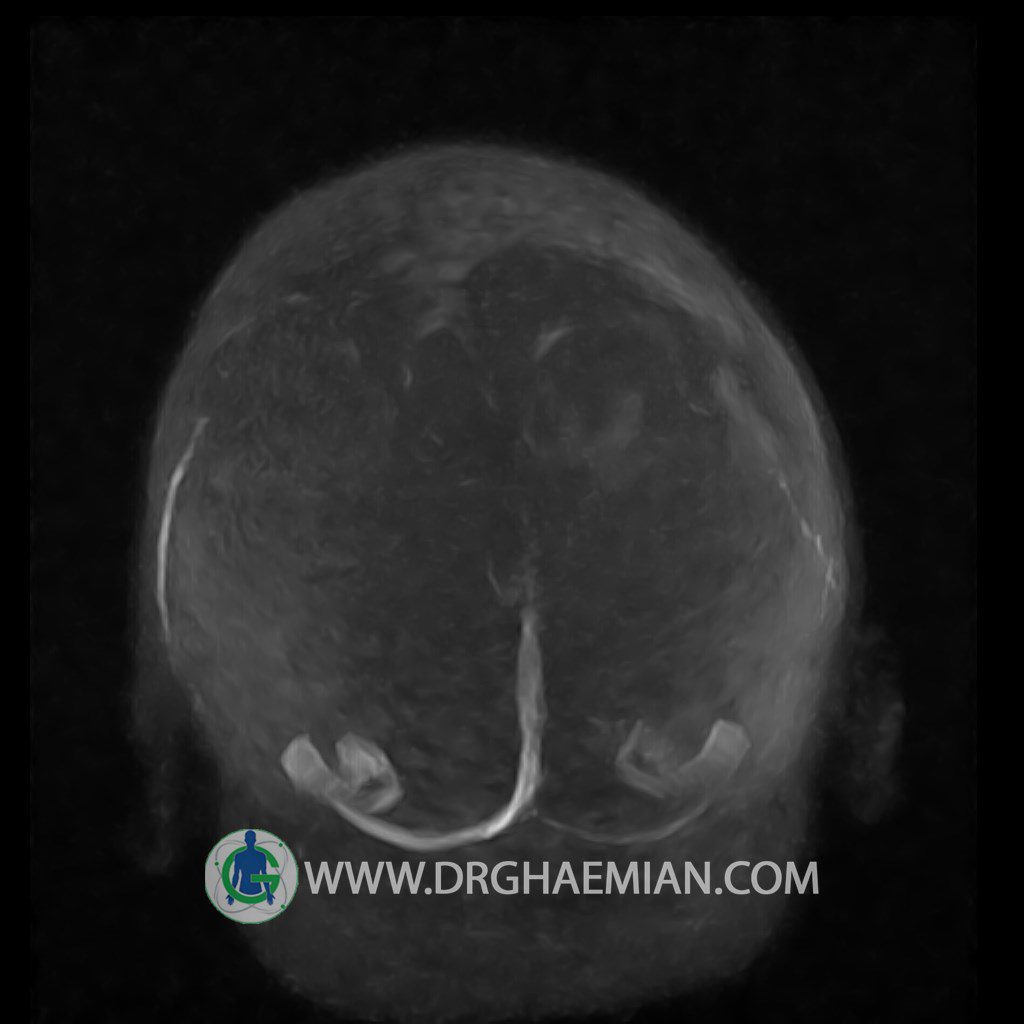 ام آر وی یک روش تصویربرداری دقیق و غیر تهاجمی است که برای معاینه ورید های بدن و ارزیابی سلامت رگ ها استفاده می شود. ورید ها خون را از اعضای بدن به قلب باز می گرداند تا دوباره اکسیژن و مواد مغذی به خون داده شود. ام آر وی جریان خون را ارزیابی و موارد غیرعادی مضر مانند لخته های خونی را شناسایی می کند. در این کیس هیپوپلازی مادرزادری، ایسکمی فوکال مغز و گلیوما سطح پایین مشاهده می شود.