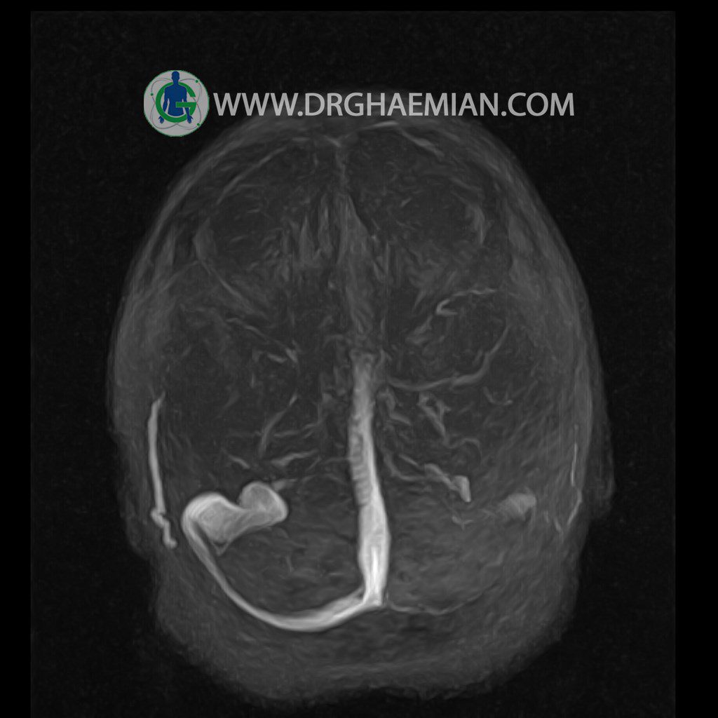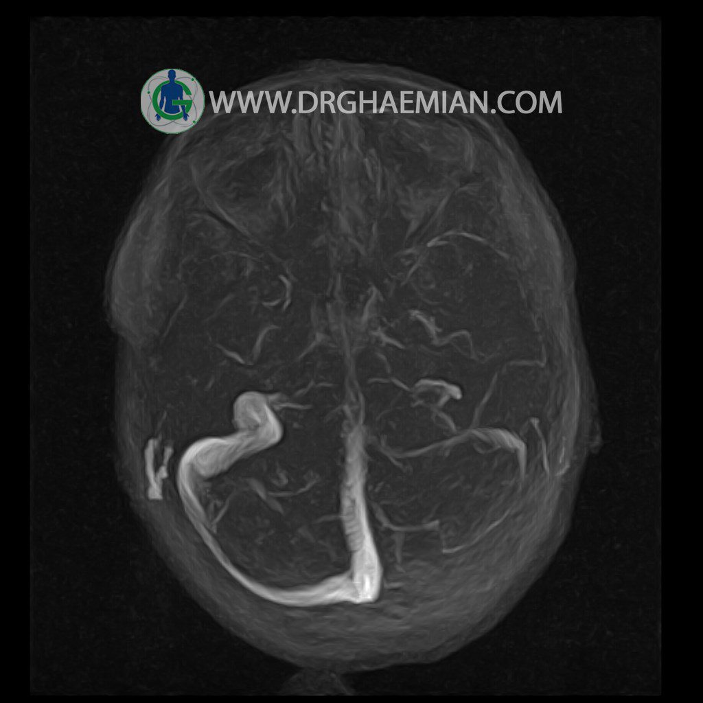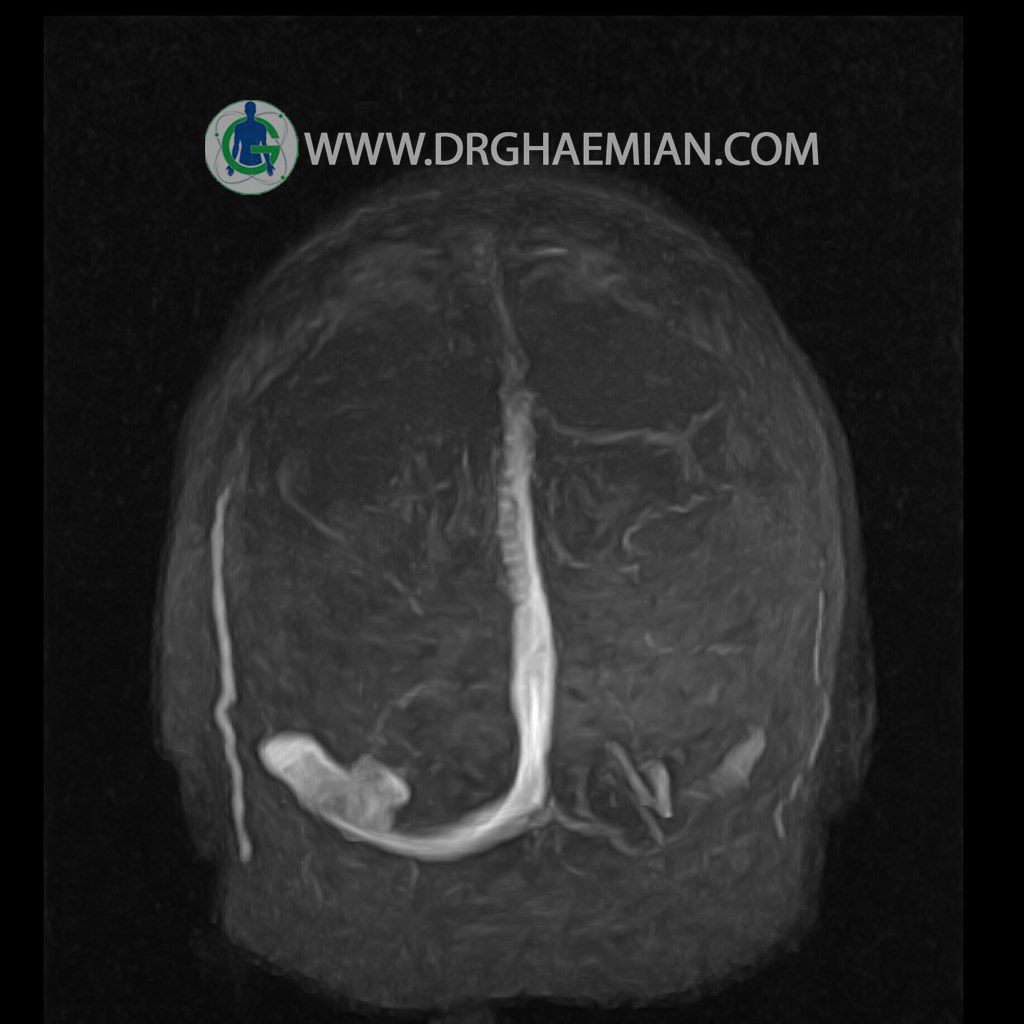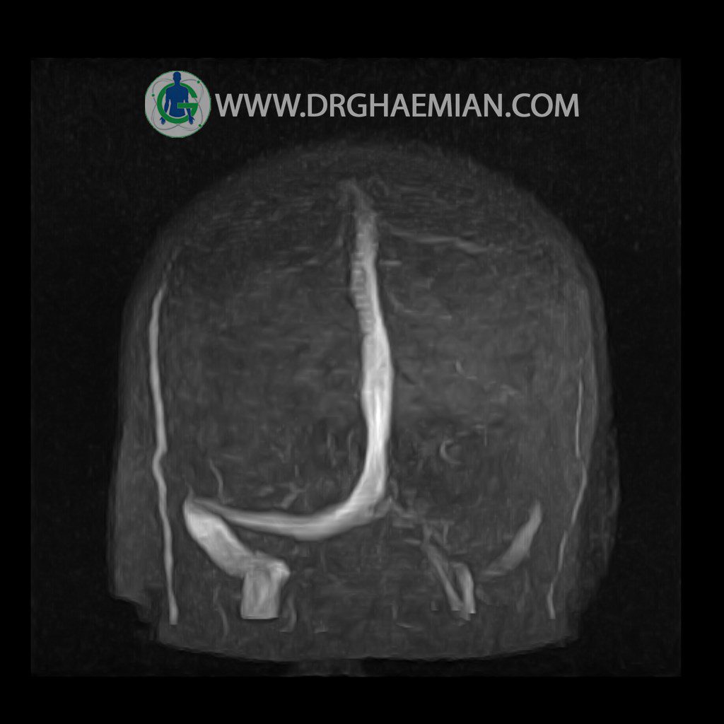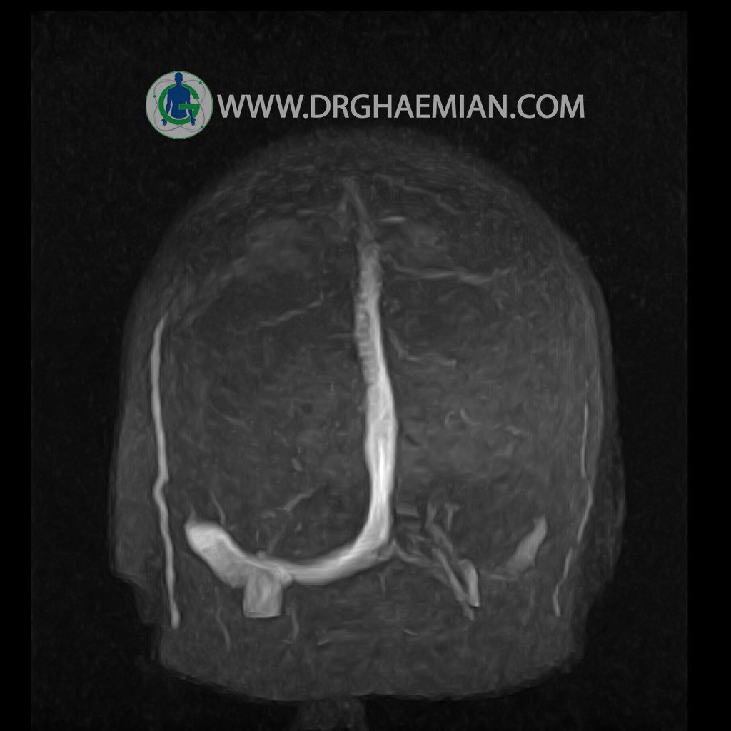 ام آر وی یک روش تصویربرداری دقیق و غیر تهاجمی است که برای معاینه ورید های بدن و ارزیابی سلامت رگ ها استفاده می شود. ورید ها خون را از اعضای بدن به قلب باز می گرداند تا دوباره اکسیژن و مواد مغذی به خون داده شود. ام آر وی جریان خون را ارزیابی و موارد غیرعادی مضر مانند لخته های خونی را شناسایی می کند. در این کیس ترومبوز انسدادی مغز بیمار مشاهده می شود.