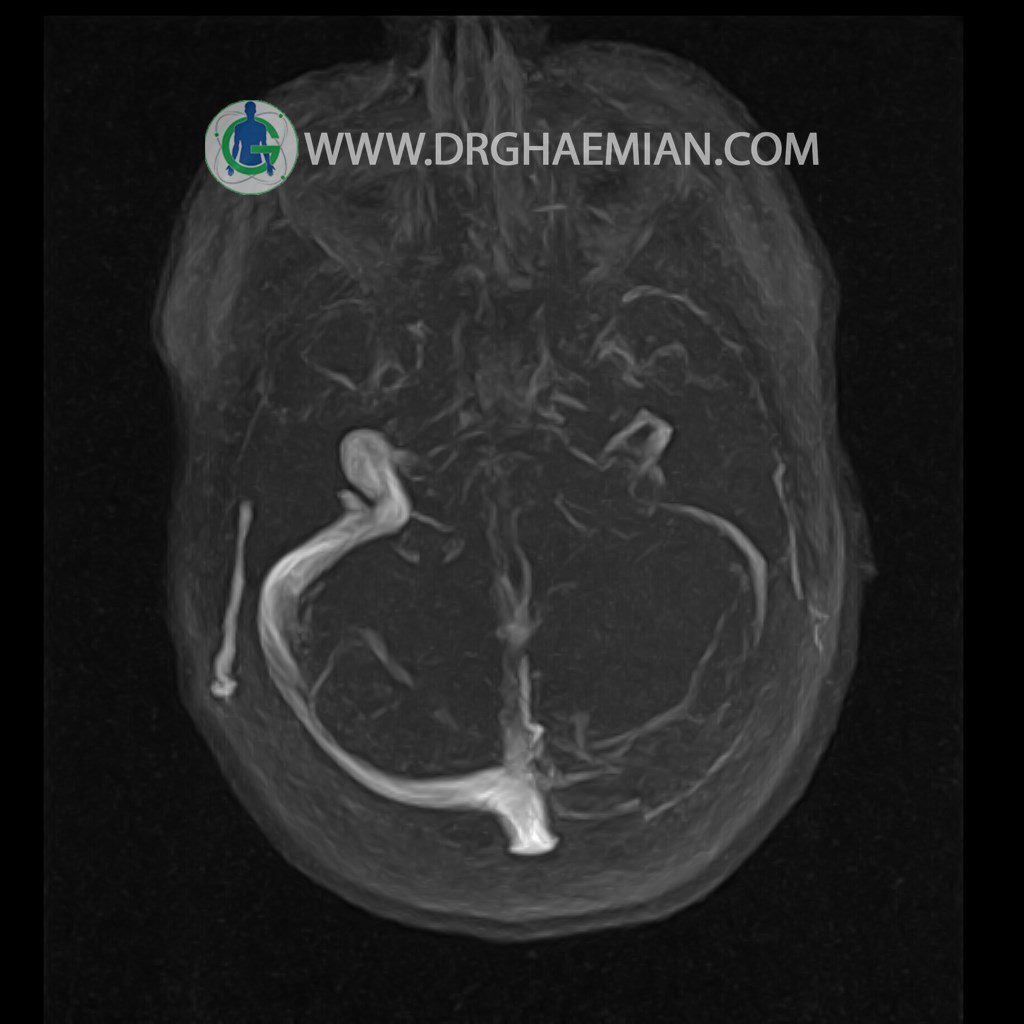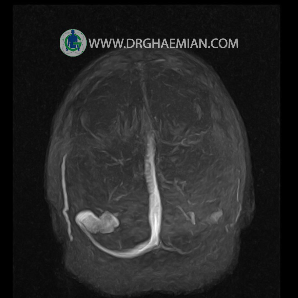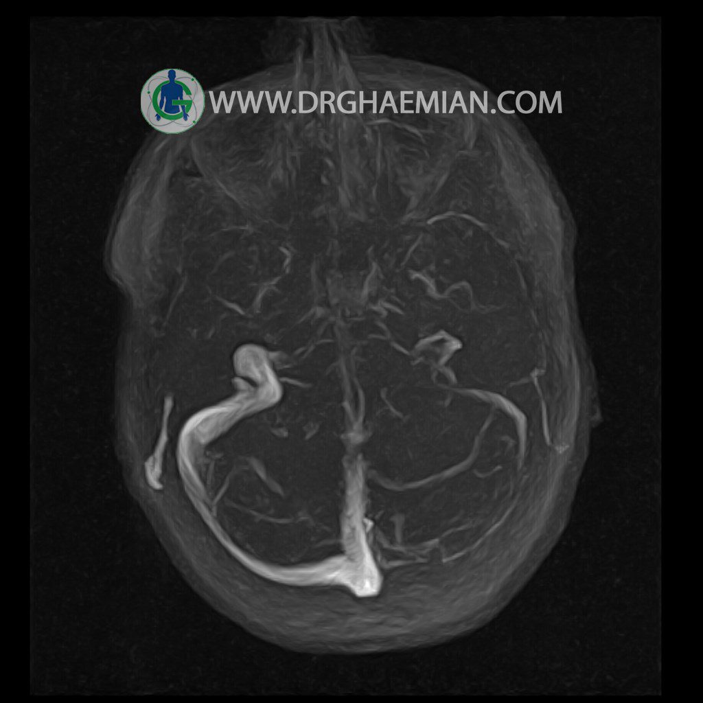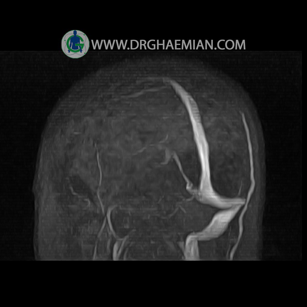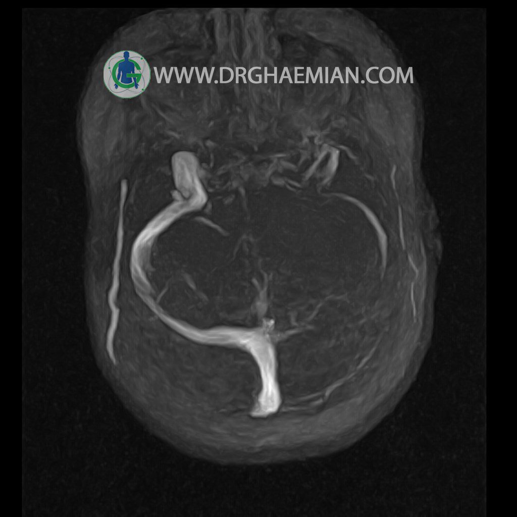 ام آر وی یک روش تصویربرداری دقیق و غیر تهاجمی است که برای معاینه ورید های بدن و ارزیابی سلامت رگ ها استفاده می شود. ورید ها خون را از اعضای بدن به قلب باز می گرداند تا دوباره اکسیژن و مواد مغذی به خون داده شود. ام آر وی جریان خون را ارزیابی و موارد غیرعادی مضر مانند لخته های خونی را شناسایی می کند. در این کیس ترومبوز انسدادی مغز بیمار مشاهده می شود.