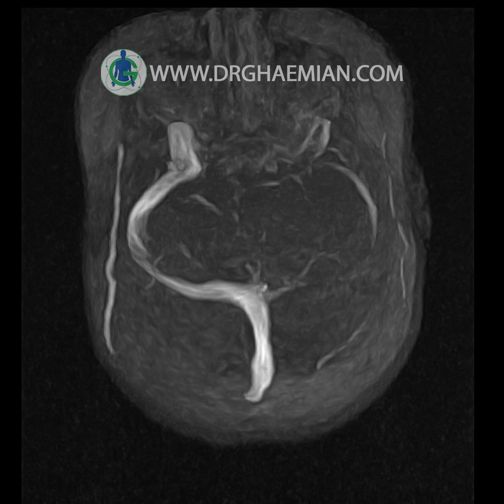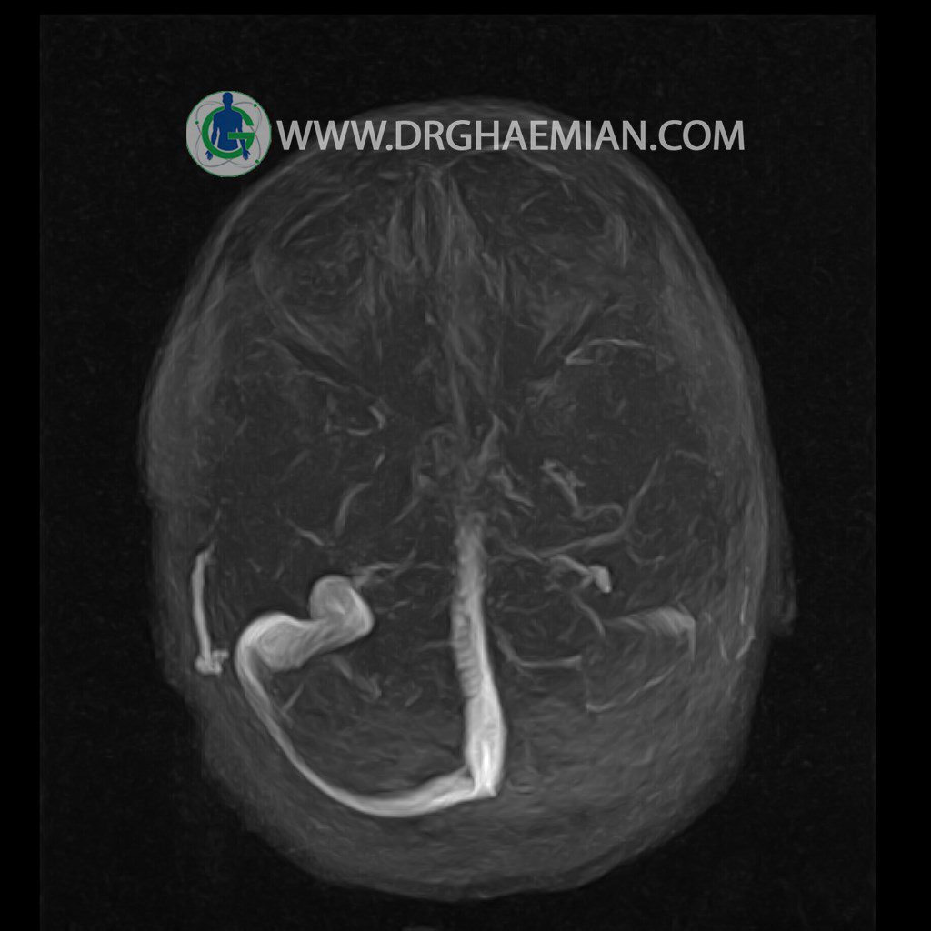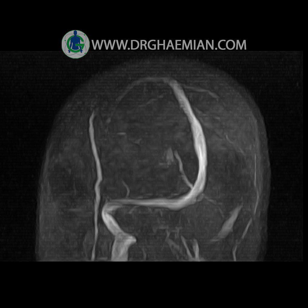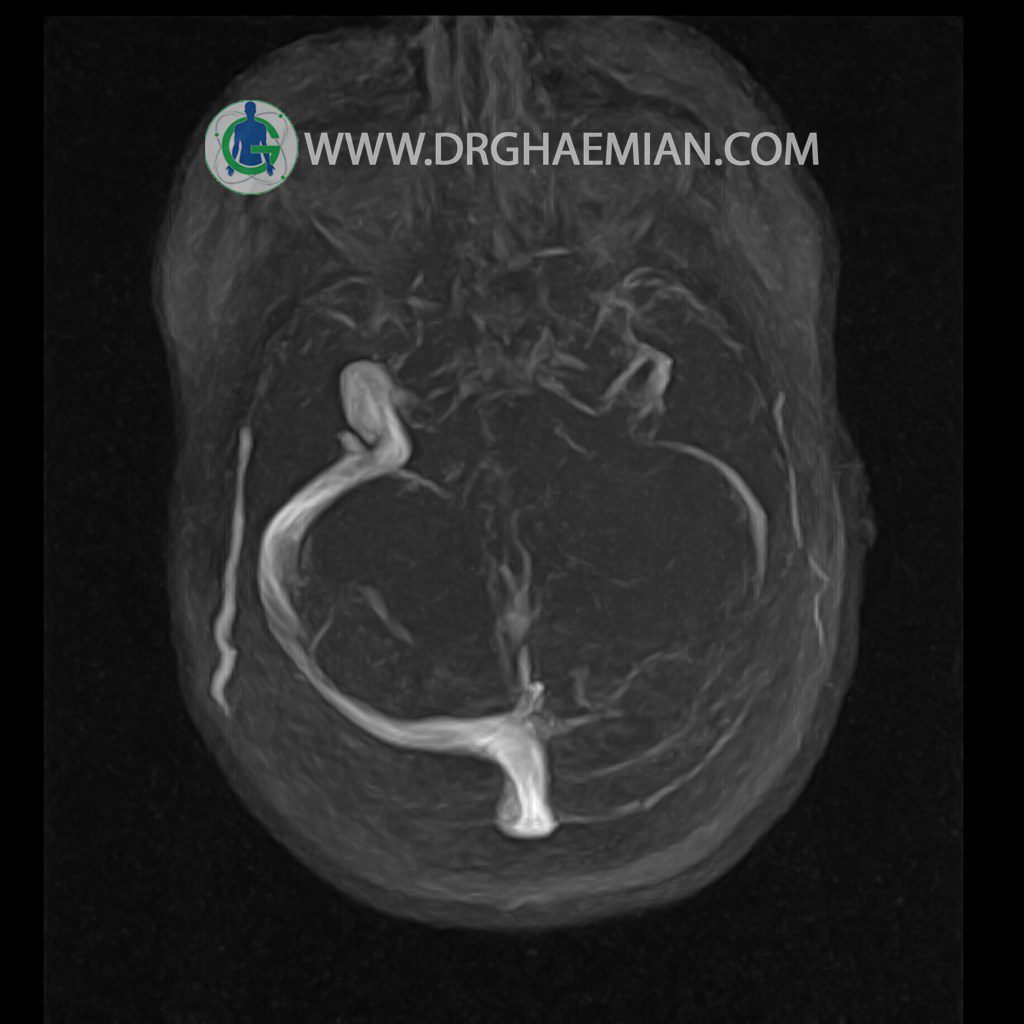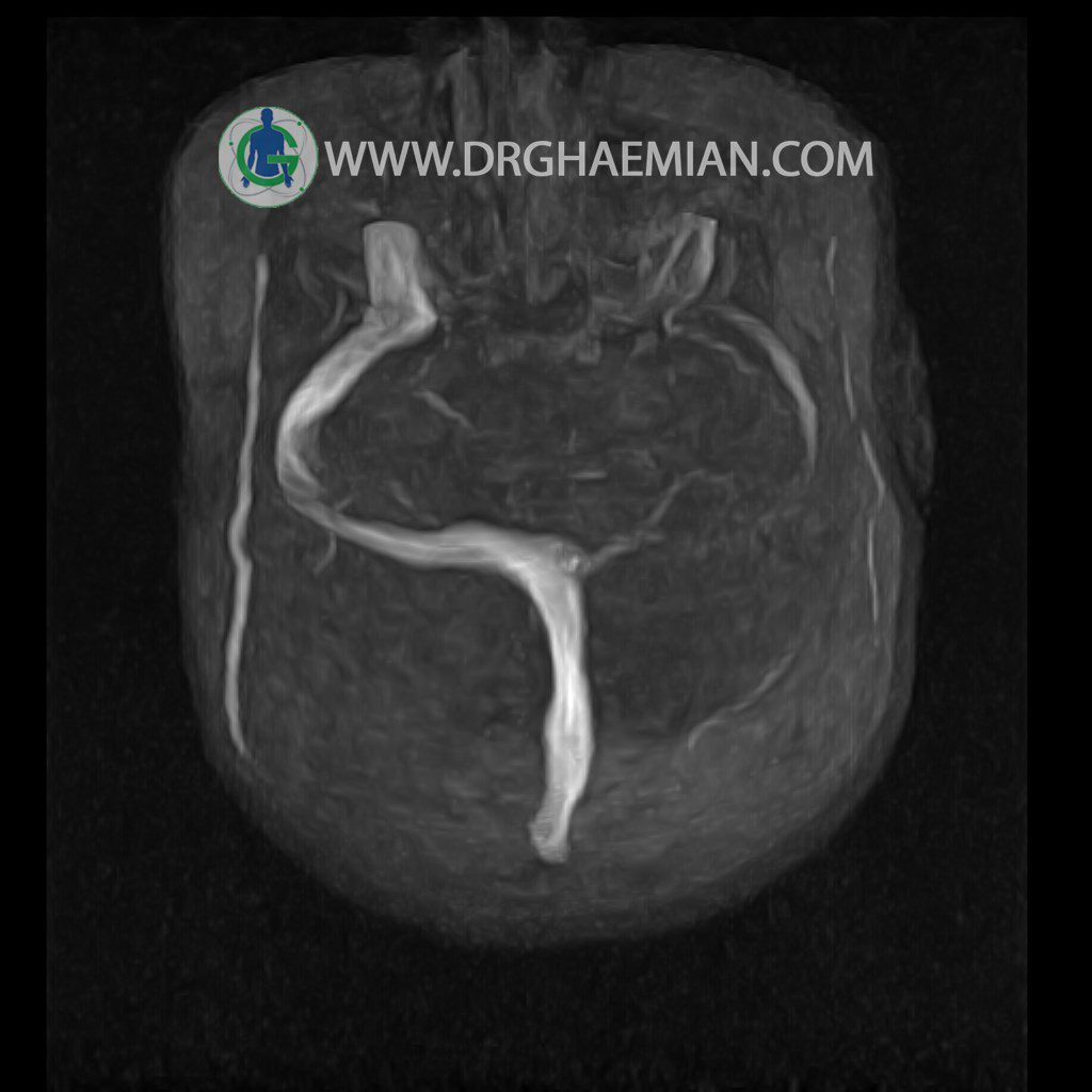 ام آر وی یک روش تصویربرداری دقیق و غیر تهاجمی است که برای معاینه ورید های بدن و ارزیابی سلامت رگ ها استفاده می شود. ورید ها خون را از اعضای بدن به قلب باز می گرداند تا دوباره اکسیژن و مواد مغذی به خون داده شود. ام آر وی جریان خون را ارزیابی و موارد غیرعادی مضر مانند لخته های خونی را شناسایی می کند. در این کیس ترومبوز انسدادی مغز بیمار مشاهده می شود.