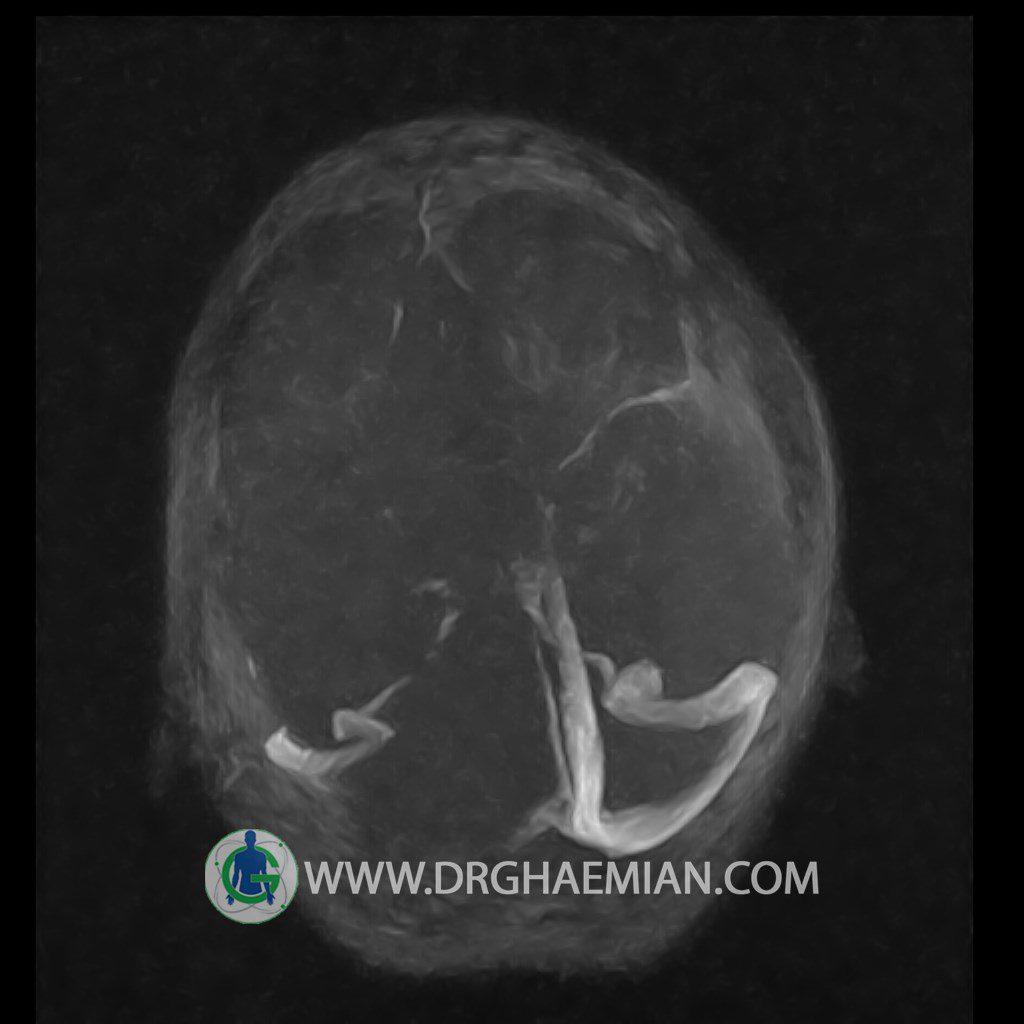 ام آر وی یک روش تصویربرداری دقیق و غیر تهاجمی است که برای معاینه ورید های بدن و ارزیابی سلامت رگ ها استفاده می شود. ورید ها خون را از اعضای بدن به قلب باز می گرداند تا دوباره اکسیژن و مواد مغذی به خون داده شود. ام آر وی جریان خون را ارزیابی و موارد غیرعادی مضر مانند لخته های خونی را شناسایی می کند. در این کیس ترومبوز وریدی و تنگی شدید مغز بیمار مشاهده می شود.