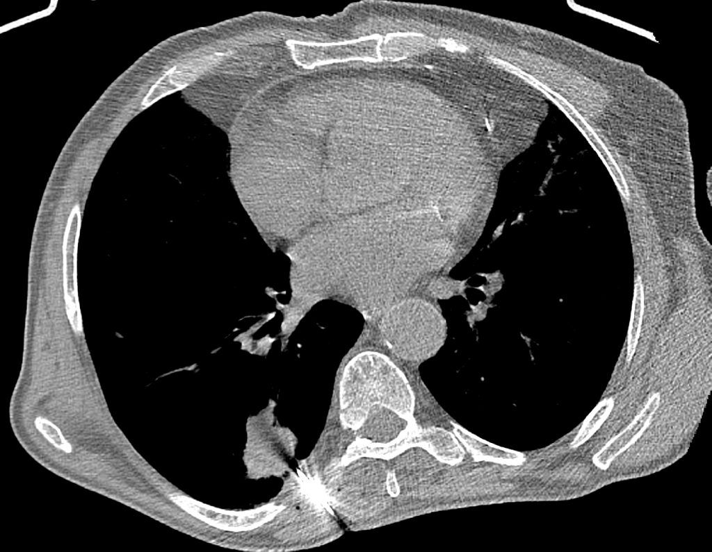 در برخی موارد، تخریب بافت ریه (پنوموتوراکس) پس از انجام بیوپسی رخ می دهد. رادیولوژی از قفسه سینه انجام می شود تا رخ دادن این عارضه بررسی شود.