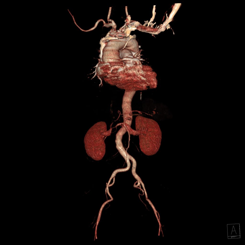 سی تی آنژیوگرافی آئورت توراسک و شکمی می تواند آئورت توراسیک و شکمی را ارزیابی کند و در صورت وجود آنوریسم در آئورت، وسعت آنوریسم و رابطه آنوریسم به شاخه های اصلی رگ ها و بافت های کناری را با دقت و سرعتی بالا تشخیص دهد. همچنین میتوان از آن برای تشخیص اندازه آنوریسم، ارزیابی بردگی عروق، گرفتی دیواره رگ، هماتوم داخل دیواره، پارگی رگ و پارگی رگ به همراه هماتوم استفاده کرد.