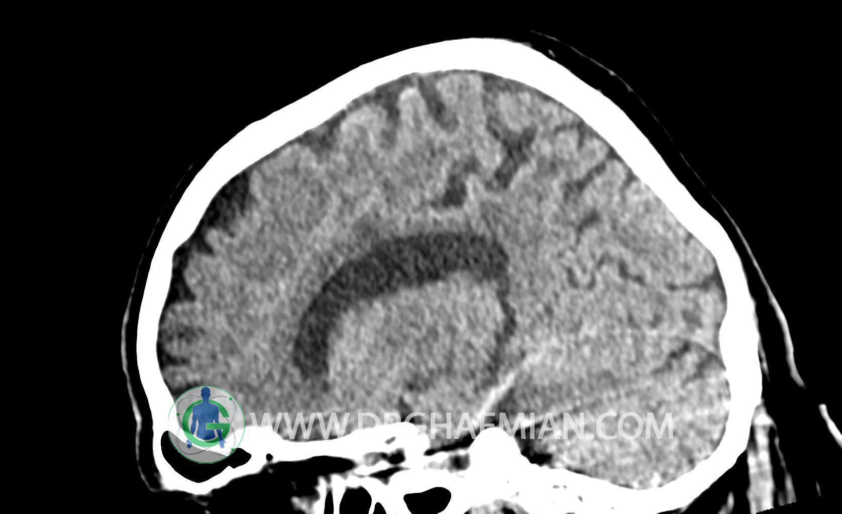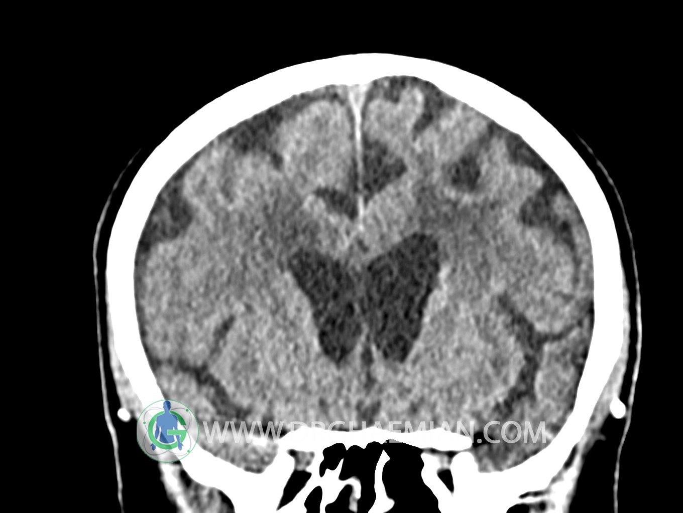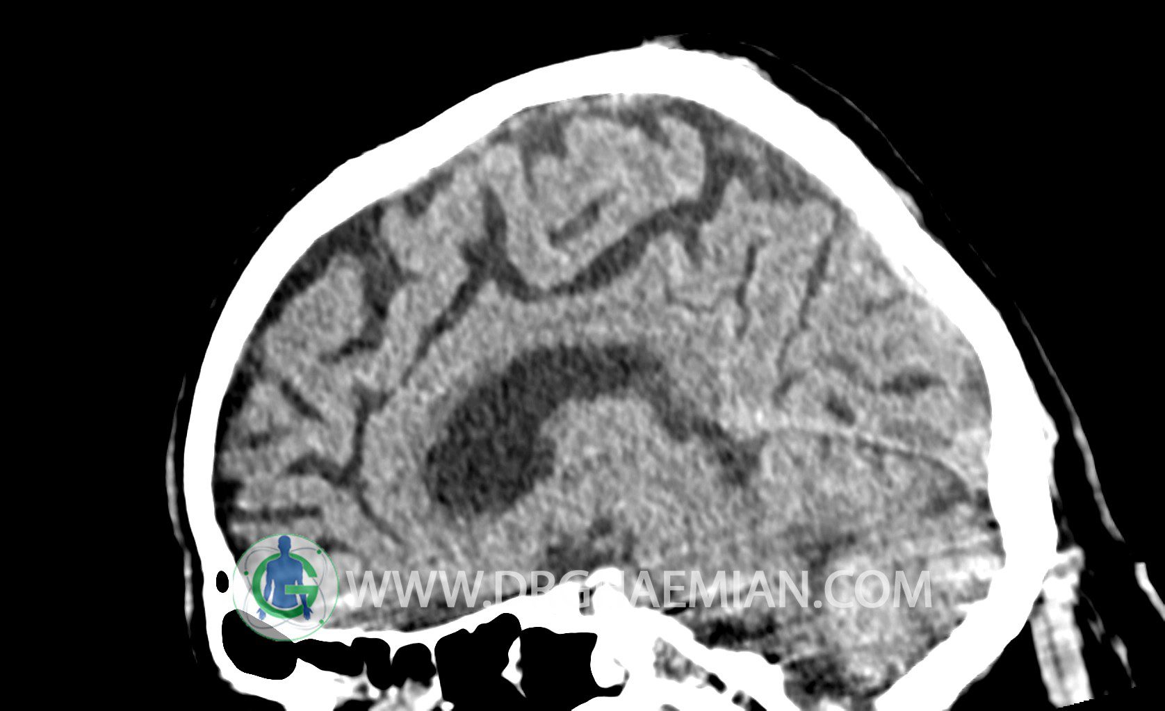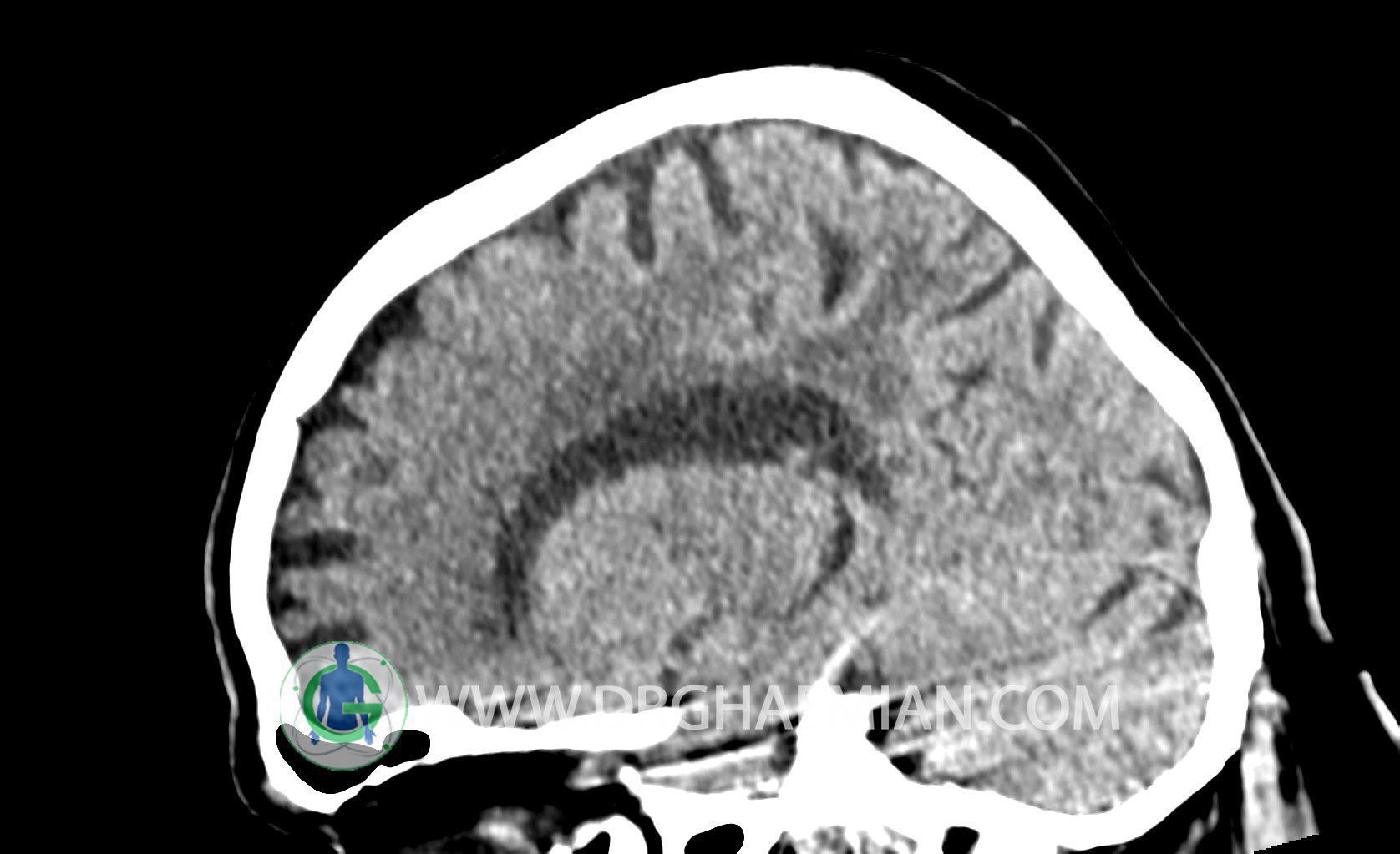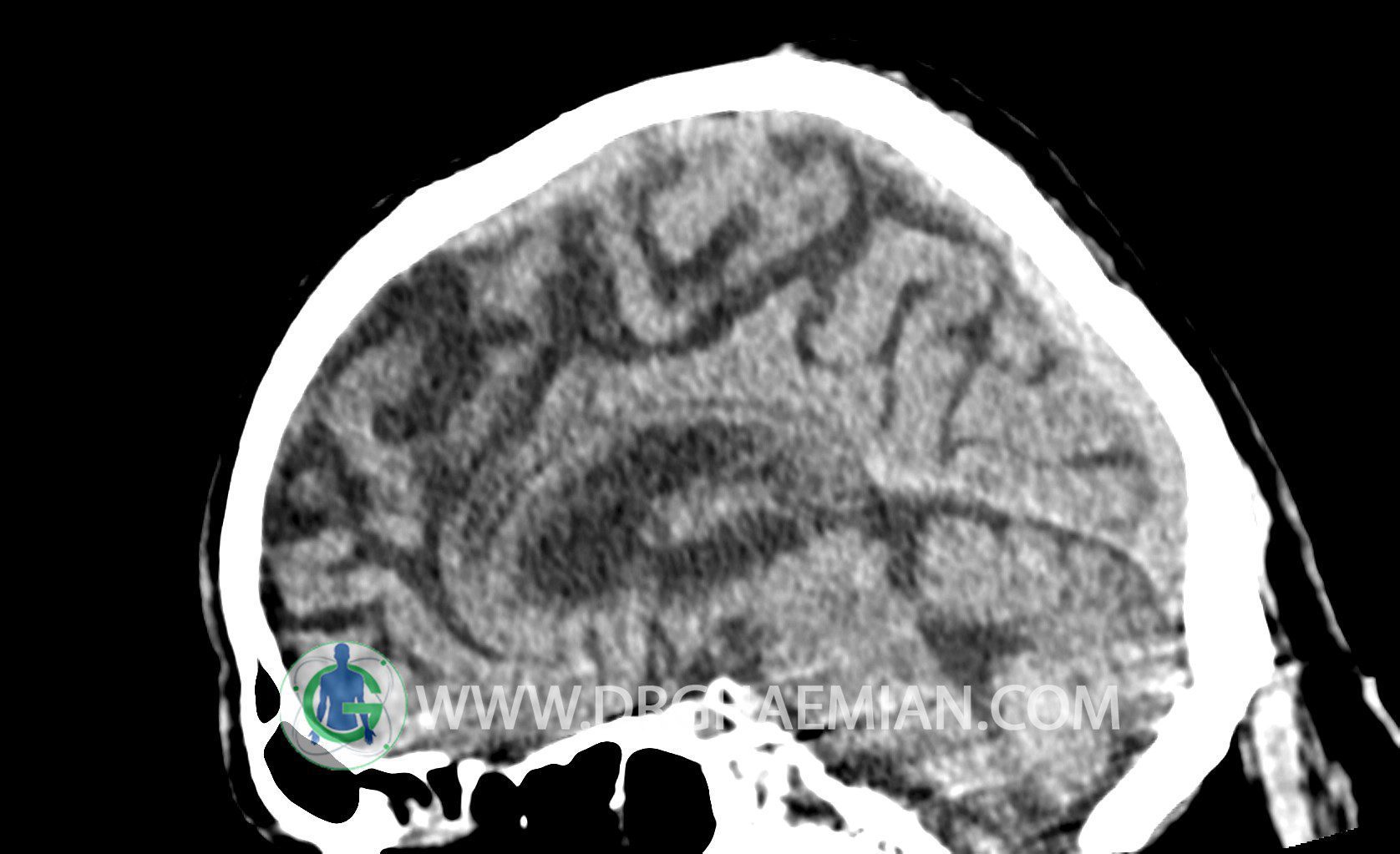 سی تی اسکن مغز با استفاده از اشعات ایکس تصاویری از سر که شامل جمجعه، مغز، حفره های چشمی و سینوس ها است ایجاد می کند. در این کیس آتروفی مغز، تغییرات ایسکمیک و انفارکت مشاهده شده.