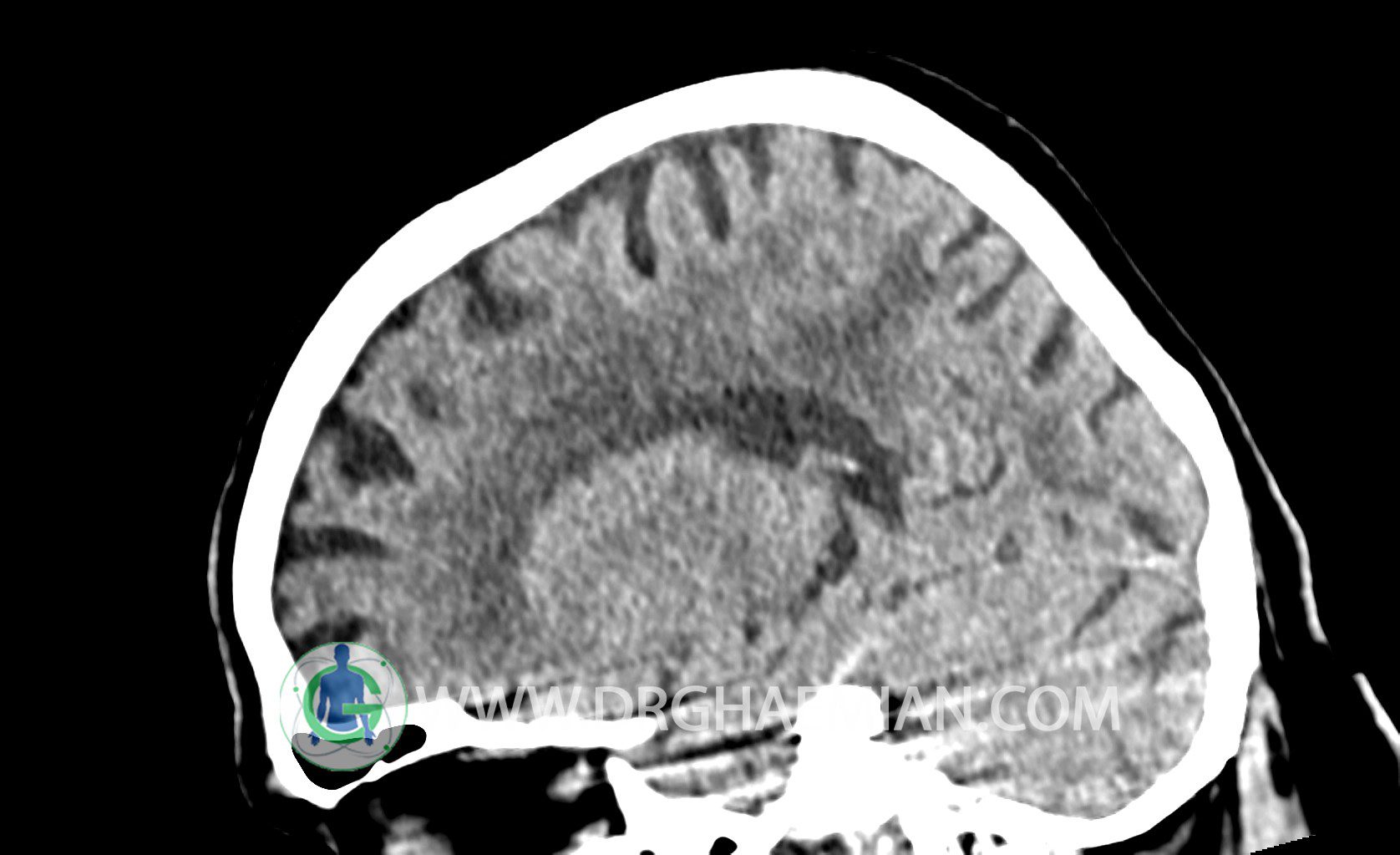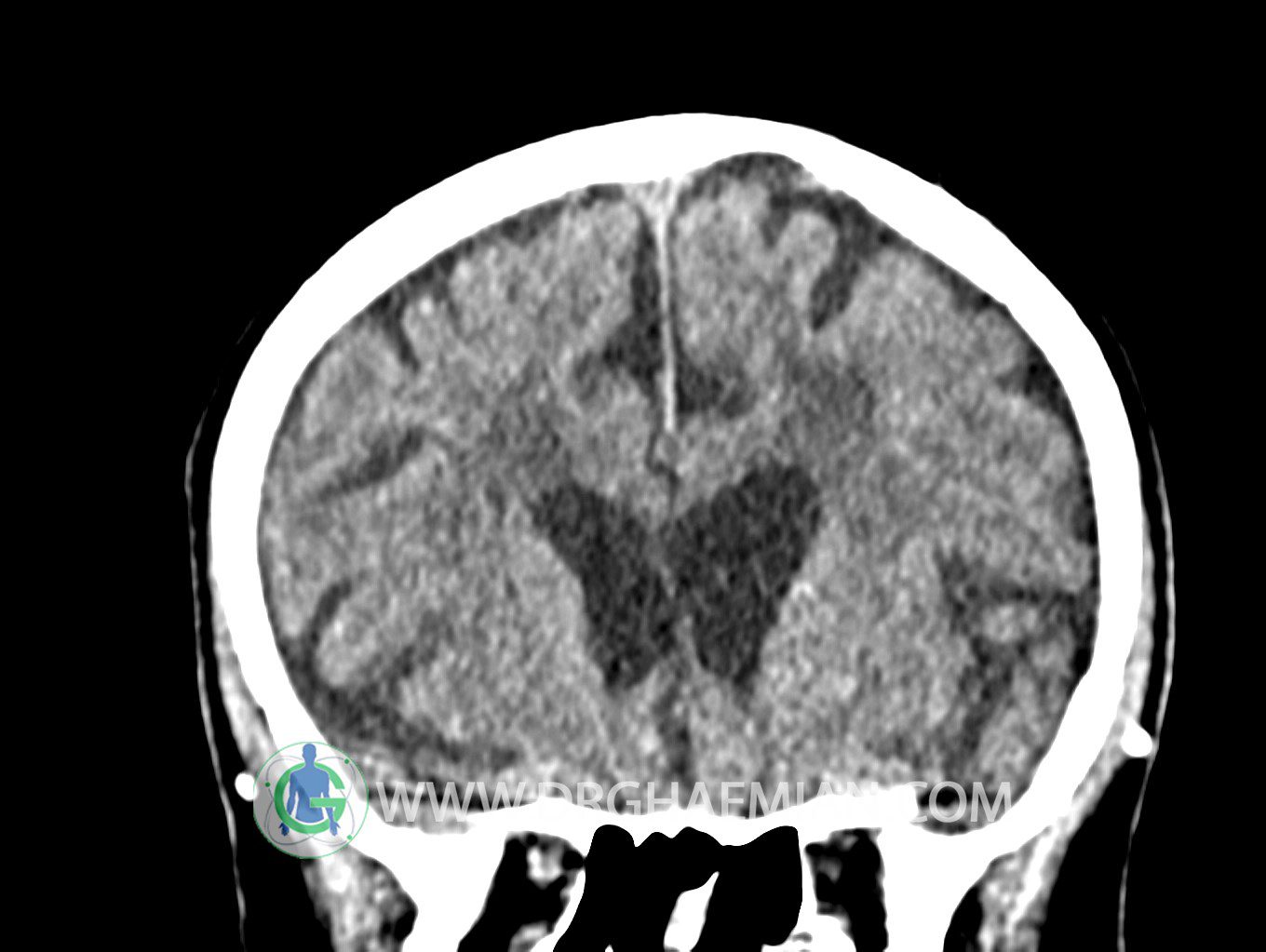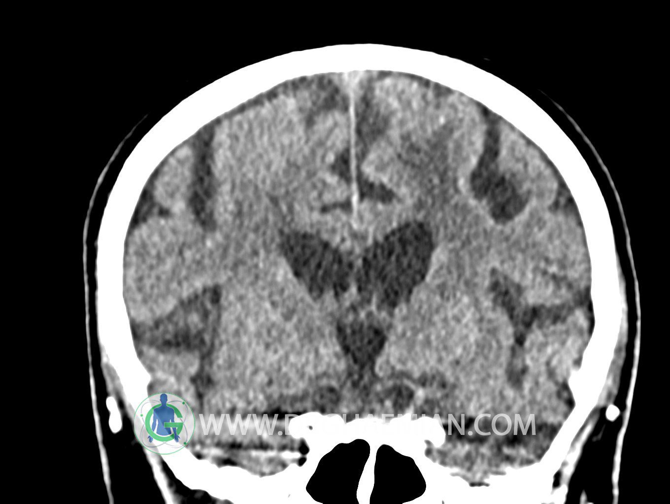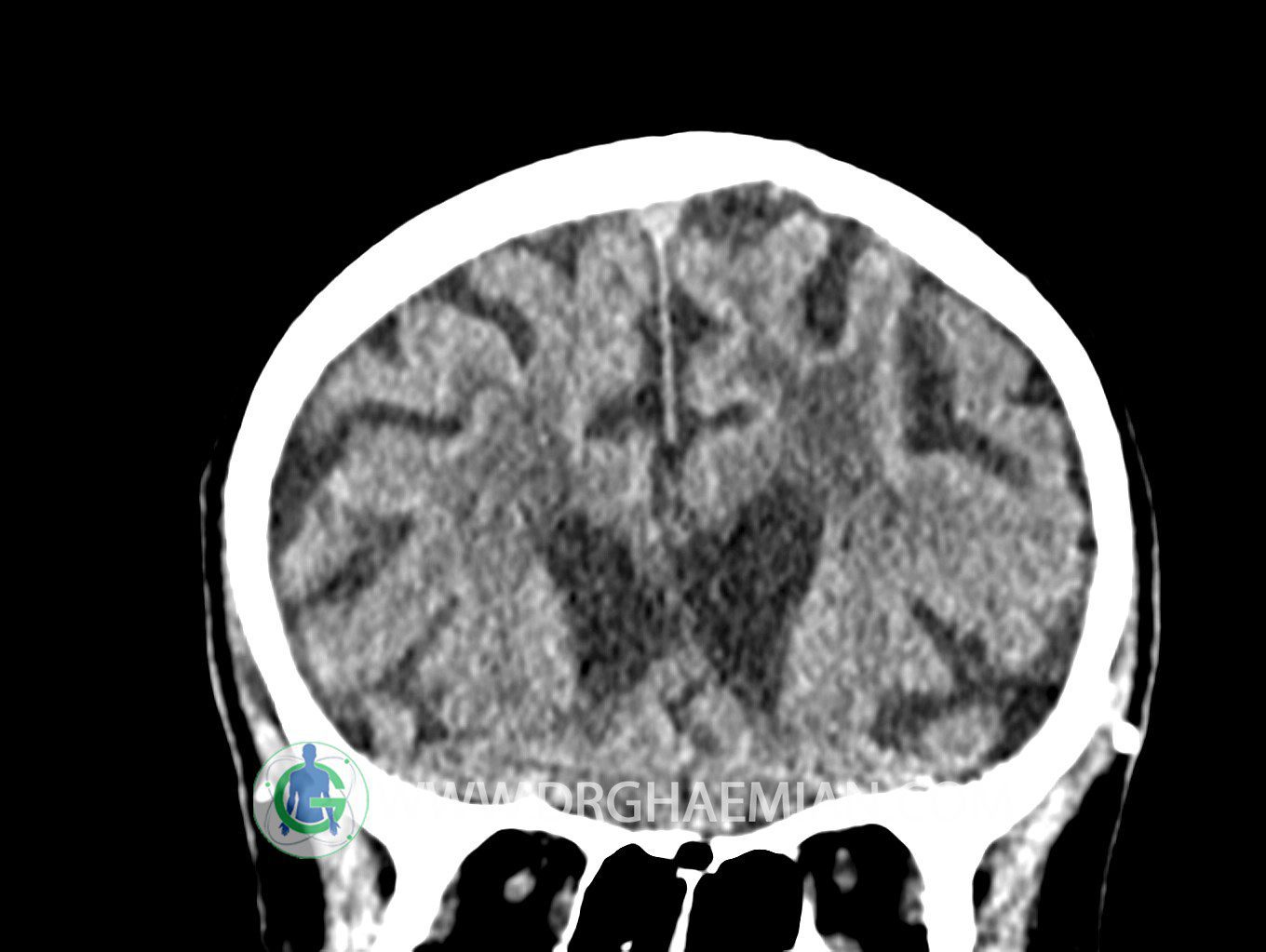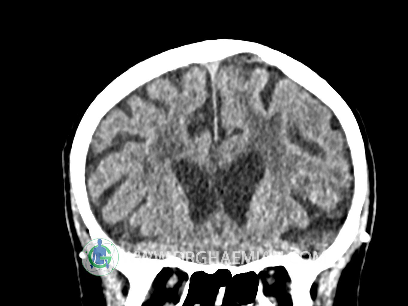 سی تی اسکن مغز با استفاده از اشعات ایکس تصاویری از سر که شامل جمجعه، مغز، حفره های چشمی و سینوس ها است ایجاد می کند. در این کیس آتروفی مغز، تغییرات ایسکمیک و انفارکت مشاهده شده.