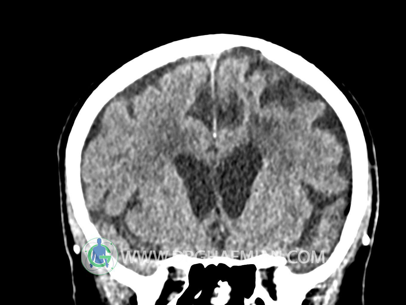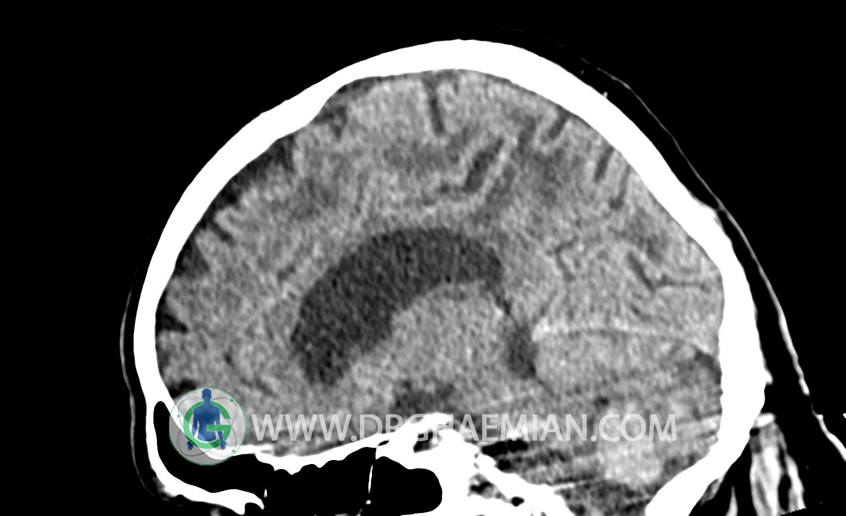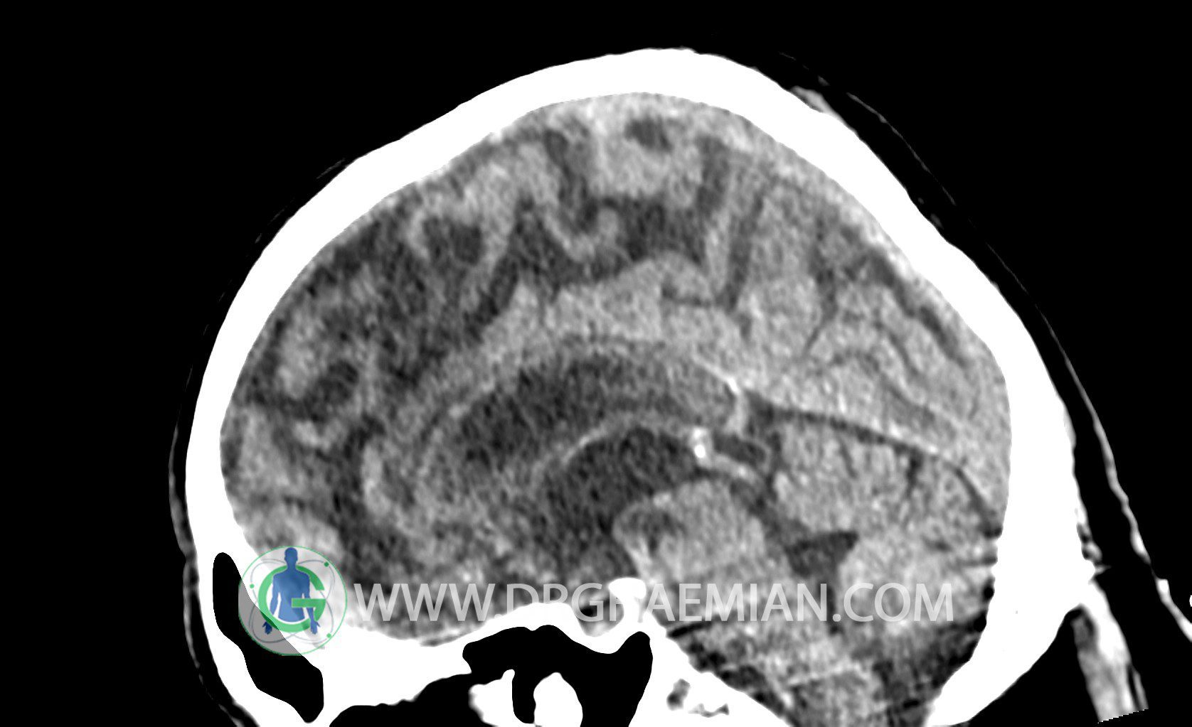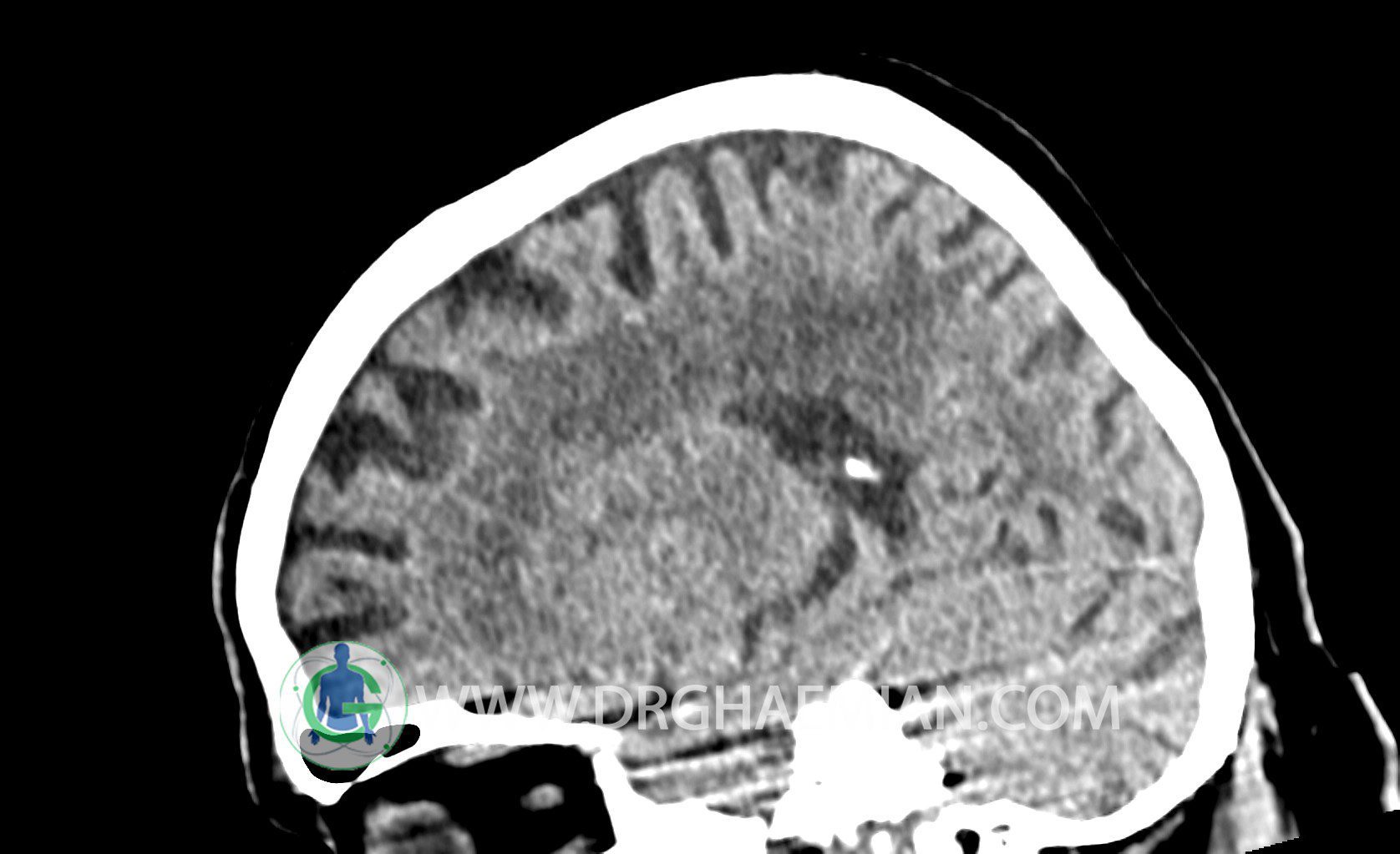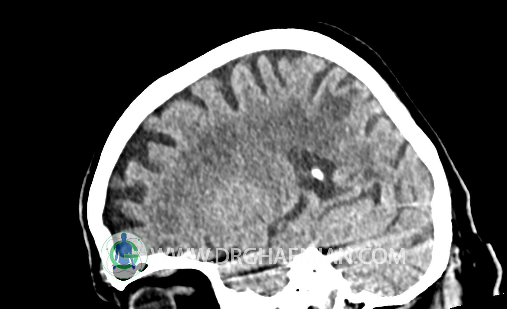 سی تی اسکن مغز با استفاده از اشعات ایکس تصاویری از سر که شامل جمجعه، مغز، حفره های چشمی و سینوس ها است ایجاد می کند. در این کیس آتروفی مغز، تغییرات ایسکمیک و انفارکت مشاهده شده.