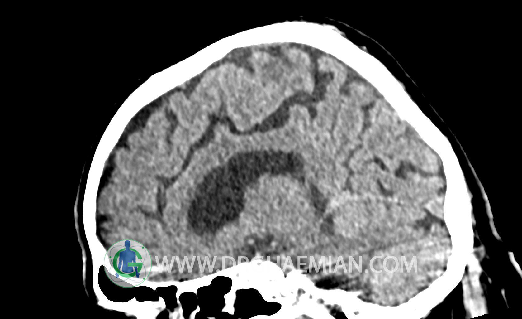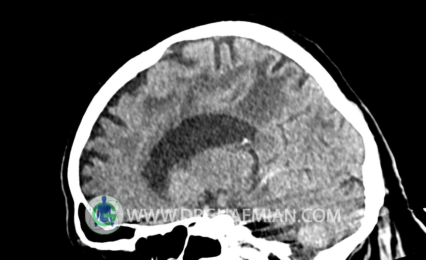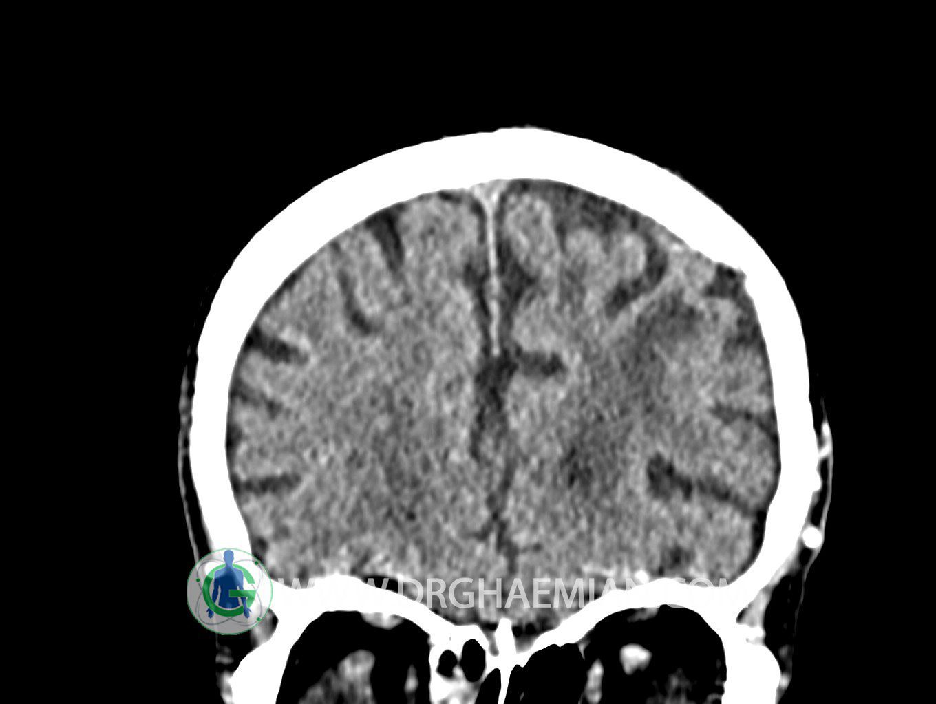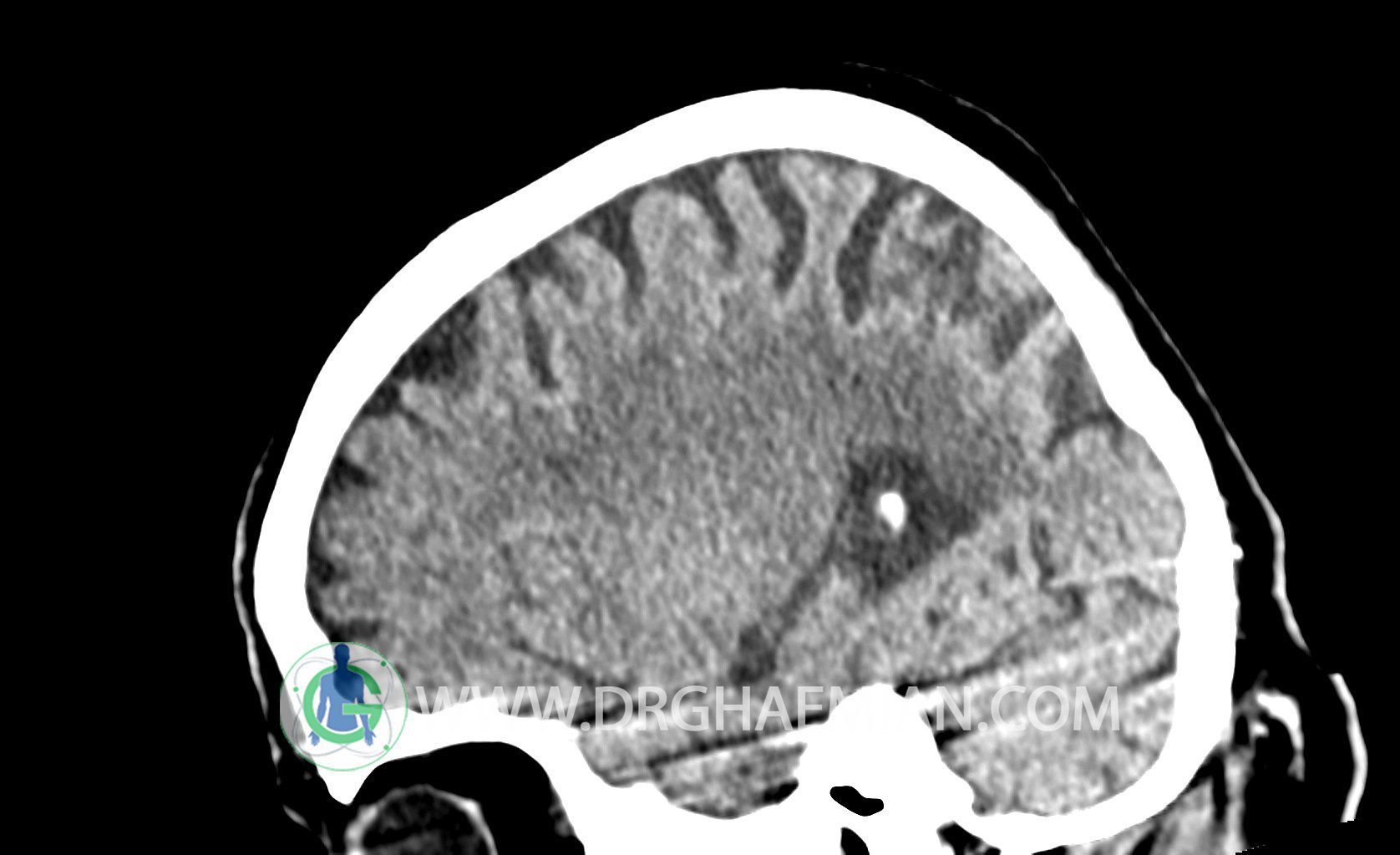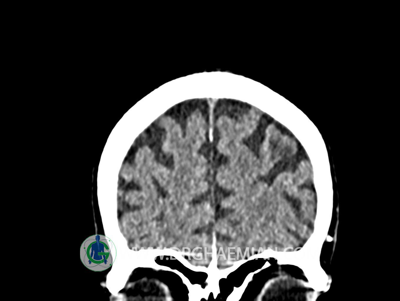 سی تی اسکن مغز با استفاده از اشعات ایکس تصاویری از سر که شامل جمجعه، مغز، حفره های چشمی و سینوس ها است ایجاد می کند. در این کیس آتروفی مغز، تغییرات ایسکمیک و انفارکت مشاهده شده.