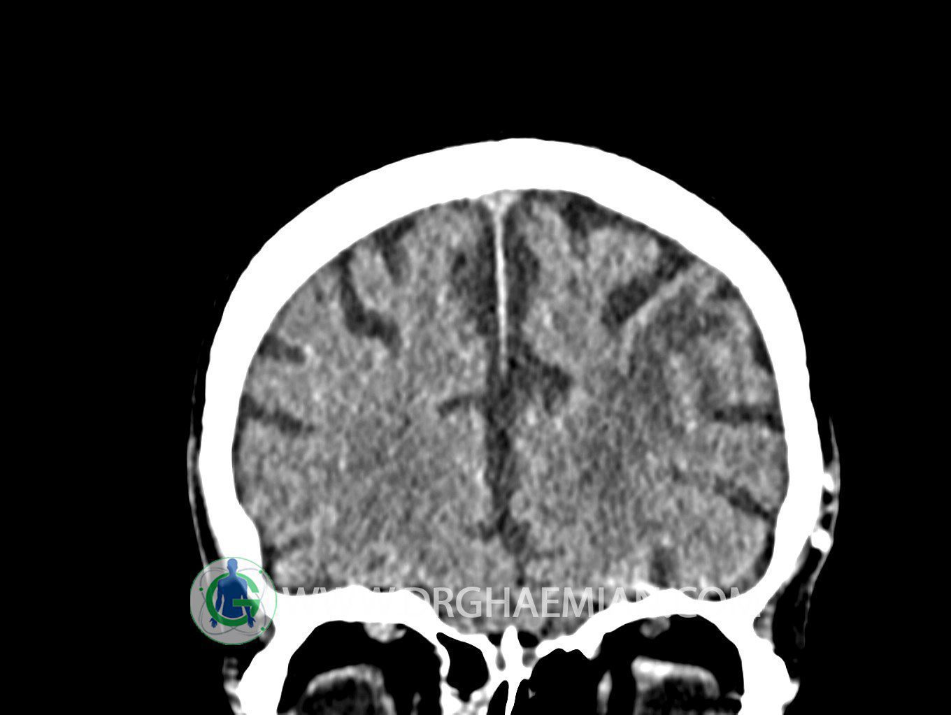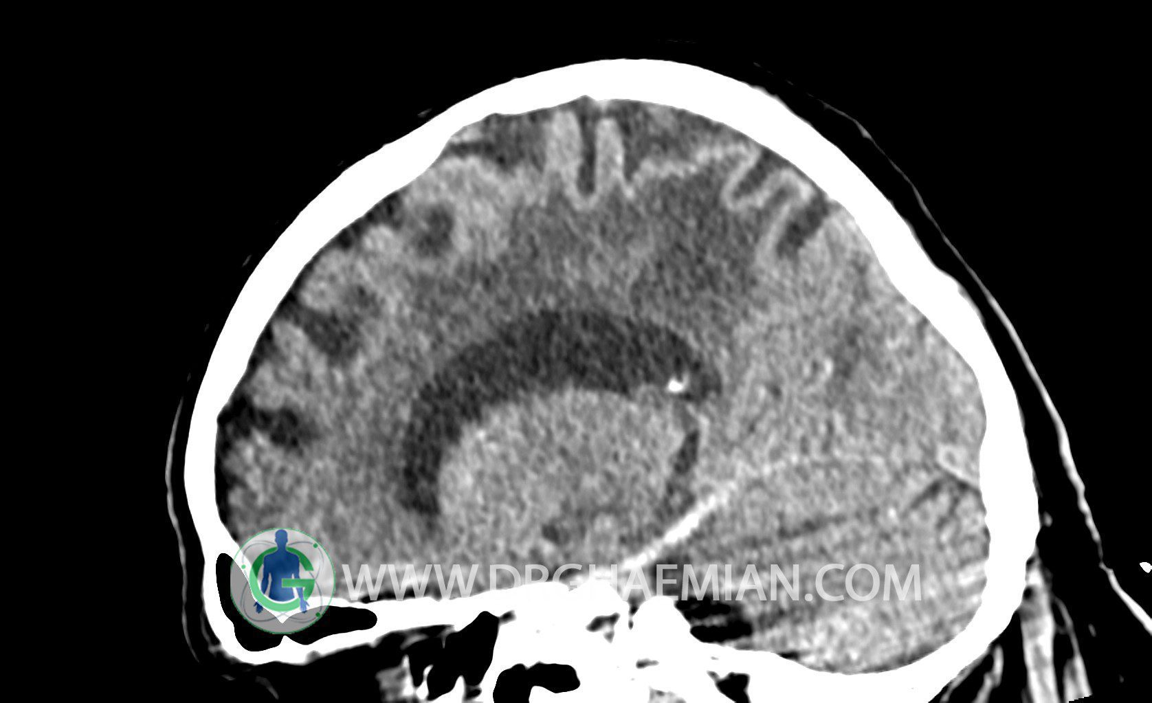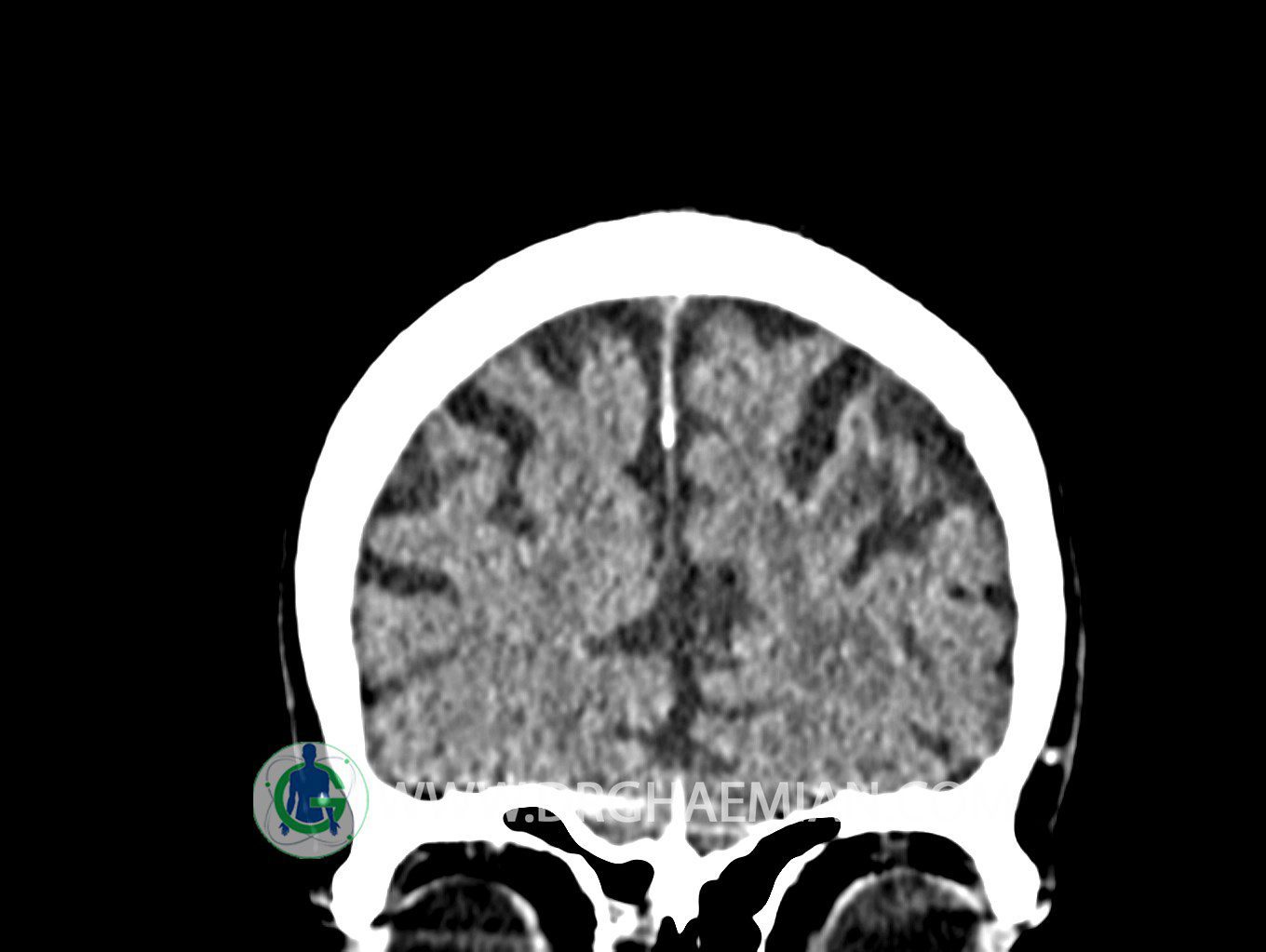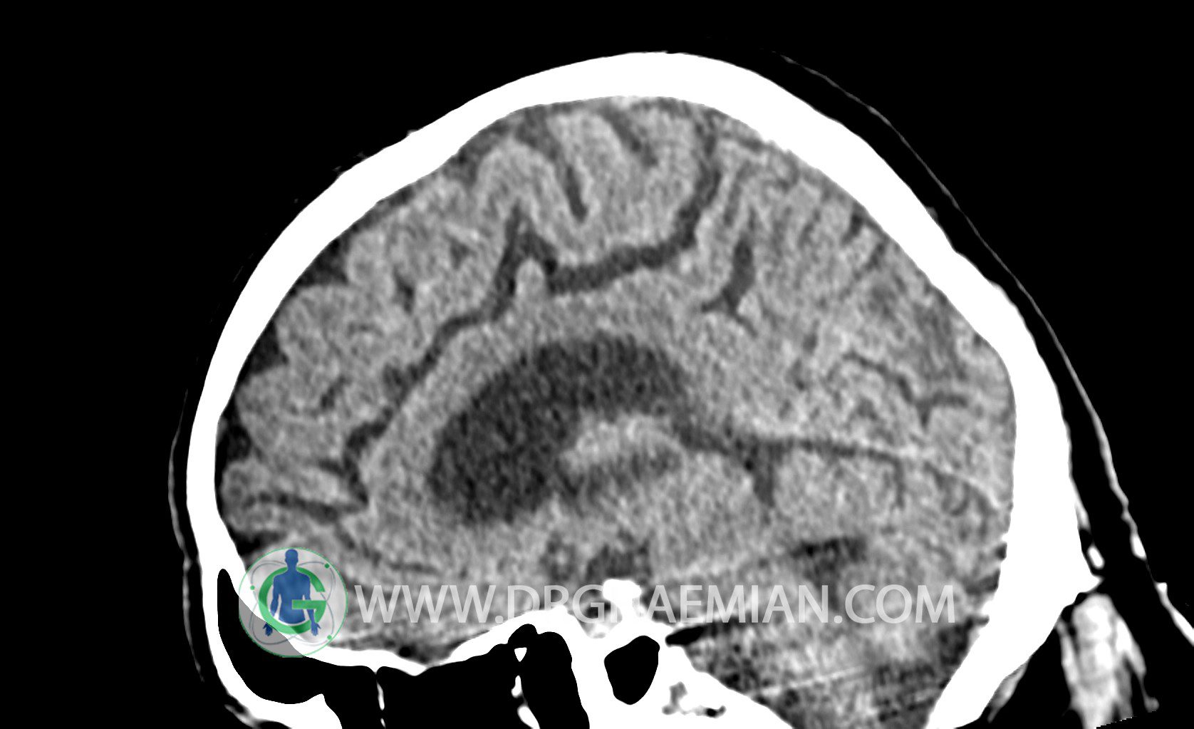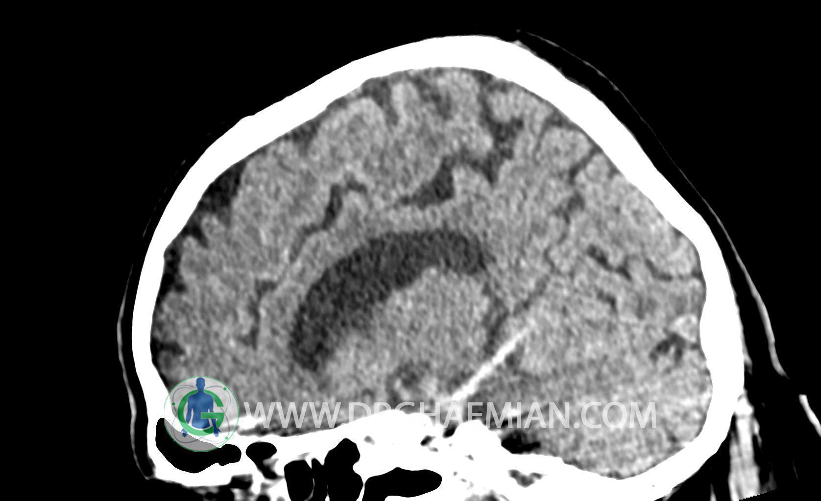 سی تی اسکن مغز با استفاده از اشعات ایکس تصاویری از سر که شامل جمجعه، مغز، حفره های چشمی و سینوس ها است ایجاد می کند. در این کیس آتروفی مغز، تغییرات ایسکمیک و انفارکت مشاهده شده.