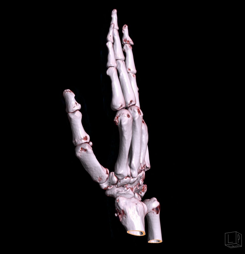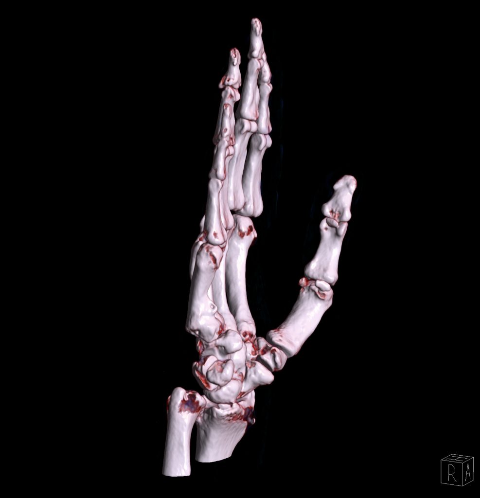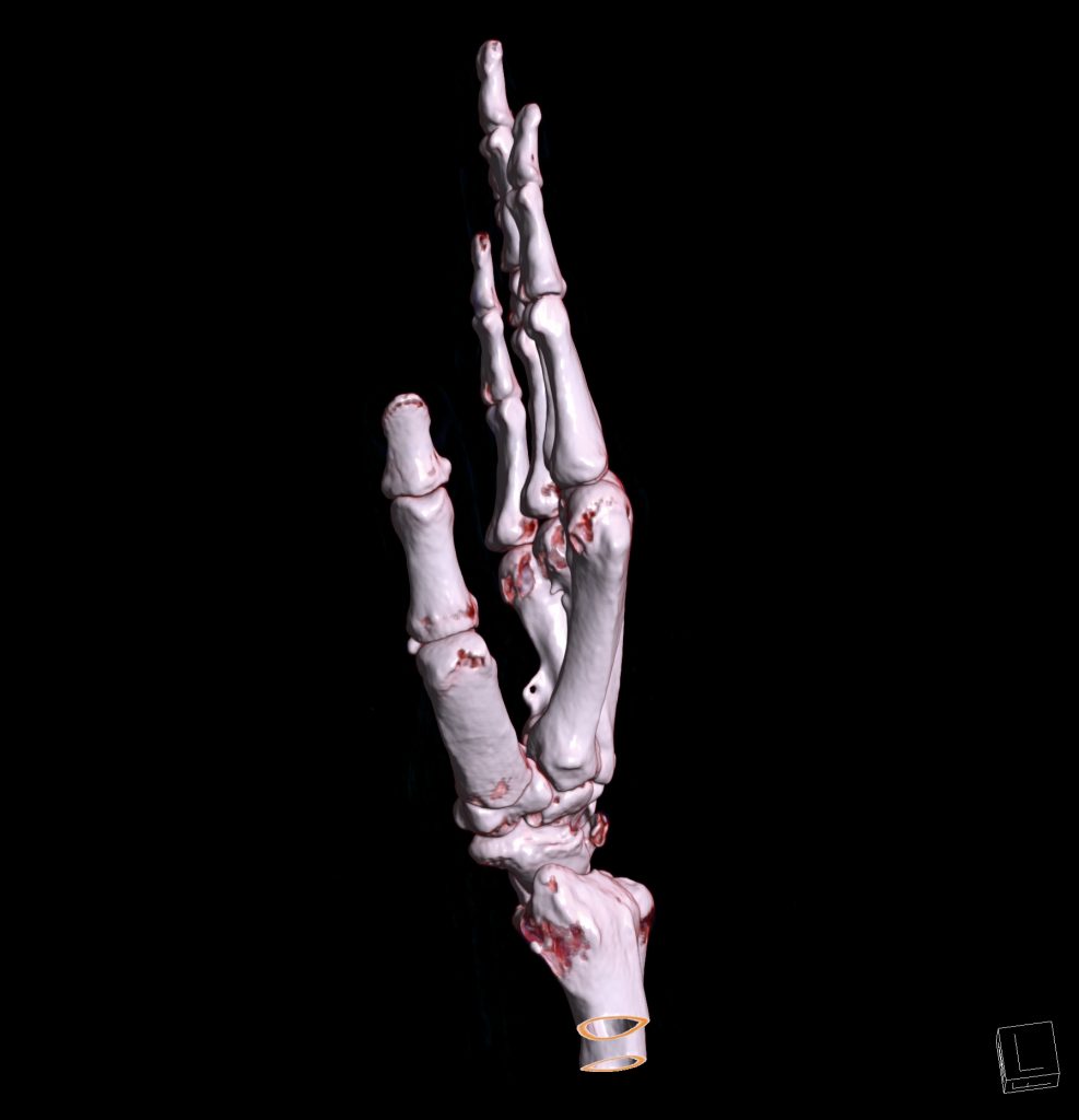 سي تي اسکن مچ و کف دست راست ( مولتي ديدکتور 16 با مقاطع ظريف و بازسازي هاي ساژيتال و کرونال و 3D):