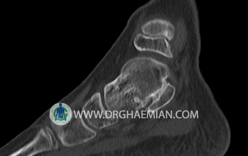 – نشانه هاي talocalcaneal coalition بين sustentaculum tali و مديال استخوان تالوس با پل استخواني مشهود است .