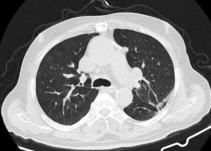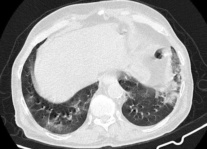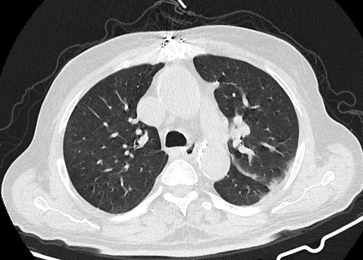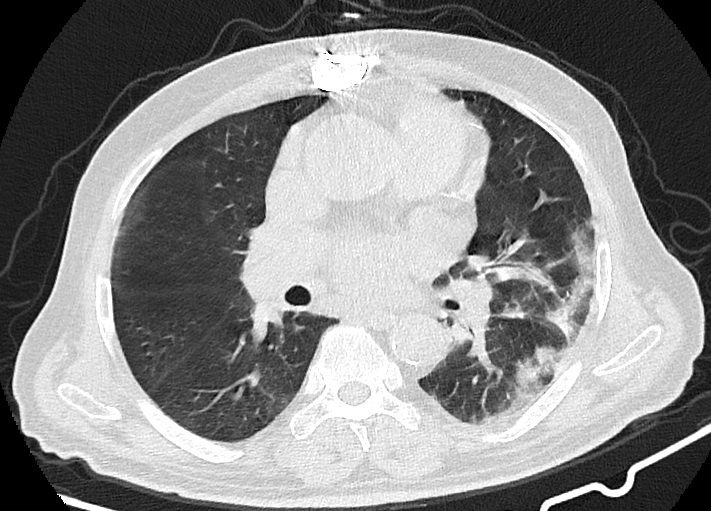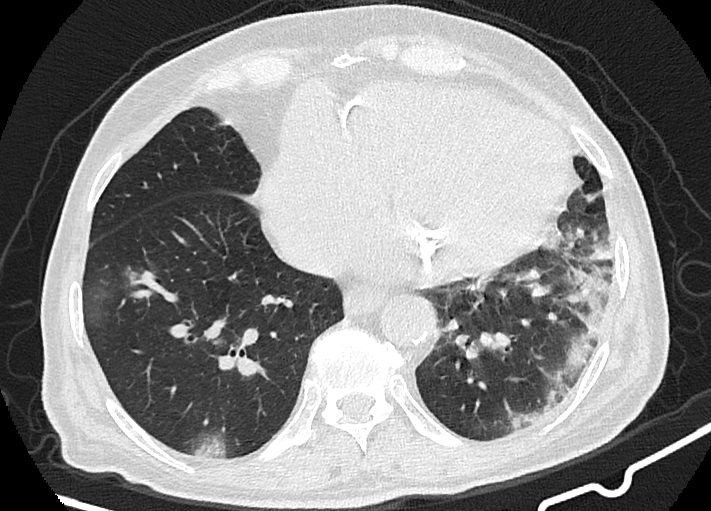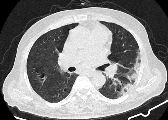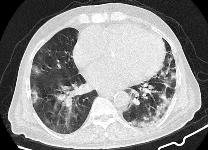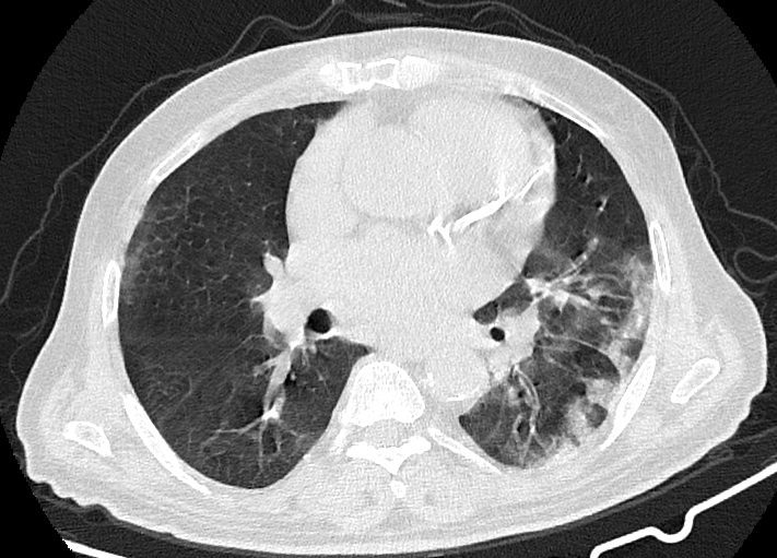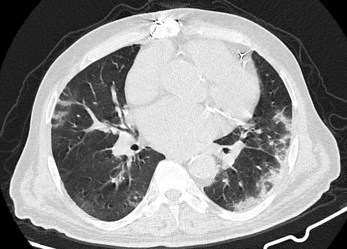 در سی تی اسکن از ریه بیمار کووید، دستگاه با سرعت بالا تصاویر با جزییات از بدن ایجاد می کند. این تصویربرداری ممکن است برای گرفتن تصاویری بهتر از ساختار های داخل قفسه سینه استفاده شود. سی تی اسکن یکی از بهترین روش های برای مشاهده نسج نرم مانند قلب و ریه ها است.