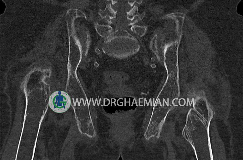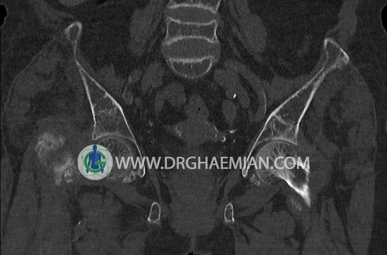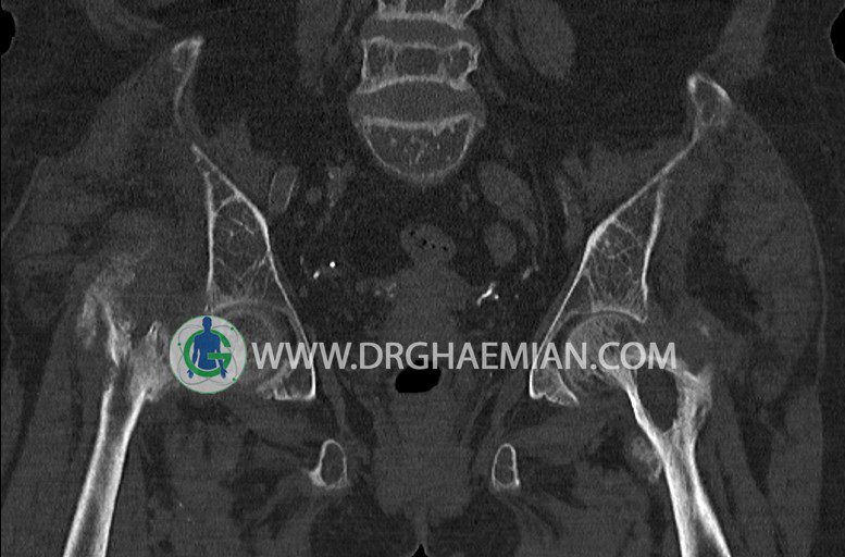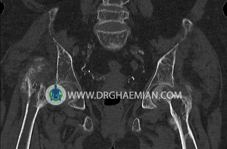 سي تي اسکن مفاصل هيپ ( مولتي ديدکتور 16 با مقاطع ظريف و بازسازي هاي ساژيتال و کرونال و 3D):