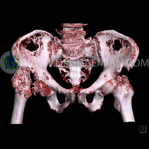– اوستئوپني شديد ومنتشر همراه با کلسيفيکاسيون ديواره شريان هاي ايلياک و فمورال