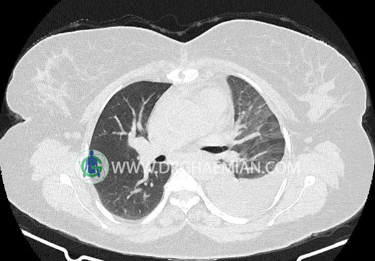 در سی تی اسکن اسپيرال ريه ها و مدياستن بدون کنتراست وريدی (مولتي ديدکتور 16 با مقاطع ظريف و بازسازي کرونال):
