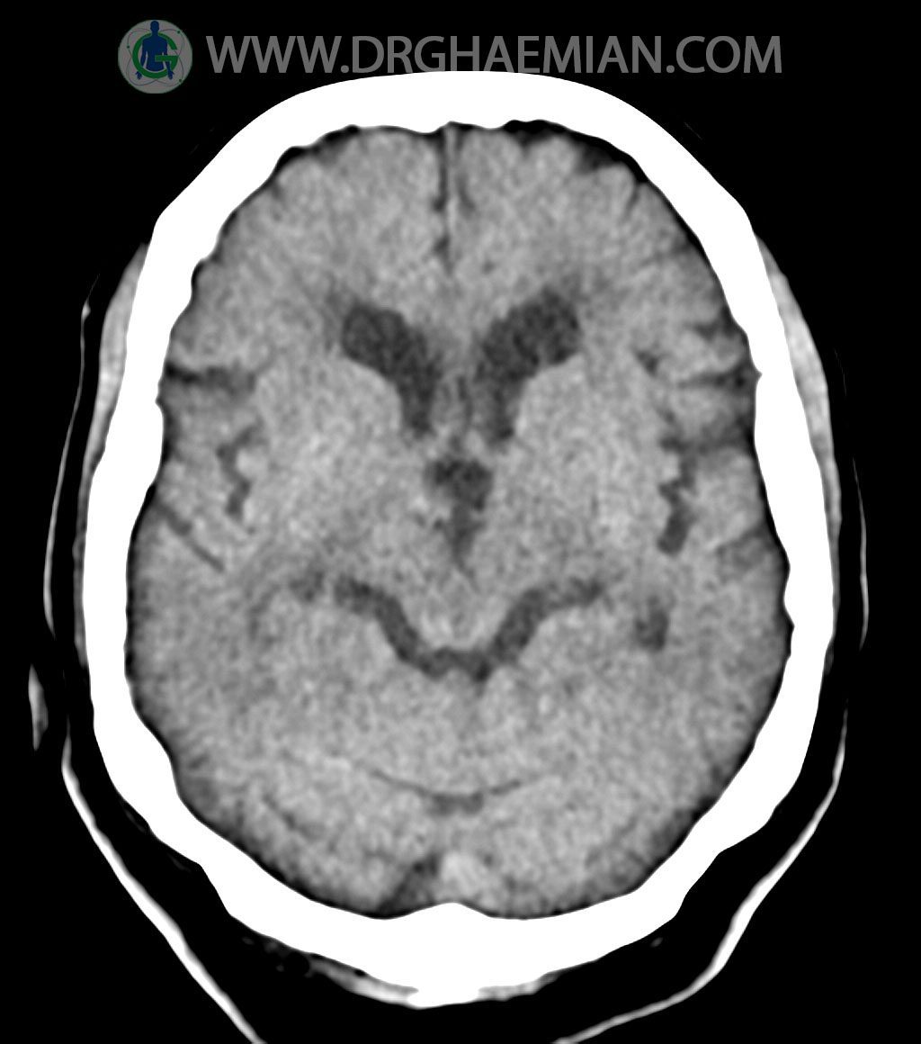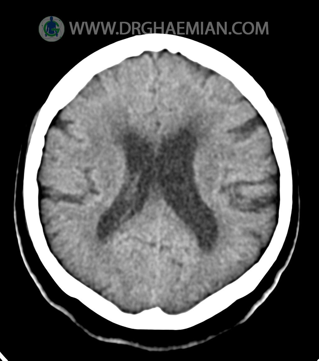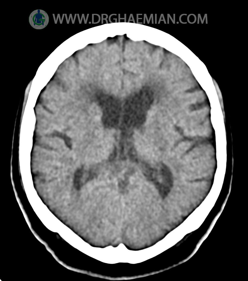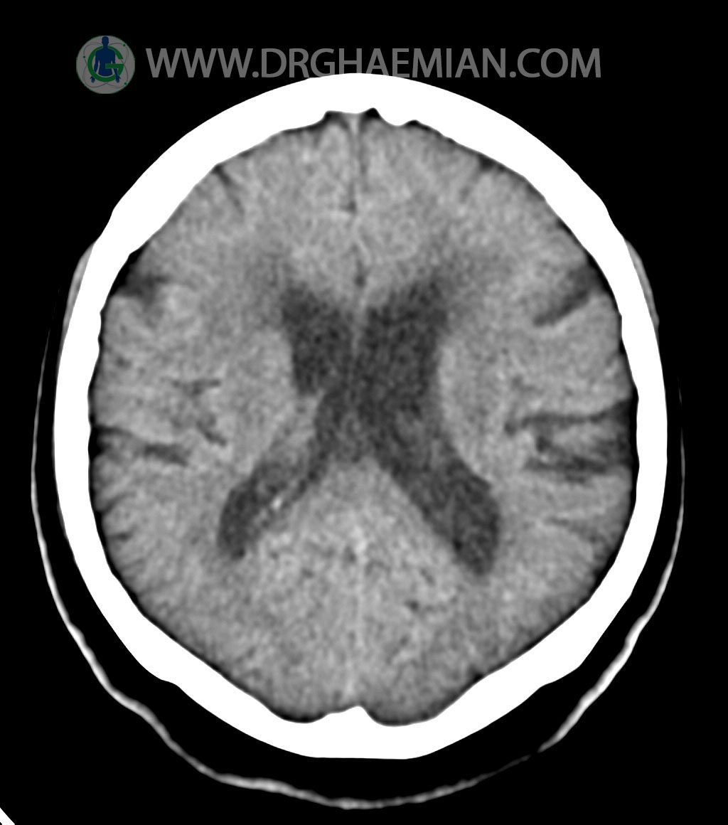 سی تی اسکن مغز با استفاده از اشعات ایکس تصاویری از سر که شامل جمجعه، مغز، حفره های چشمی و سینوس ها است ایجاد می کند. در این کیس ایسکمیک میکروواسکولار، سلای نسبتا خالی و سابقه ماستوئیدیت در سی تی اسکن بیمار مشاهده می شود.