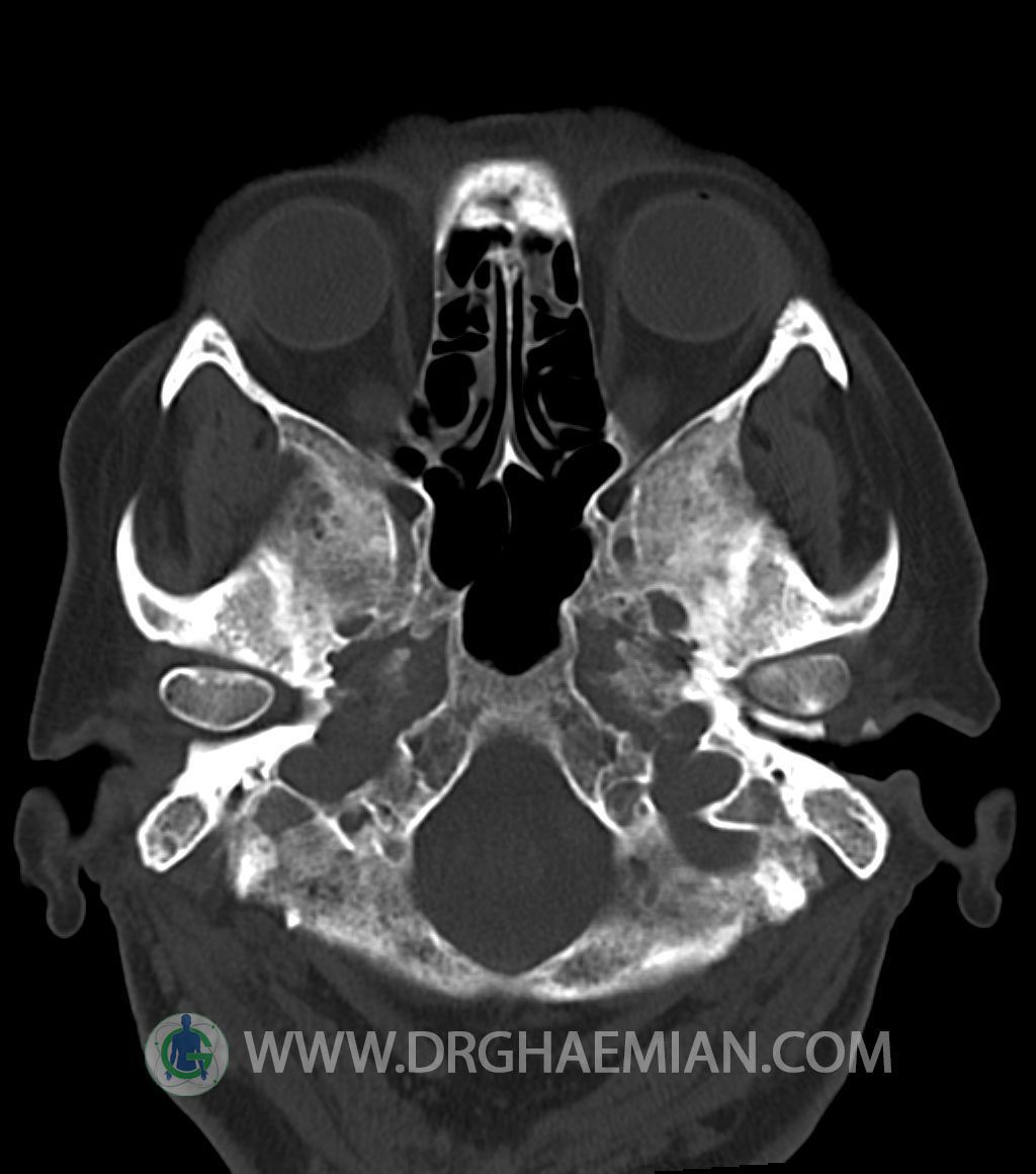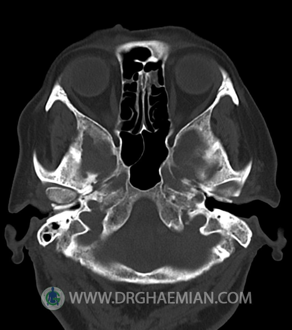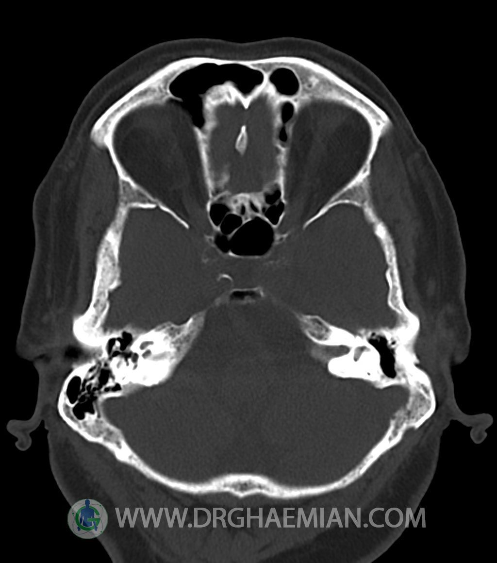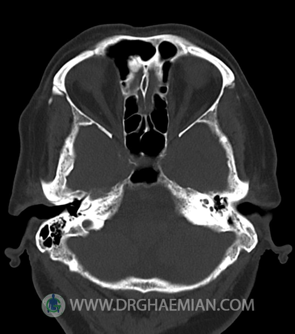در نسج نرم اوربيت ، اسکال و سينوس های پارانازال ضايعه ای مشهود نيست.
