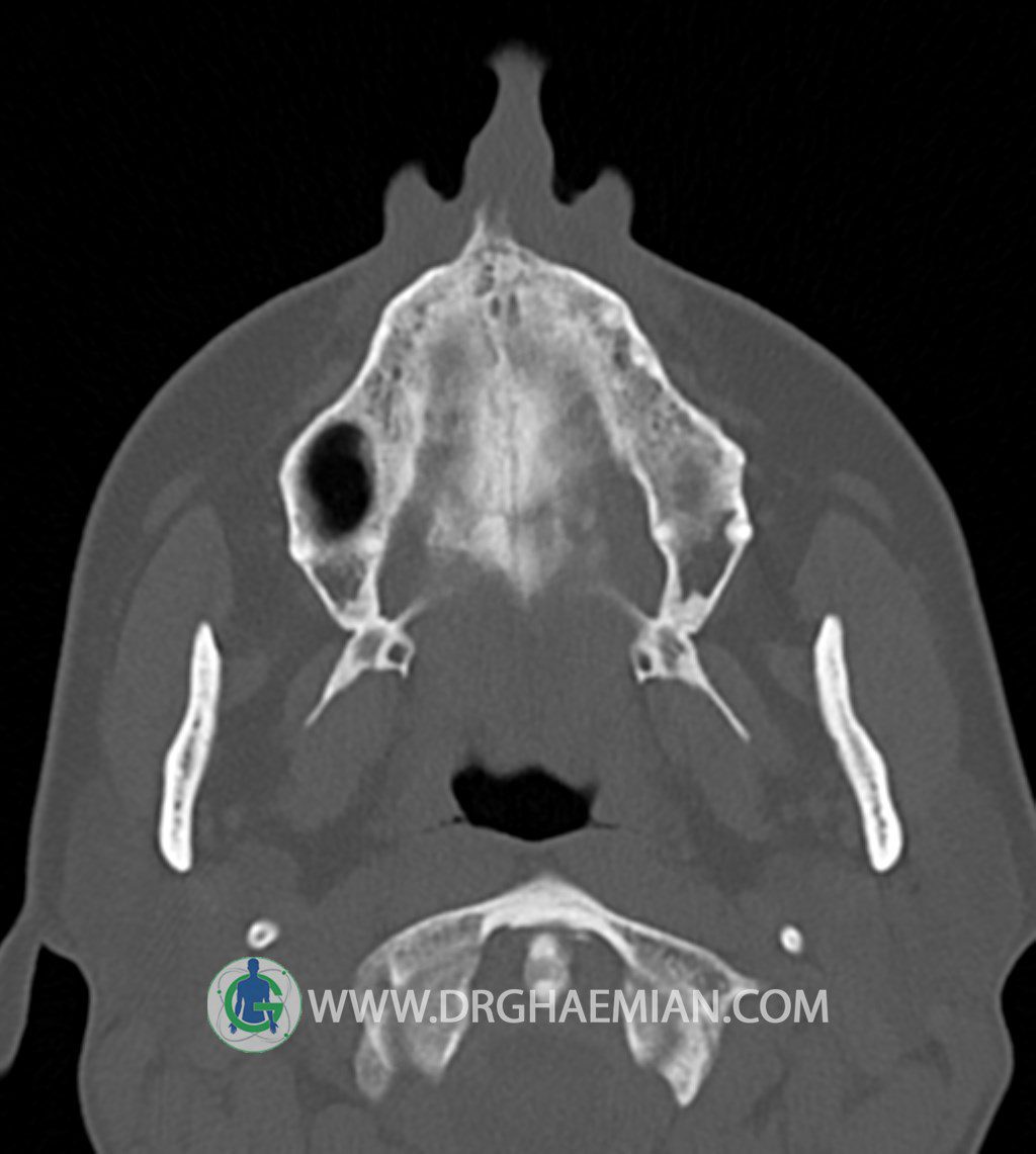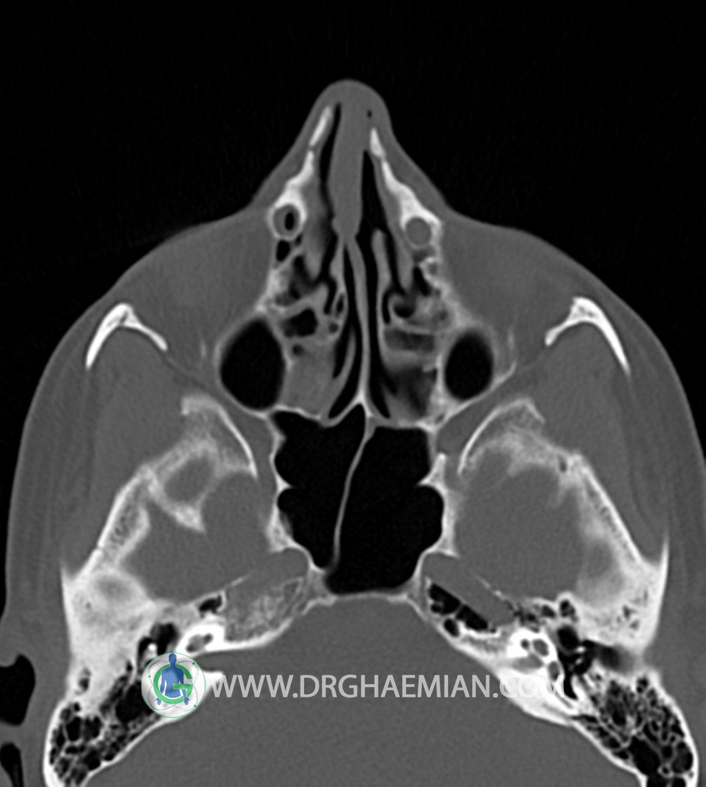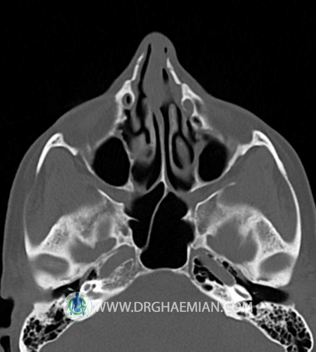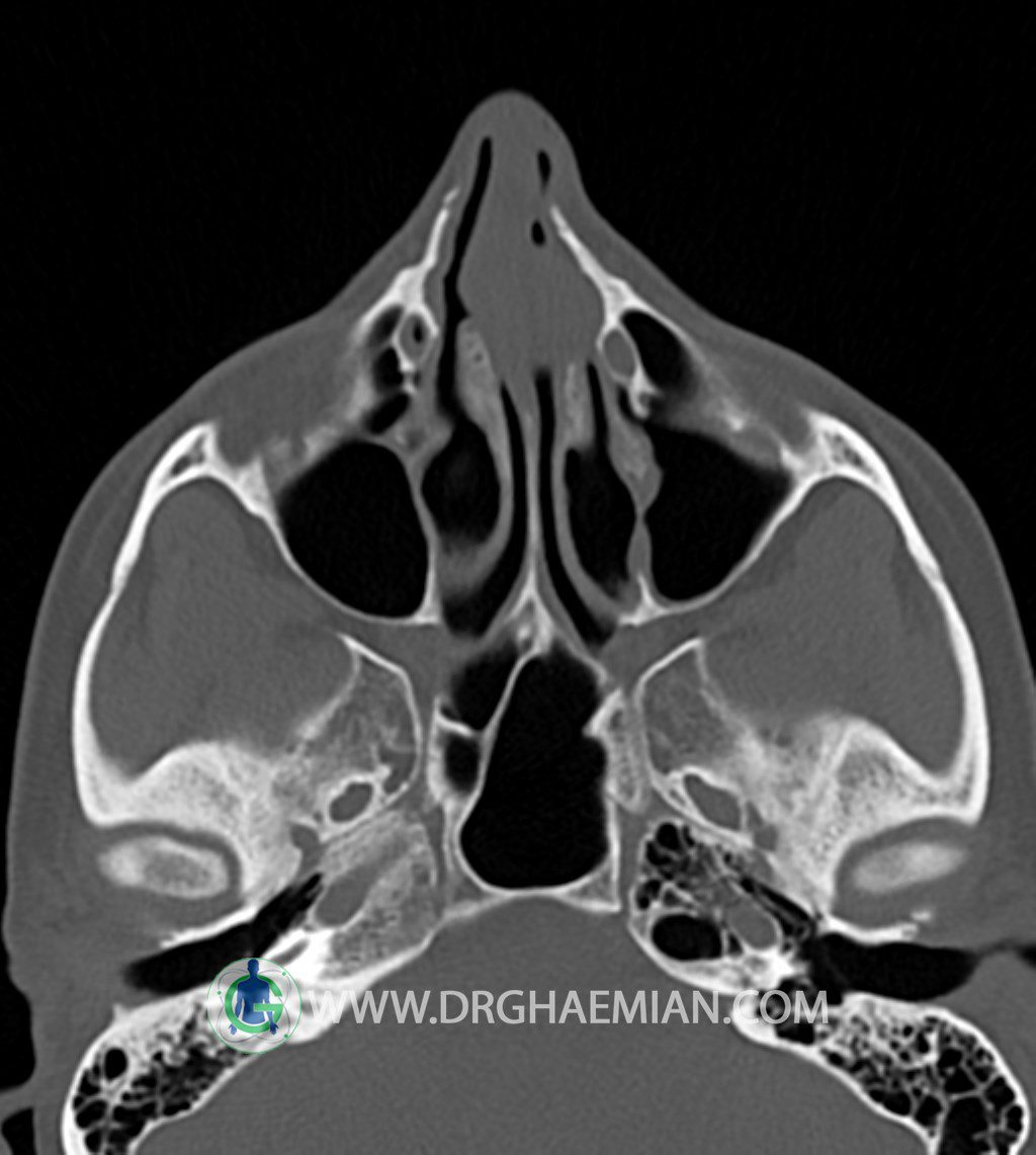 اوستيوم سينوسهای ماگزيلاری باز است و ضايعه ای در محل اوستئومئاتال کمپلکسOMC)) دو طرف ديده نمیشود.