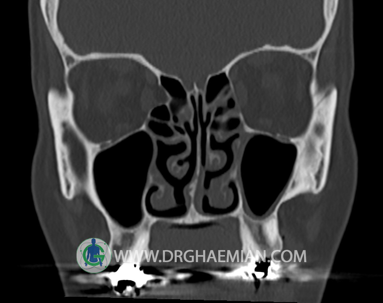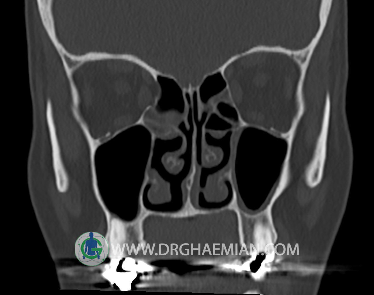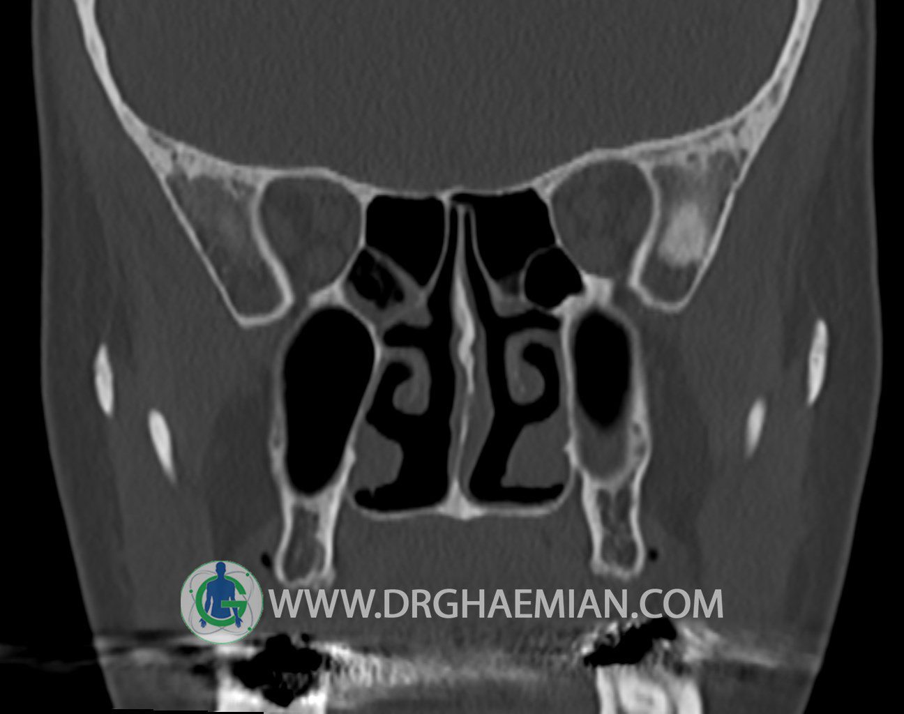 اوستيوم سينوسهای ماگزيلاری باز است و ضايعه ای در محل اوستئومئاتال کمپلکسOMC)) دو طرف ديده نمیشود.