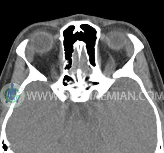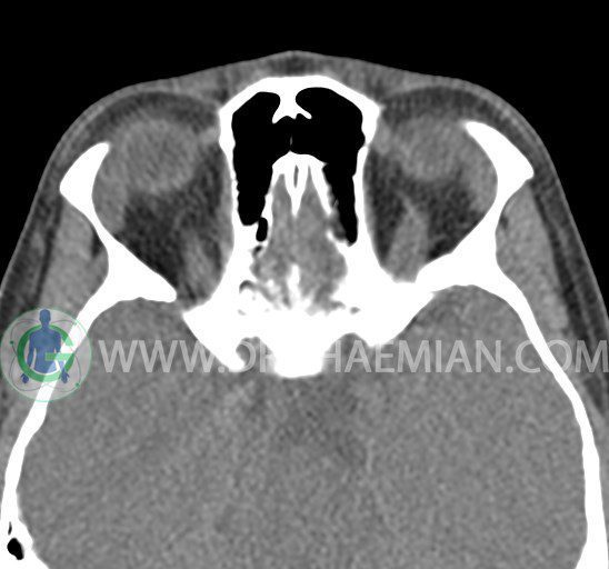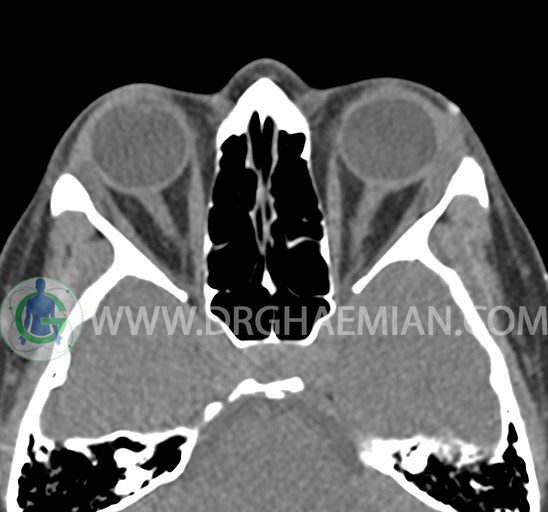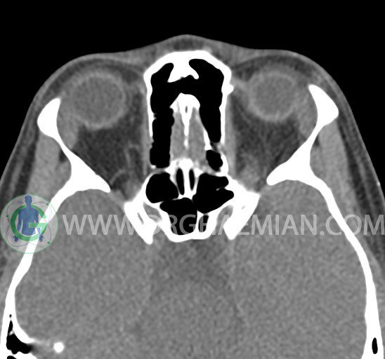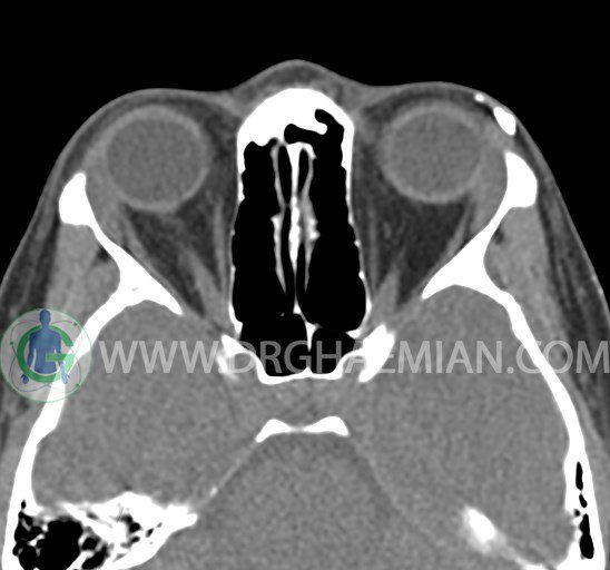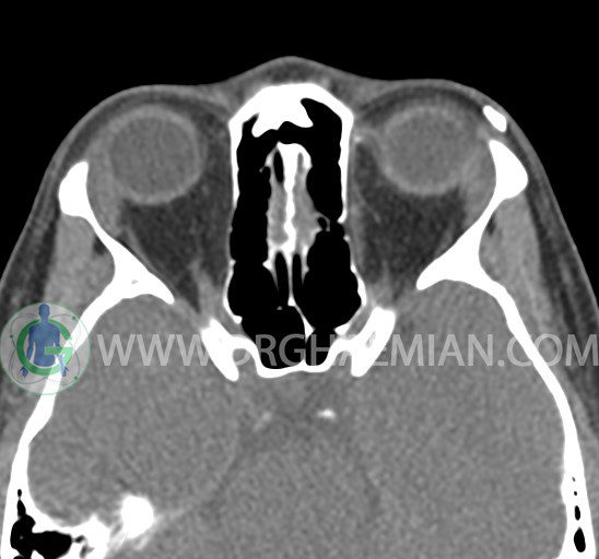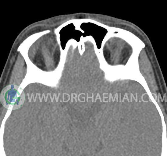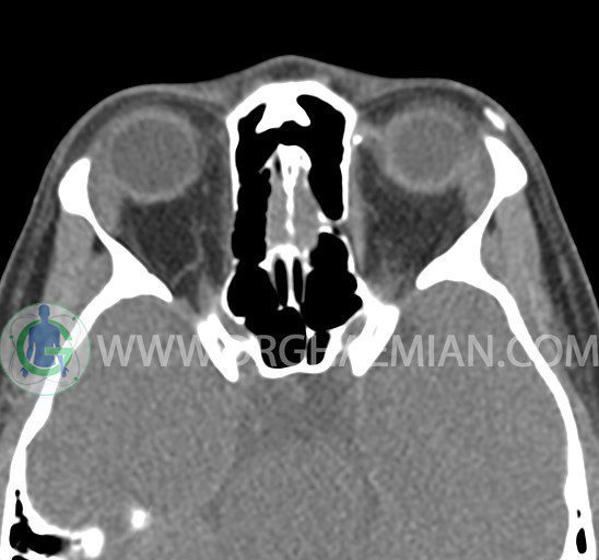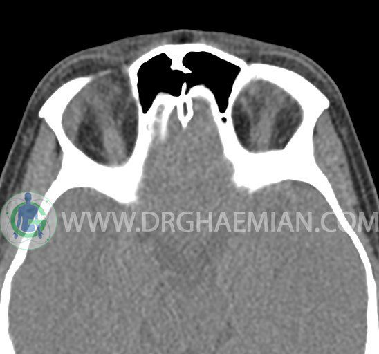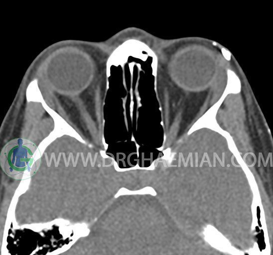 در سی تی اسکن اسپیرال اگزیال وکرونال از اربیت بدون تزریق :