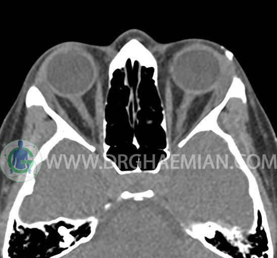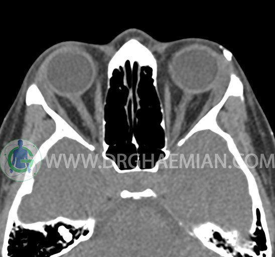 نمای گلوب، عضلات چشمی، فضای اربیت و دانسیته چربی داخل آن در حد نرمال میباشد.