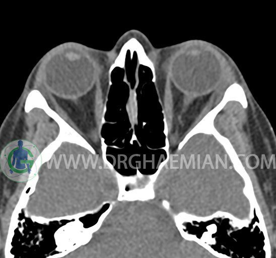 سی تی اسکن اوربیت یک روش تصویربرداری است. این روش از تشعشعات برای ایجاد تصاویری با جزییات از حفره های چشمی (اوربیت ها)، چشمان و استخوان های پیرامون استفاده می کند. در این کیس جابجایی قدامی کیسه اشکی و کلسیفیکاسیون و بزرگی کیسه اشکی دو طرف دیده می شود.