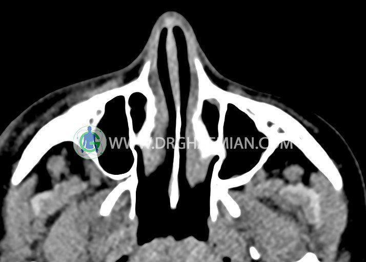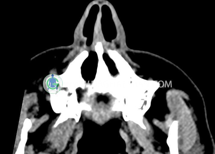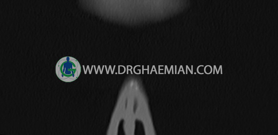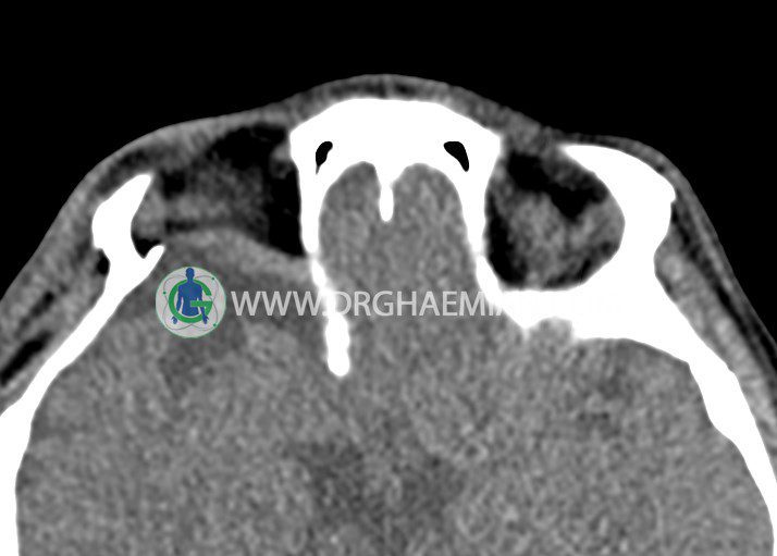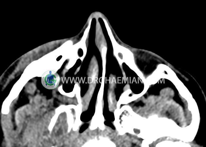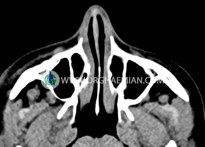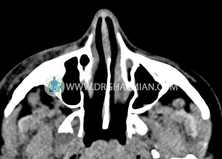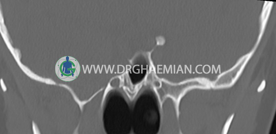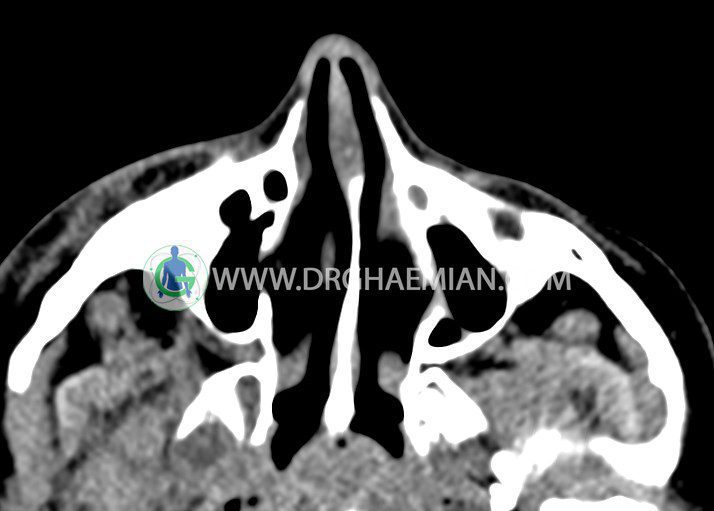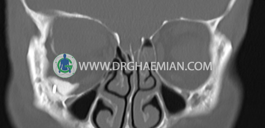 سی تی اسکن اوربیت یک روش تصویربرداری است. این روش از تششعات برای ایجاد تصاویری با جزییات از حفره های چشمی (اوربیت ها)، چشمان و استخوان های پیرامون ایجاد می کند. در این کیس جسم خارجی اوربیت راست به ابعاد mm 5 x 20، انحراف سپتوم و افزایش ضخامت مخاطی سینوس ها مشاهده می شود.