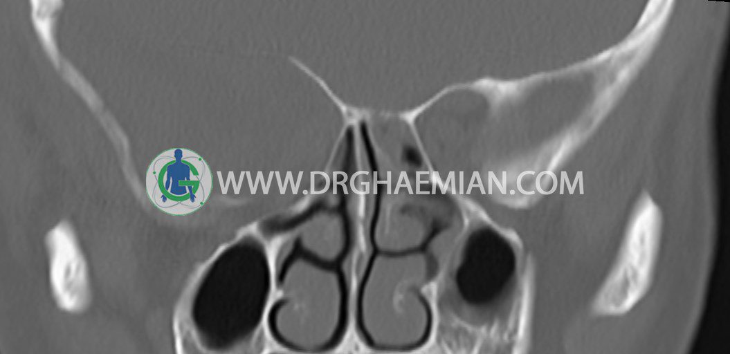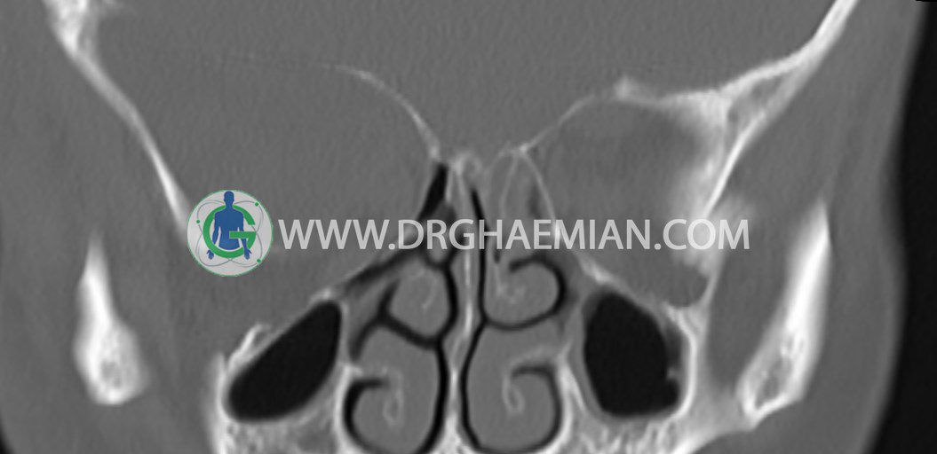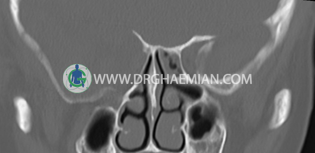 – افزايش ضخامت مخاطي در سينوس هاي اتموئيد و ماگزيلاري چپ همراه با انسداد OMC چپ