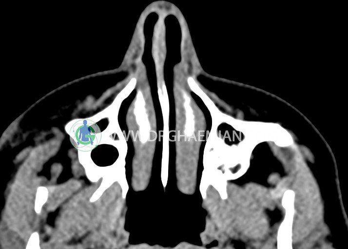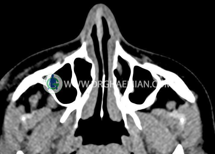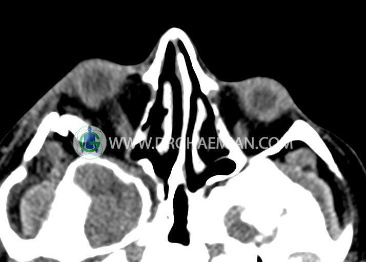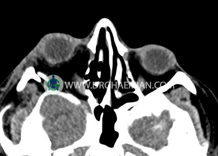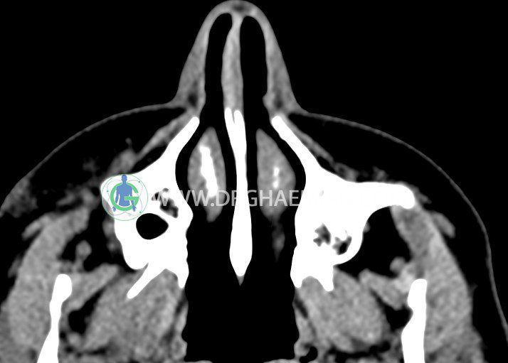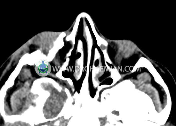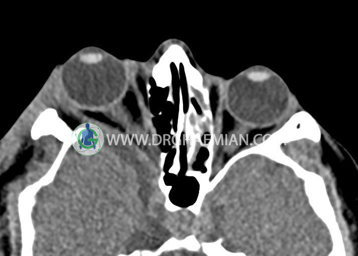 در سی تی اسکن اسپیرال اگزیال وکرونال از اربیت بدون تزریق :