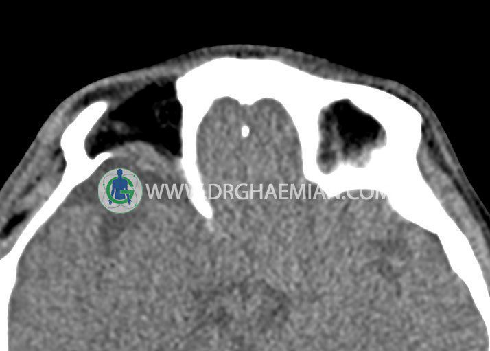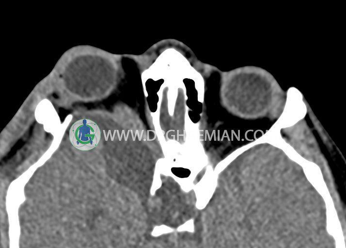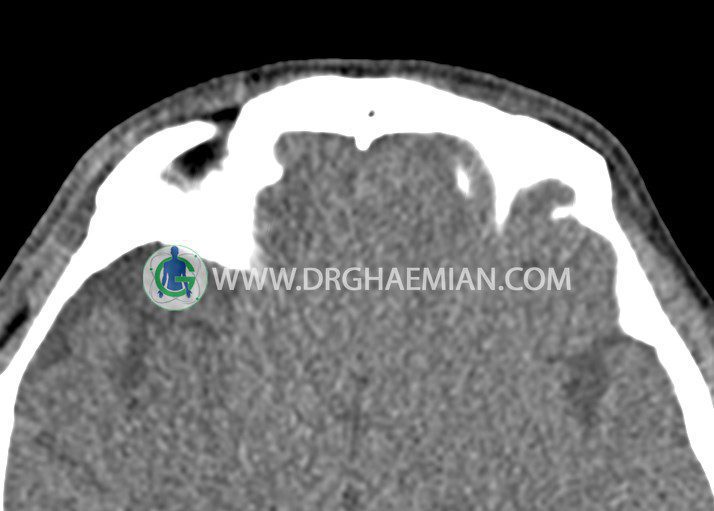 راست همراه با ساختمان هيپردنس ( HU = 1500 ) در کف اربيت راست به ابعاد5 x 20 mm مطرح کننده