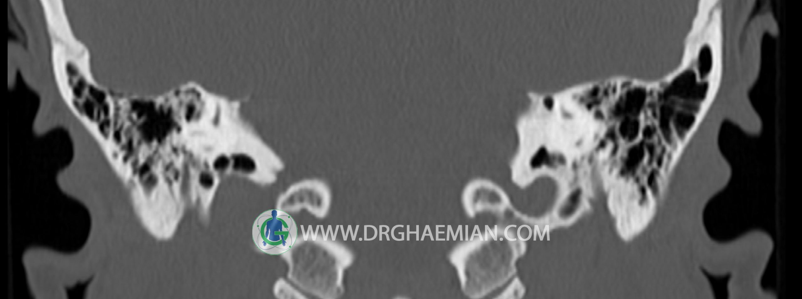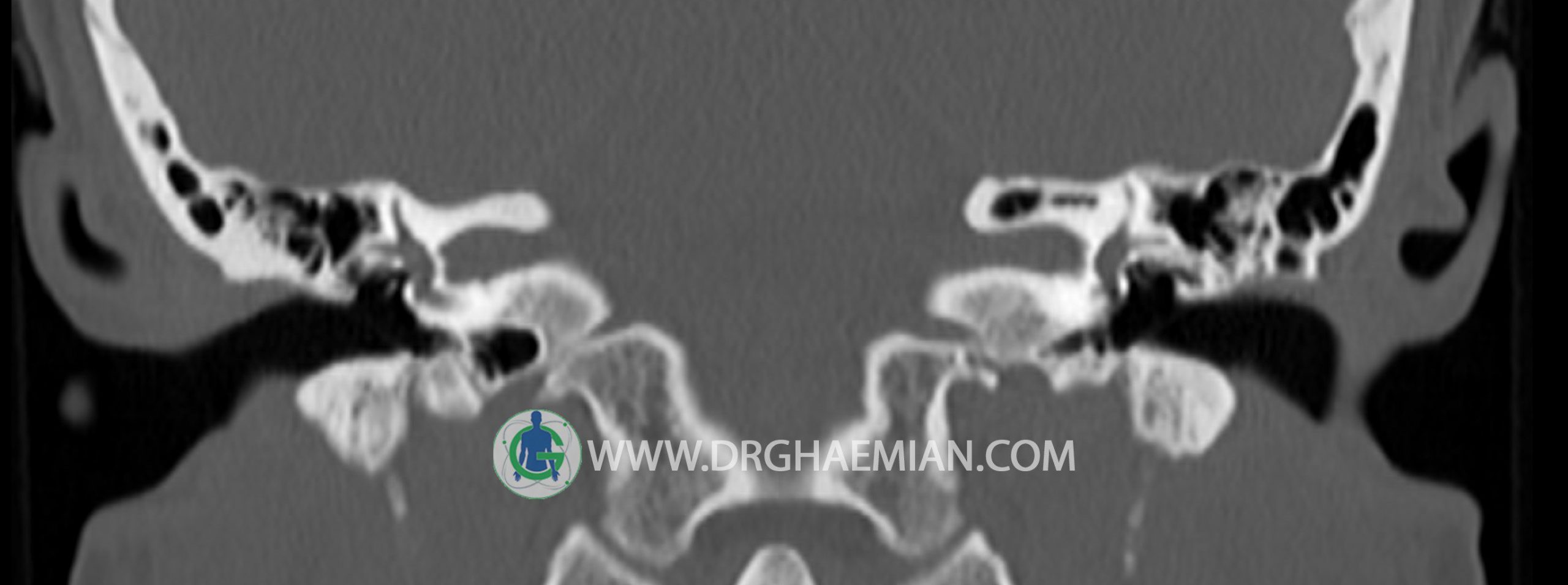 در HRCT از استخوان تمپورال با مقاطع آگزيال ، ساژيتال و کرونال ظريف ( 0.6 mm ) :