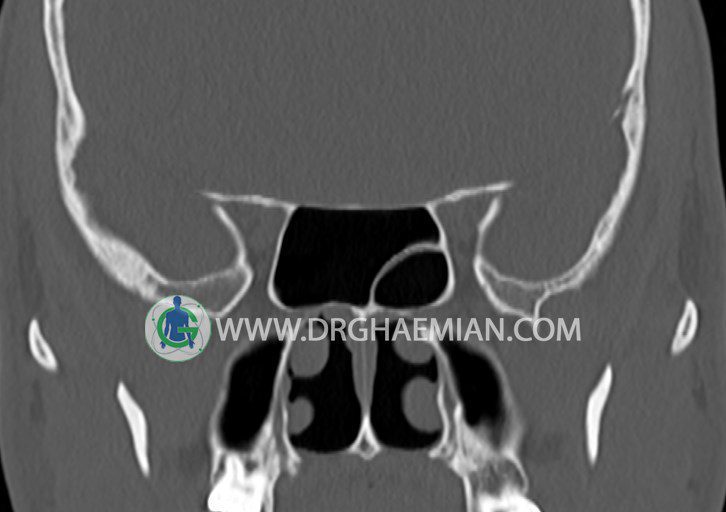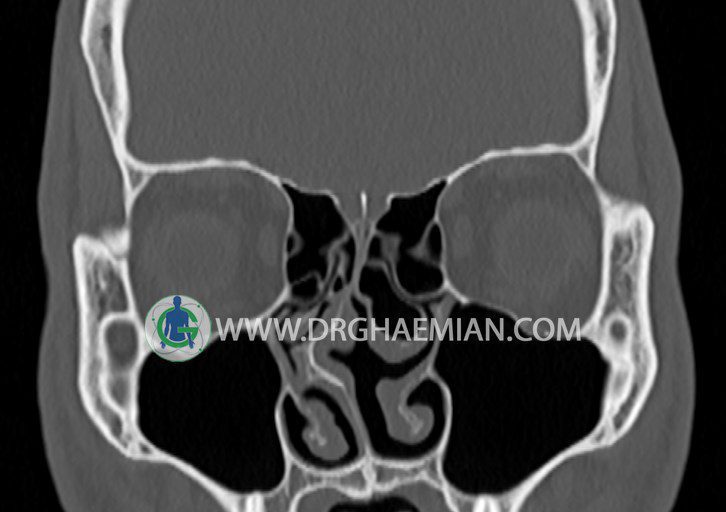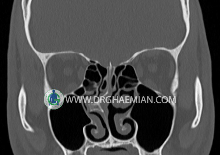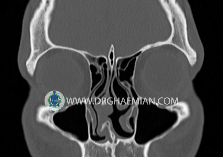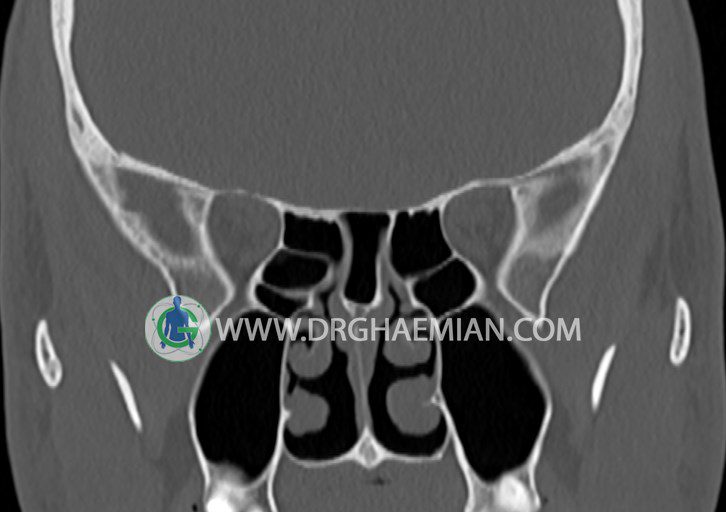 شواهدی از توده، سطح گاز – مايع، کدورت سينوسها، افزايش ضخامت مخاط ديواره سينوسها، اروژن ديواره سينوسها و دنسيتی غير طبيعی ديده نمی شود.