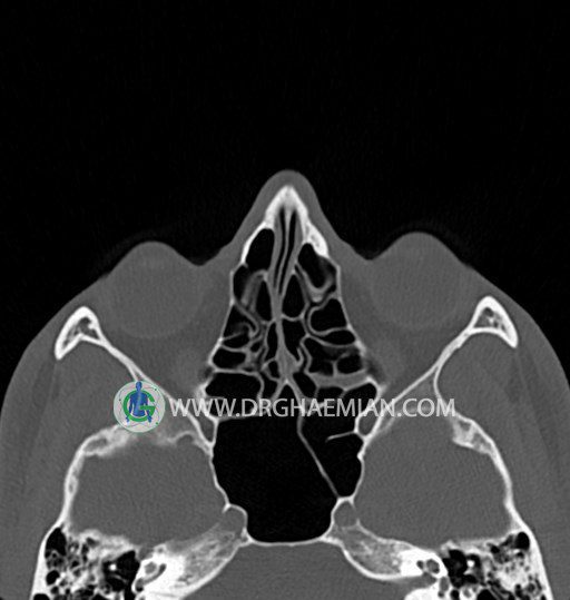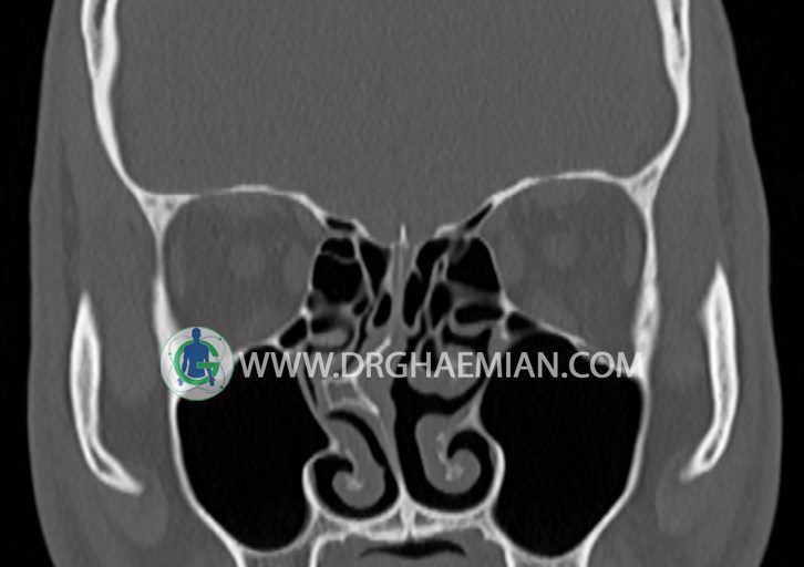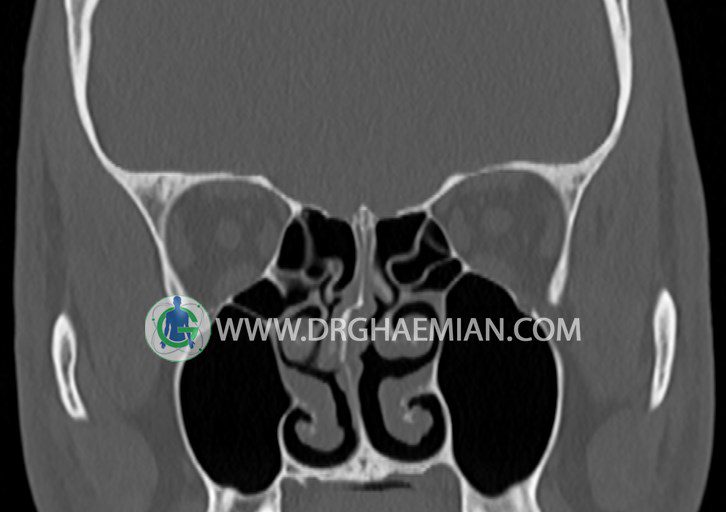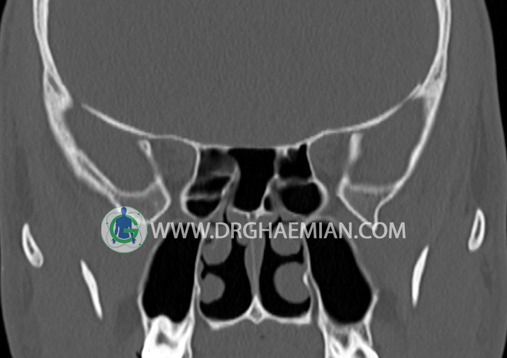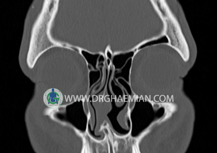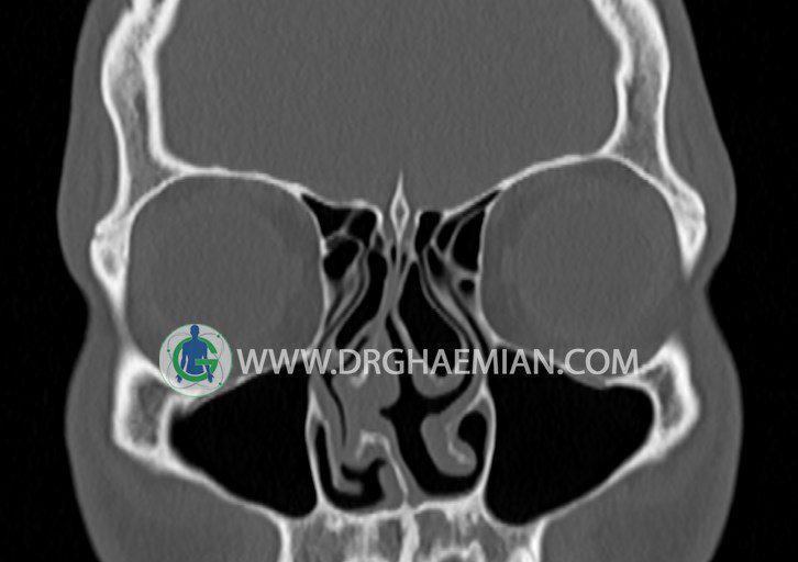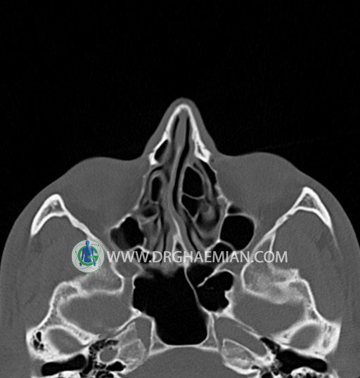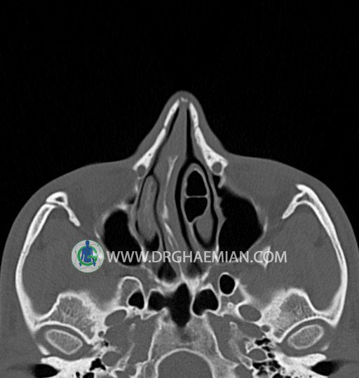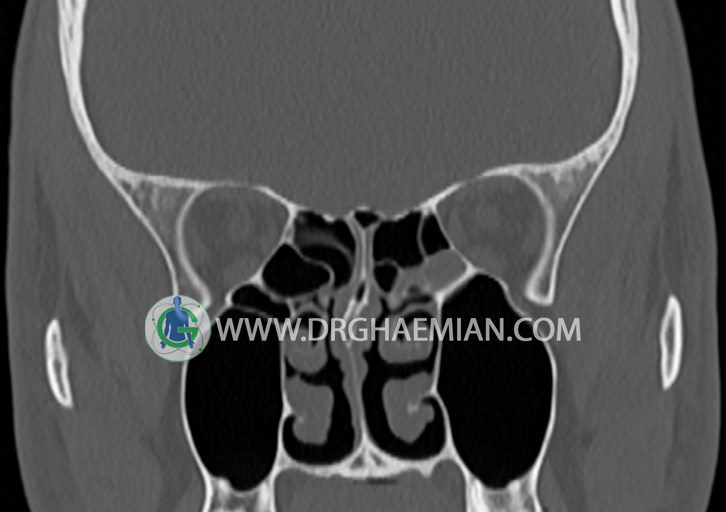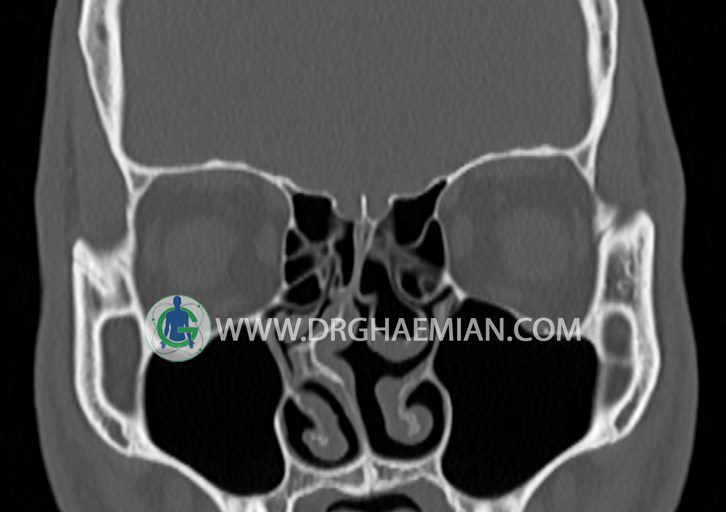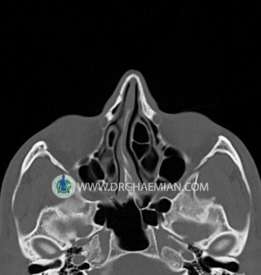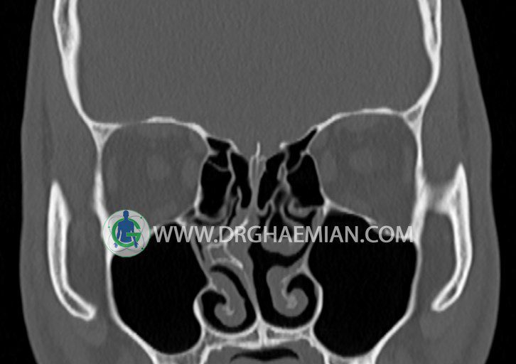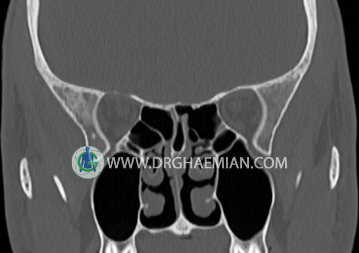 در HRCT اسپيرال از سينوس هاي پارانازال مقاطع کرونال و آگزيال ( 16 اسلايس و مقاطع ظريف 1.5 mm بدون فاصله ، با پنجره استخواني و نسج نرم ) :