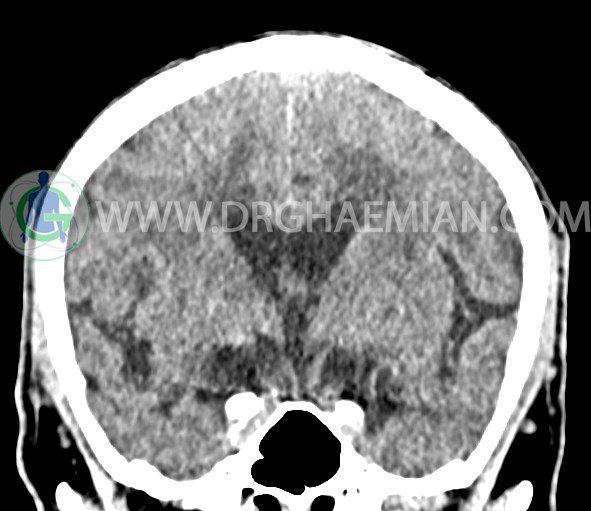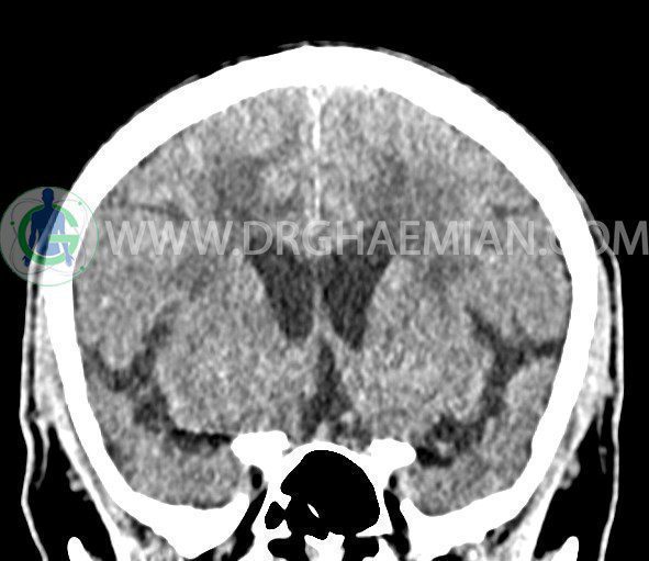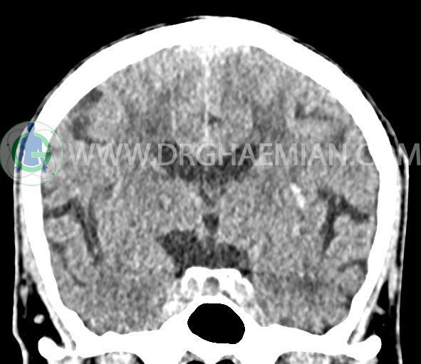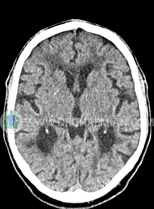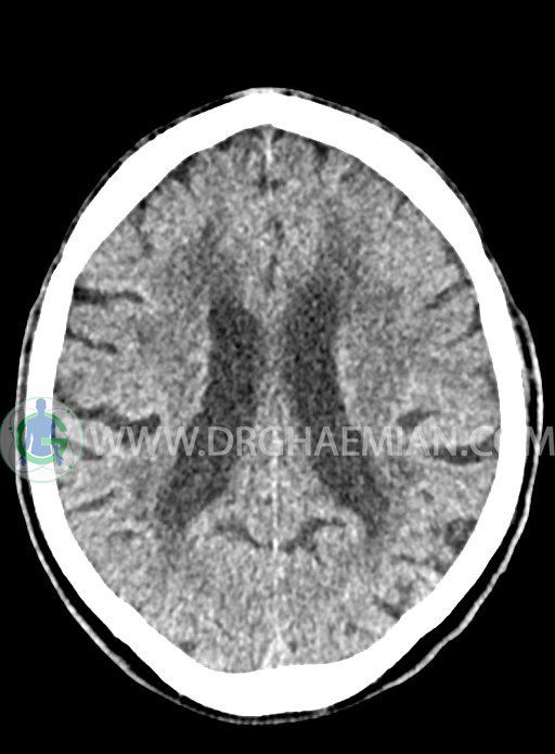 – آتروفي خفيف تا متوسط و منتشر پارانشيم مغز