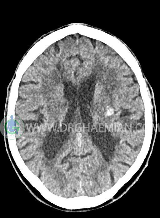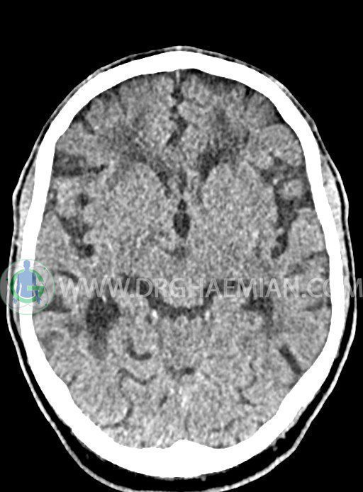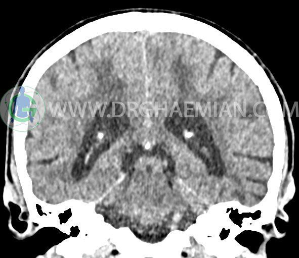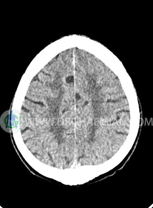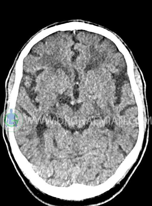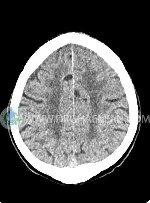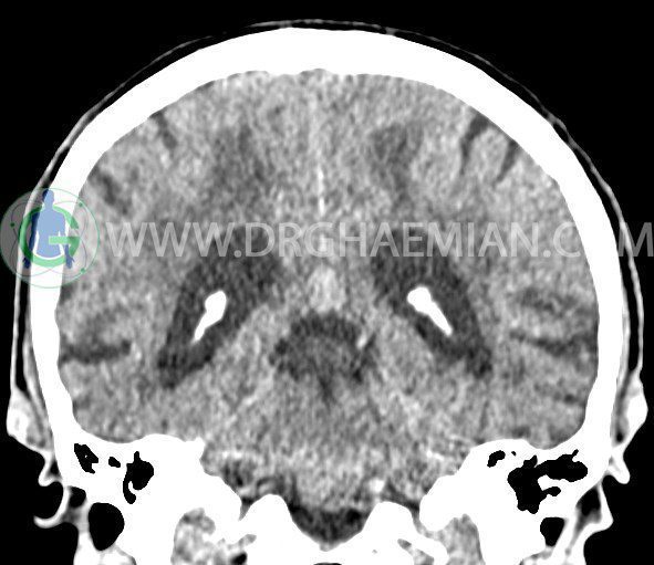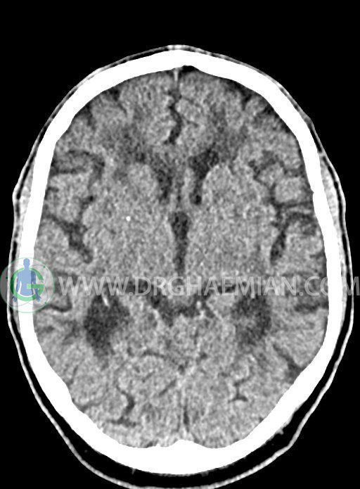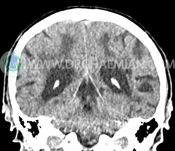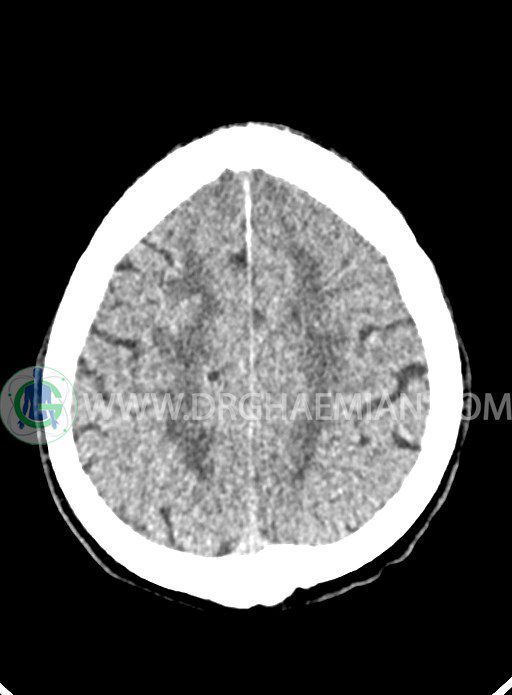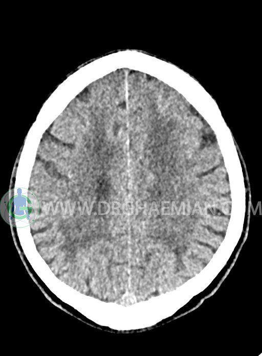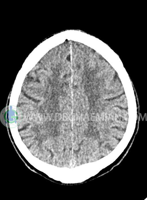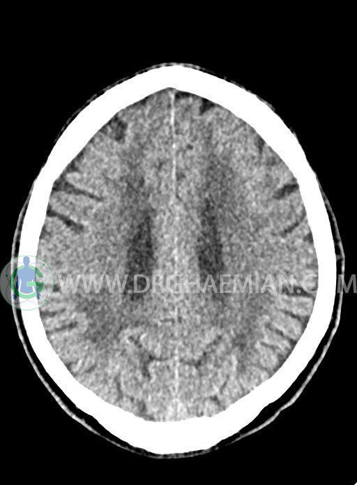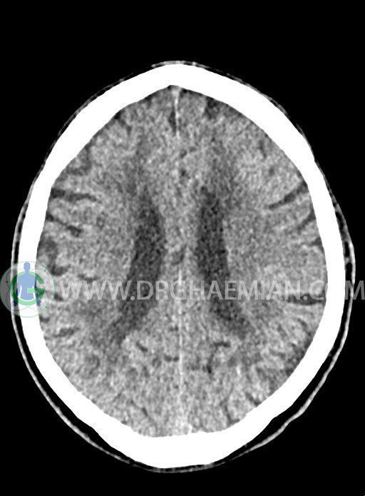 – هيپودنسيتي در اطراف بطن هاي جانبي و centrum semiovale مطرح کننده تغييرات ischemic و