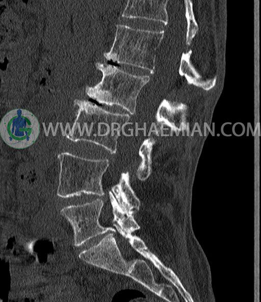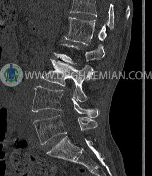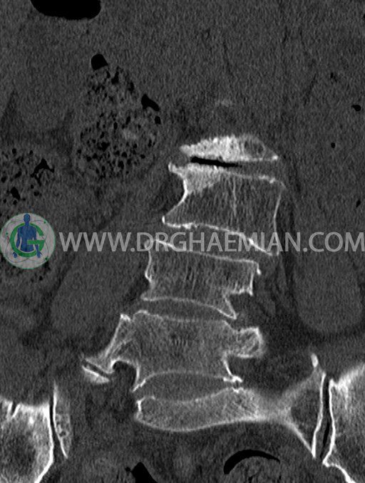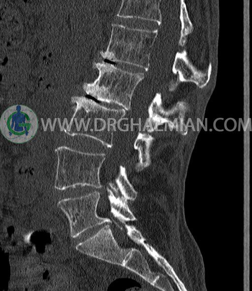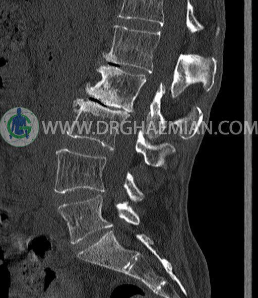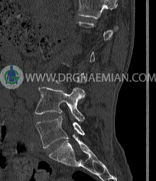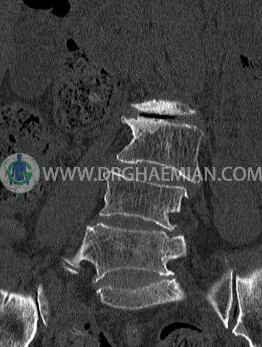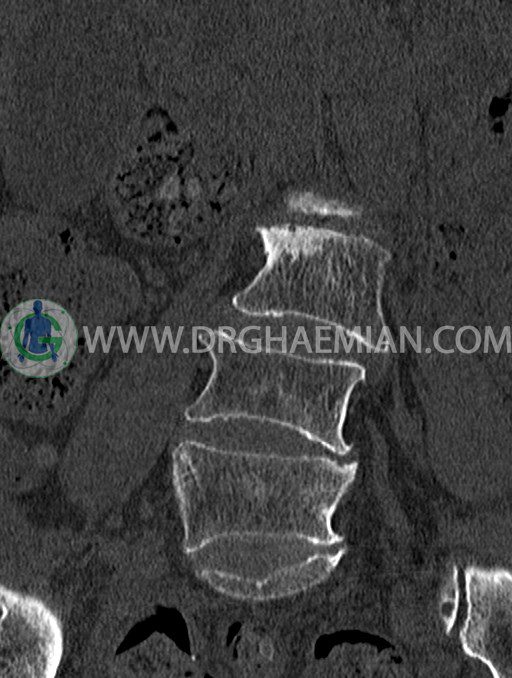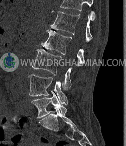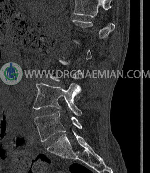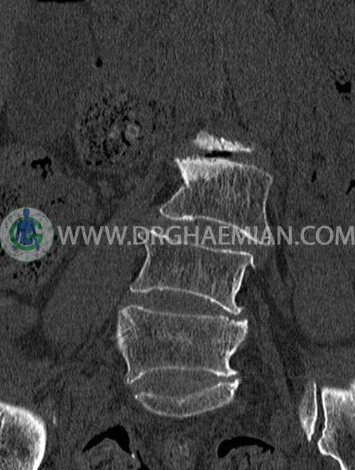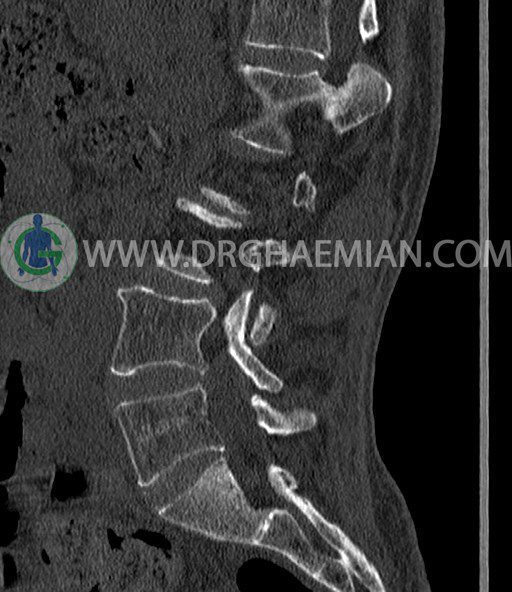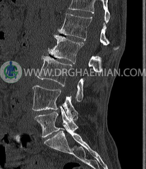 سی تی اسکن اسپيرال از مهره های L1 تا S1 (مولتي ديدکتور 16 با مقاطع ظريف و بازسازي هاي ساژيتال و کرونال و 3D):