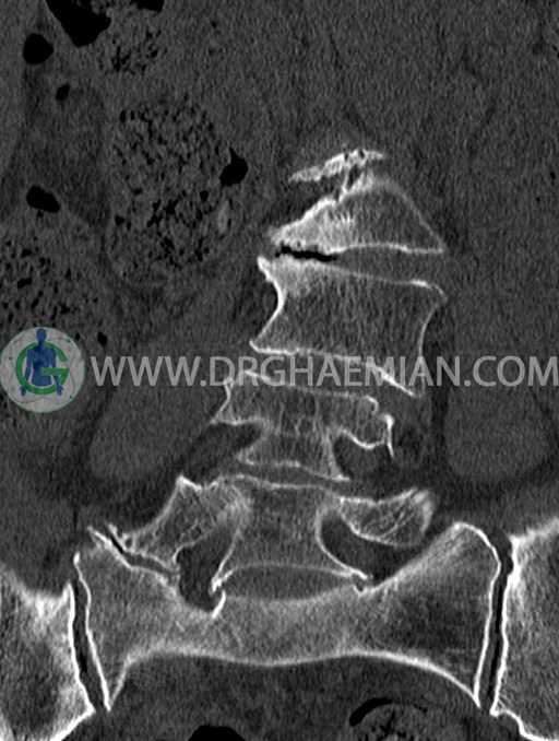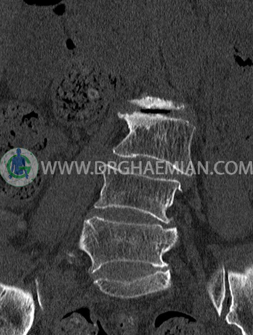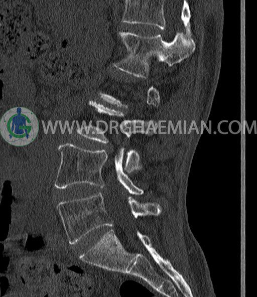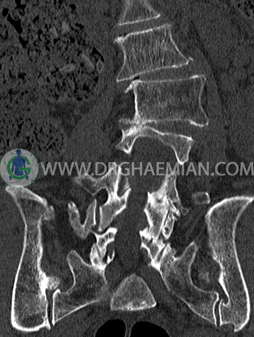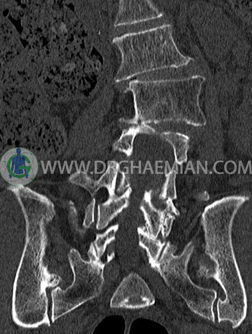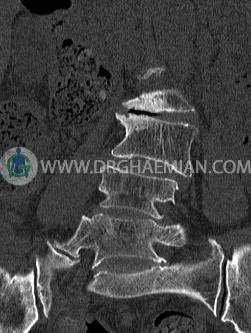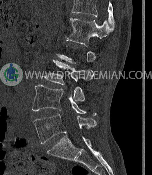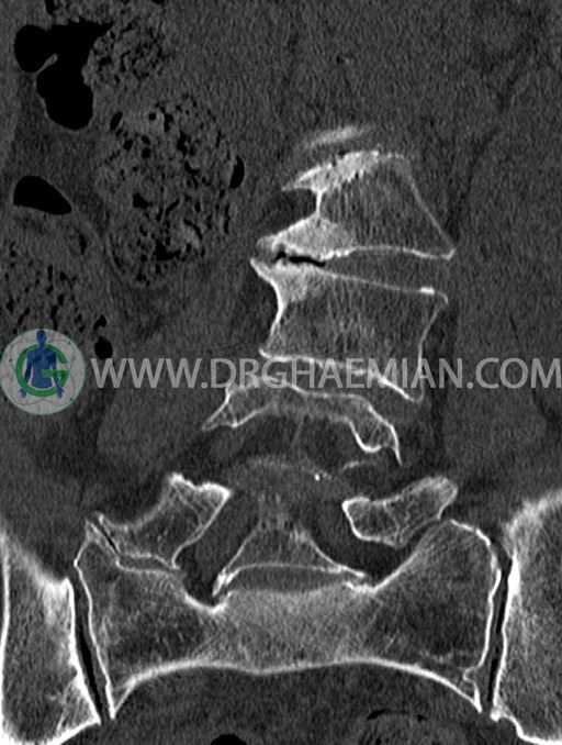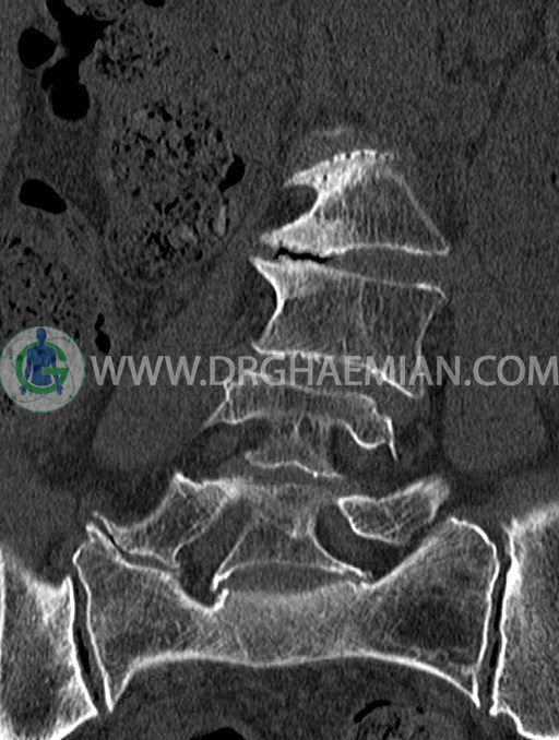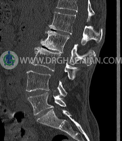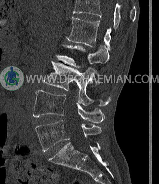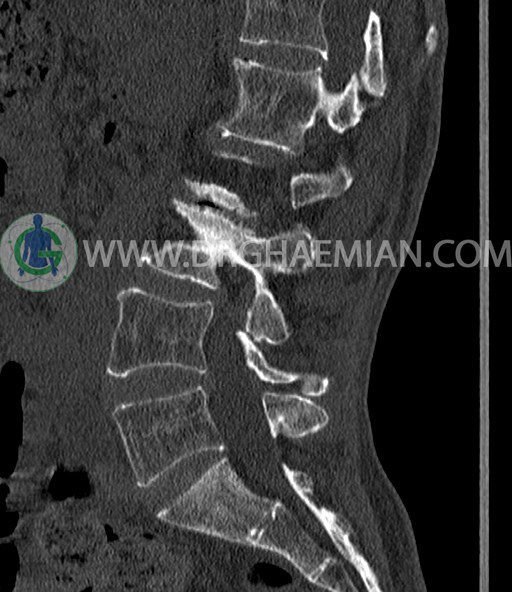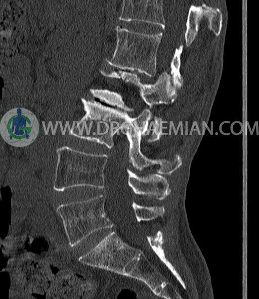 سی تی اسکن اسپيرال از مهره های L1 تا S1 (مولتي ديدکتور 16 با مقاطع ظريف و بازسازي هاي ساژيتال و کرونال و 3D):