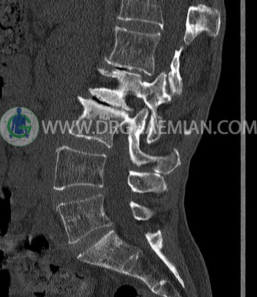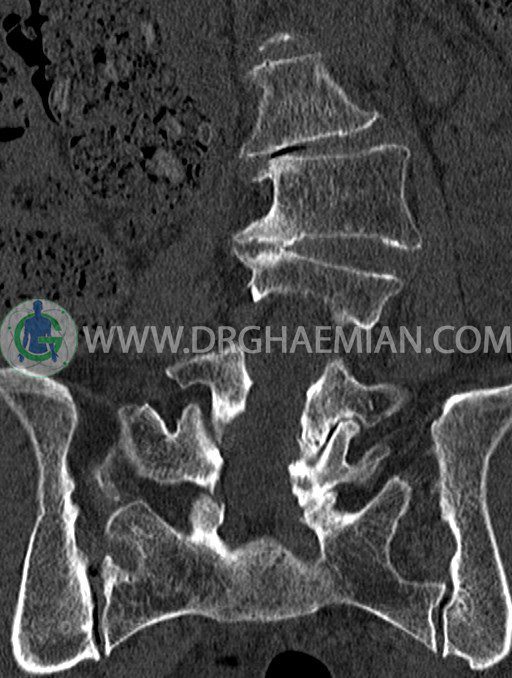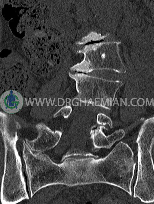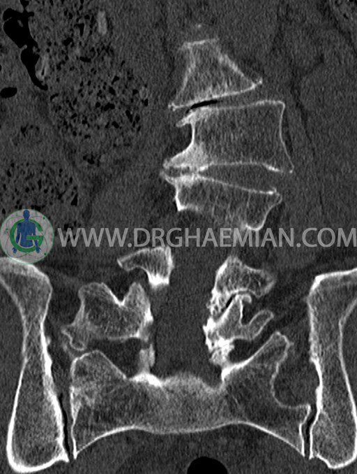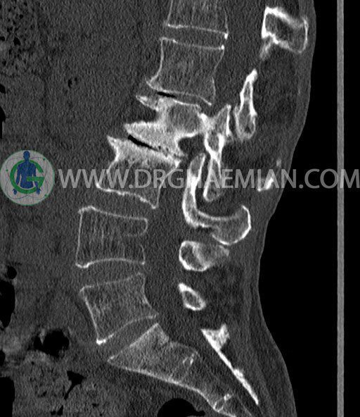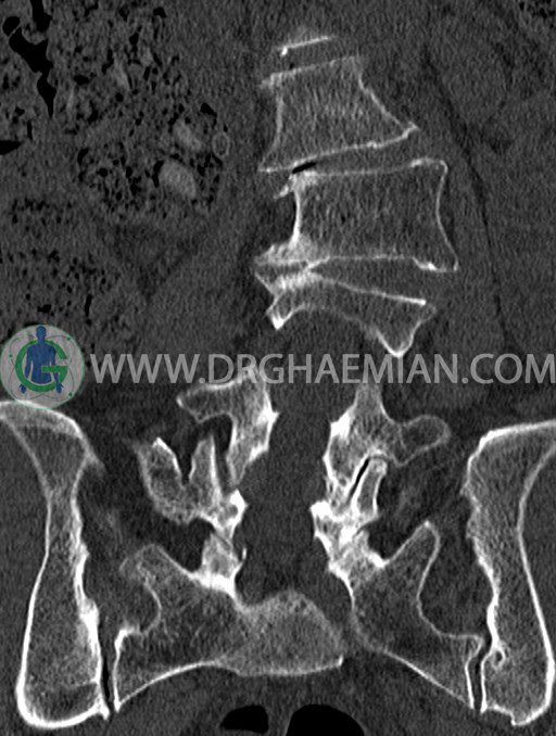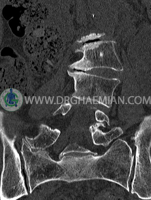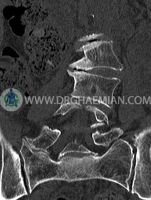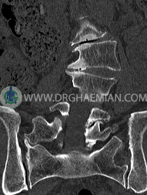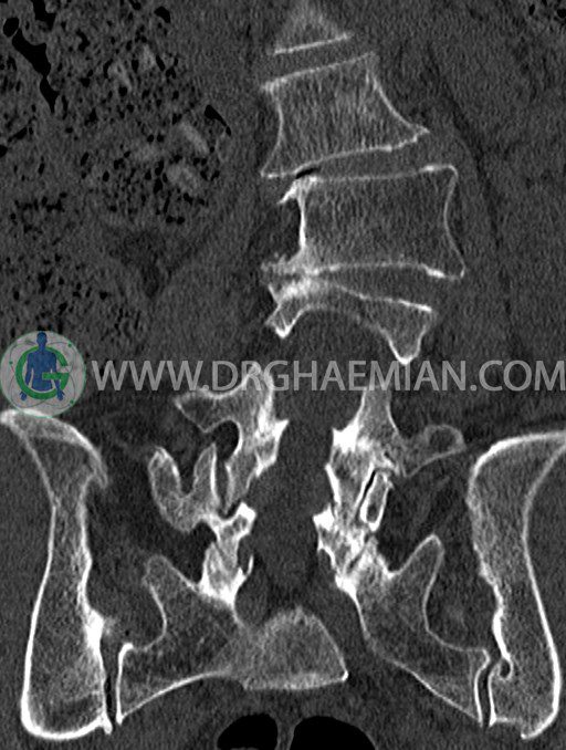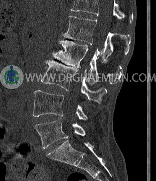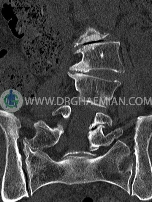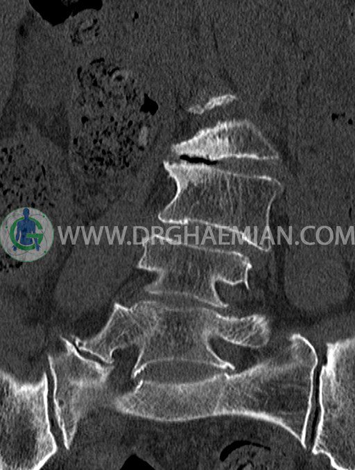 سی تی اسکن اسپيرال از مهره های L1 تا S1 (مولتي ديدکتور 16 با مقاطع ظريف و بازسازي هاي ساژيتال و کرونال و 3D):