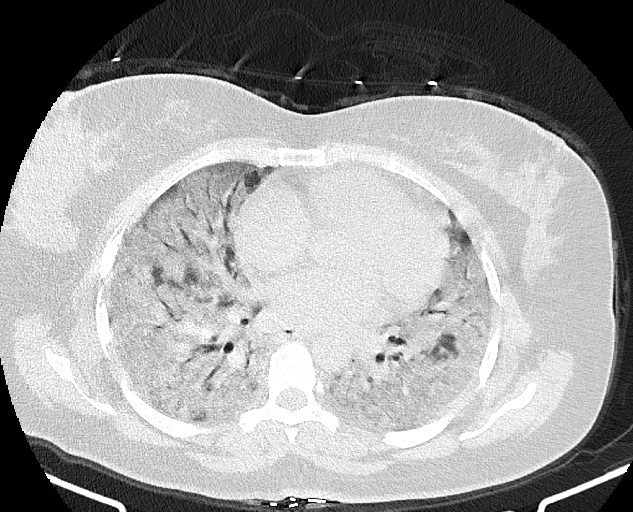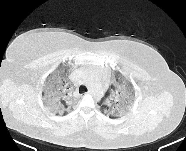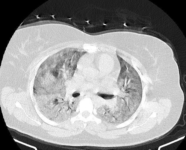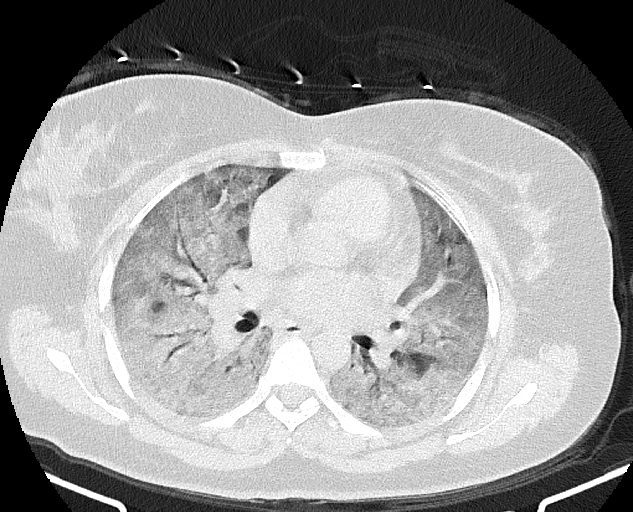 -Ground glass opacities منتشر ريه ها ( white lung ) مطرح کننده Viral pneumonia وسيع مي باشد. ( با درگيري بيش از 90 درصد حجم ريه )