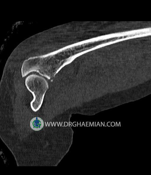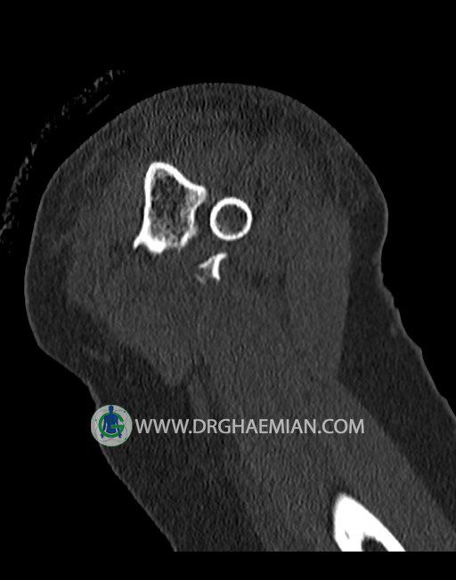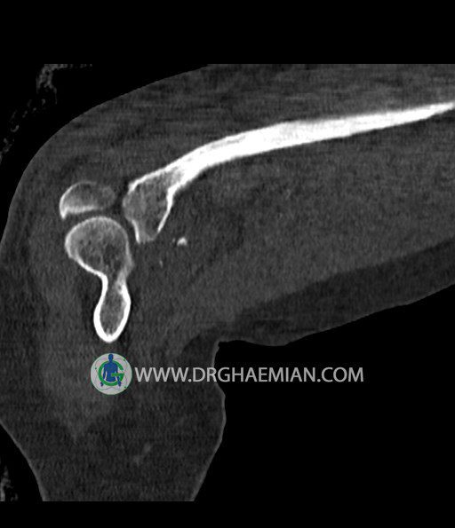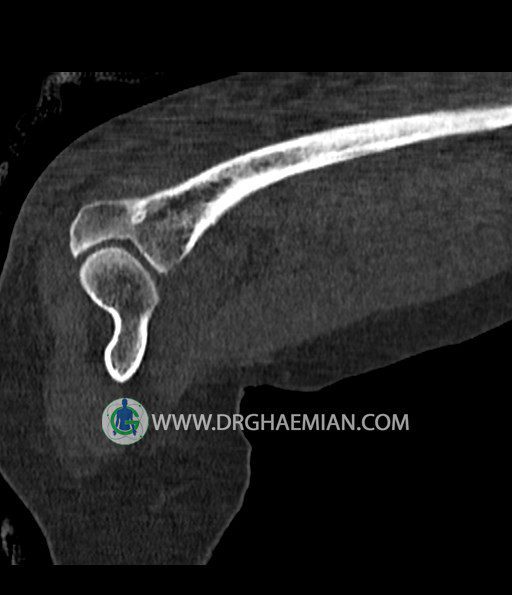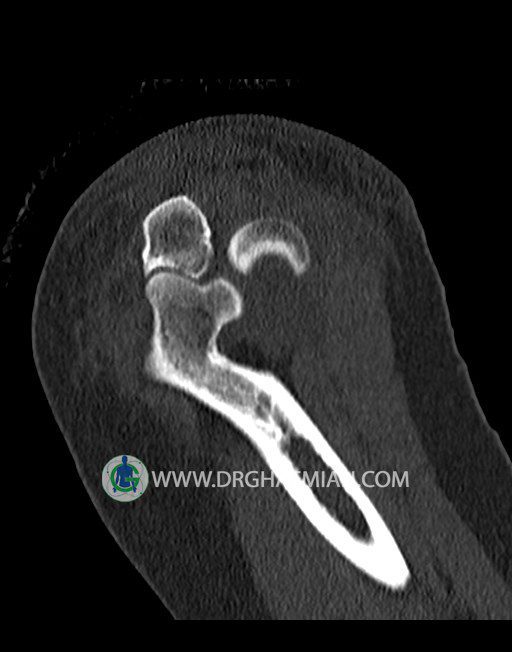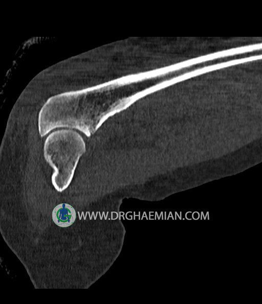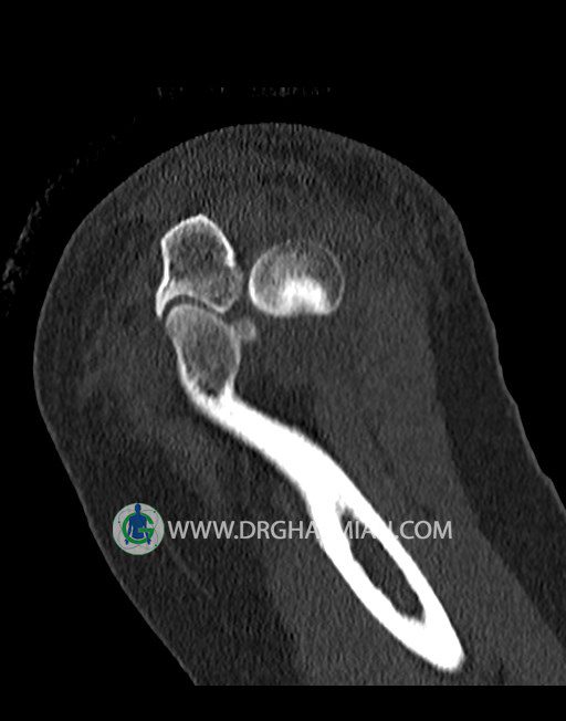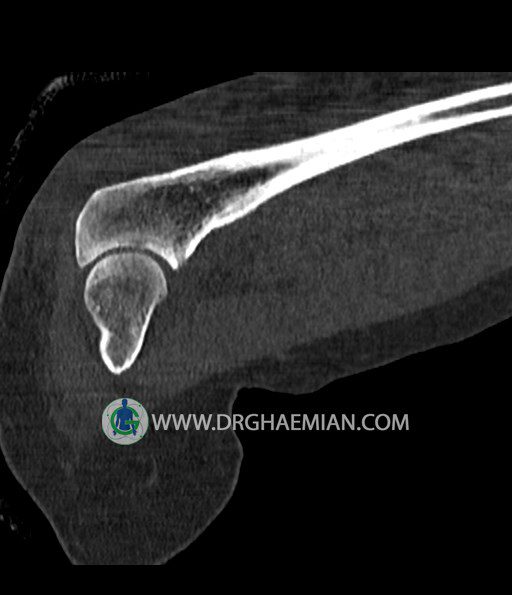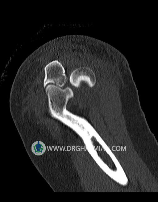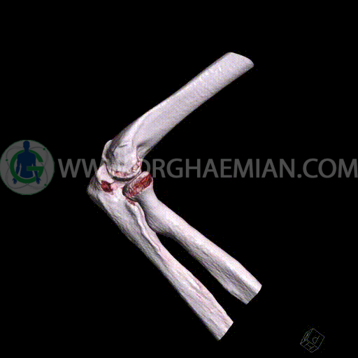 در سی تی اسکن اسپیرال اگزیال، کرونال و ساژیتال با 3D از آرنج راست :