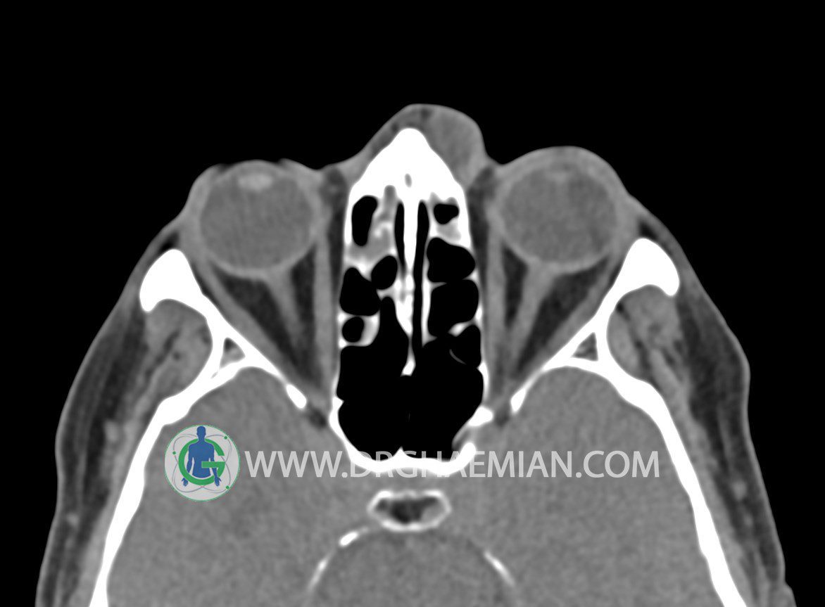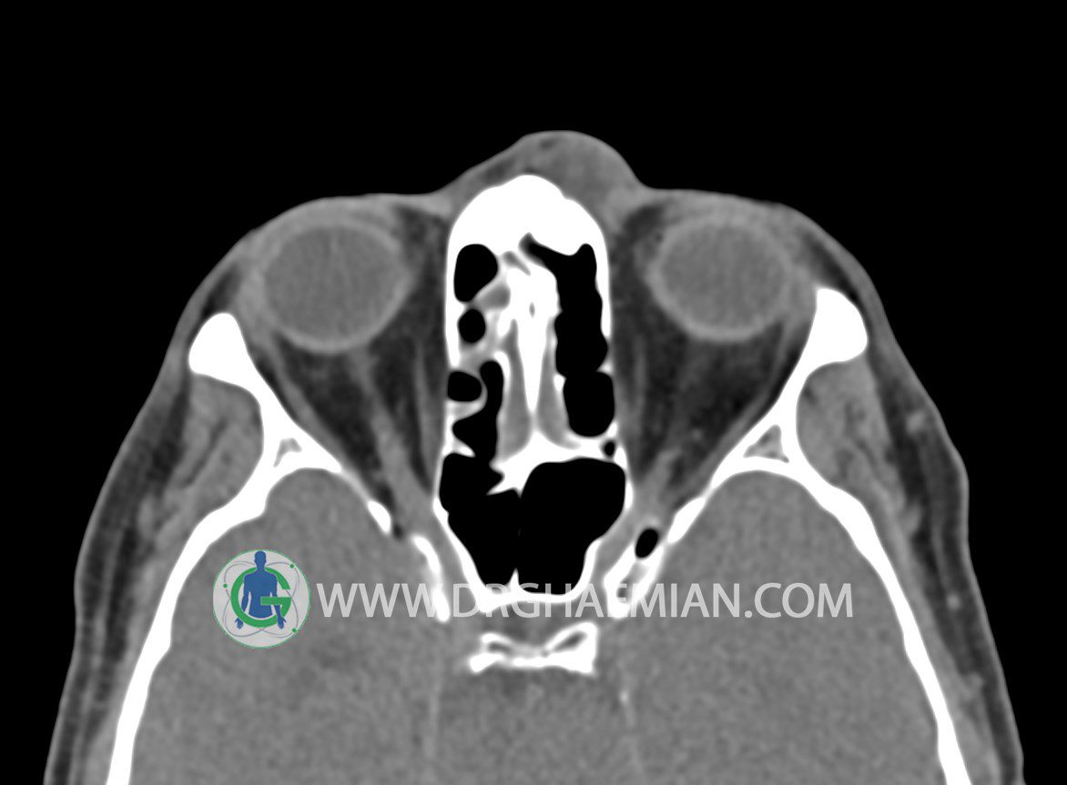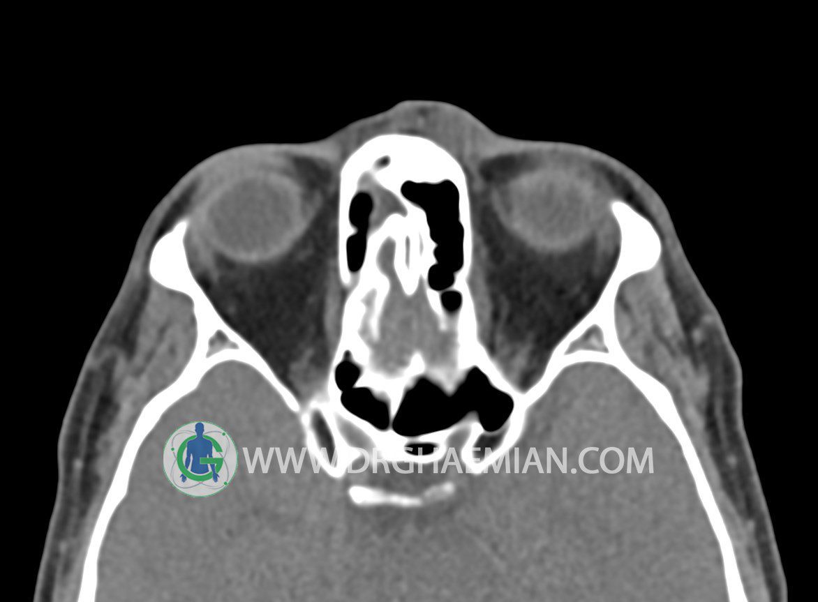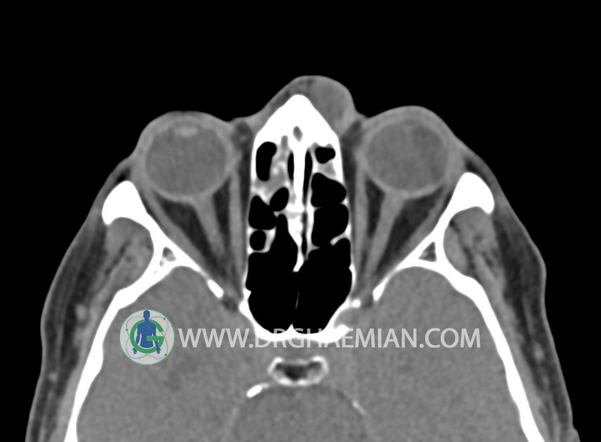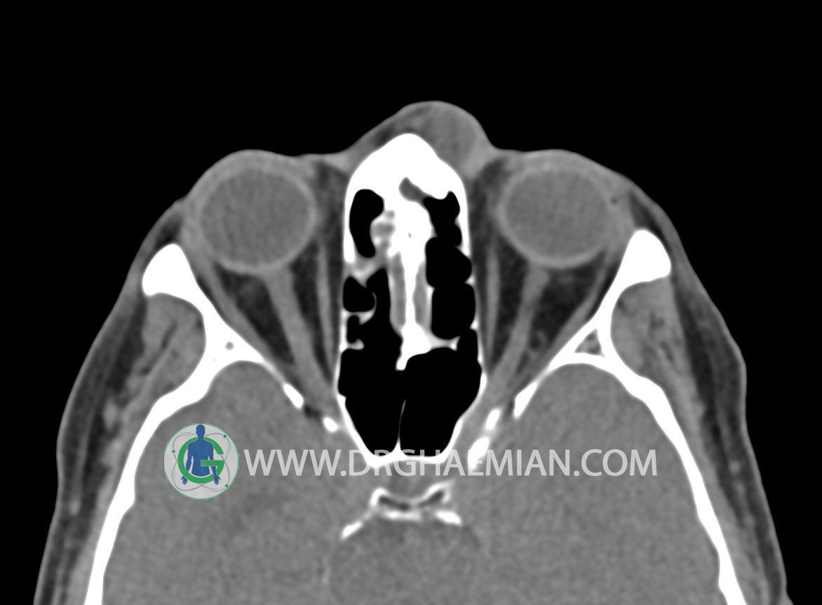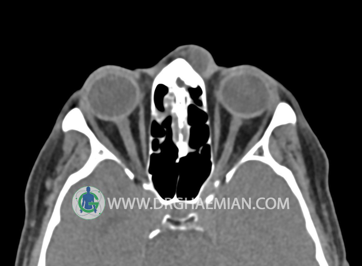 سی تی اسکن اوربیت یک روش تصویربرداری است. این روش از تششعات برای ایجاد تصاویری با جزییات از حفره های چشمی (اوربیت ها)، چشمان و استخوان های پیرامون ایجاد می کند. در این کیس ساختمان سيستيک اوربیت، افزایش ضخامت مخاطی، انحراف سپتوم و کونکا بولوزا دیده می شود.