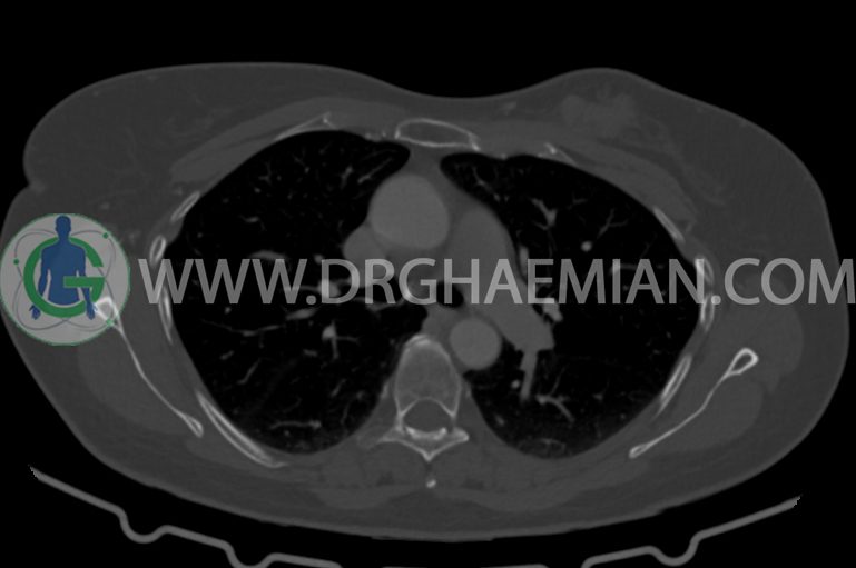 توده،  ندول ریوی، پنومونی، پلورال افیوژن، جابجایی محتویات مدیاستن، کلسیفیکاسیون، کیست، فیبروز ریوی و Collection مشهود نیست.