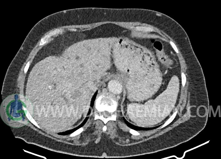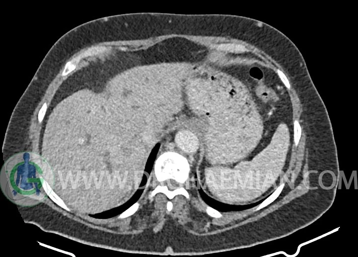 مایع آزاد در حفره شکم و لگن رویت نمی شود.