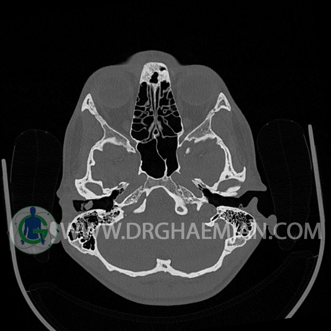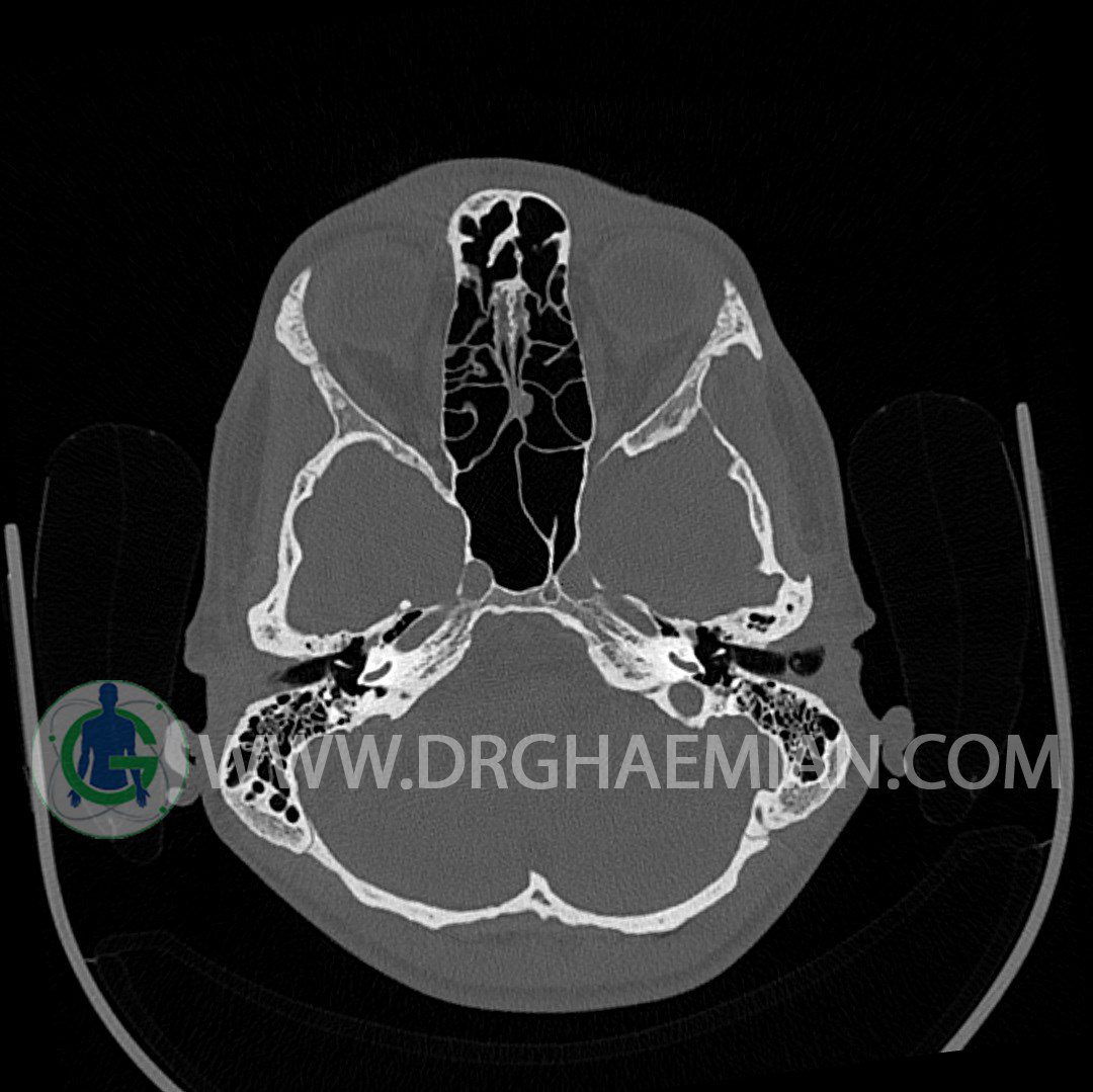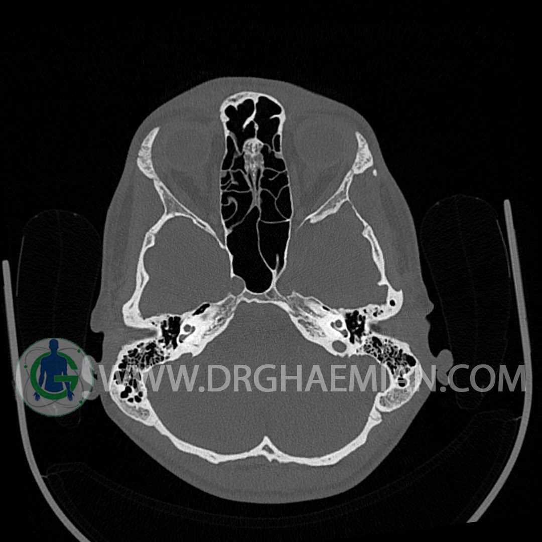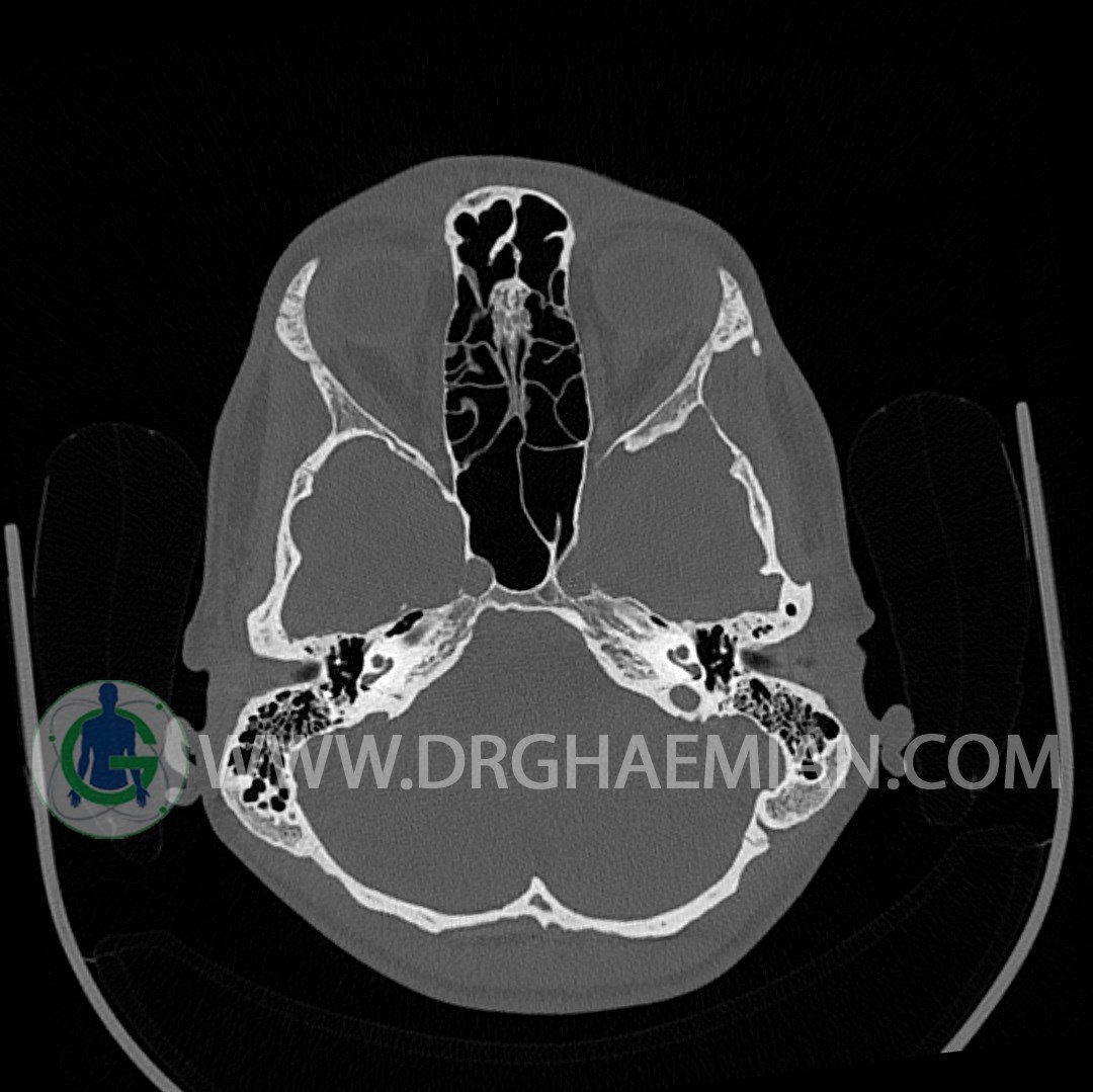 با کمک سی تی اسکن گوش، رادیولوژیست می تواند ساختارهای ریز گوش داخلی و کانال های شنوایی را بررسی کند. در این کیس سندرم بزرگی قنات دهلیزی و کدورت ايزودنس در مجرای گوش خارجی راست دیده می شود.