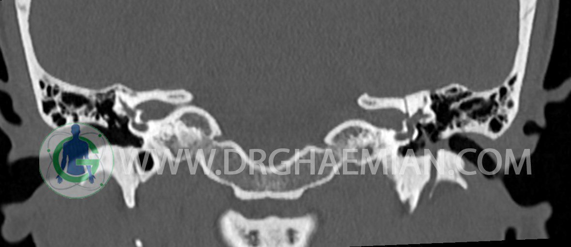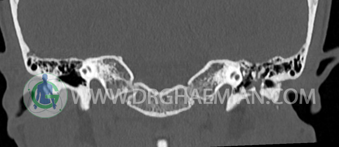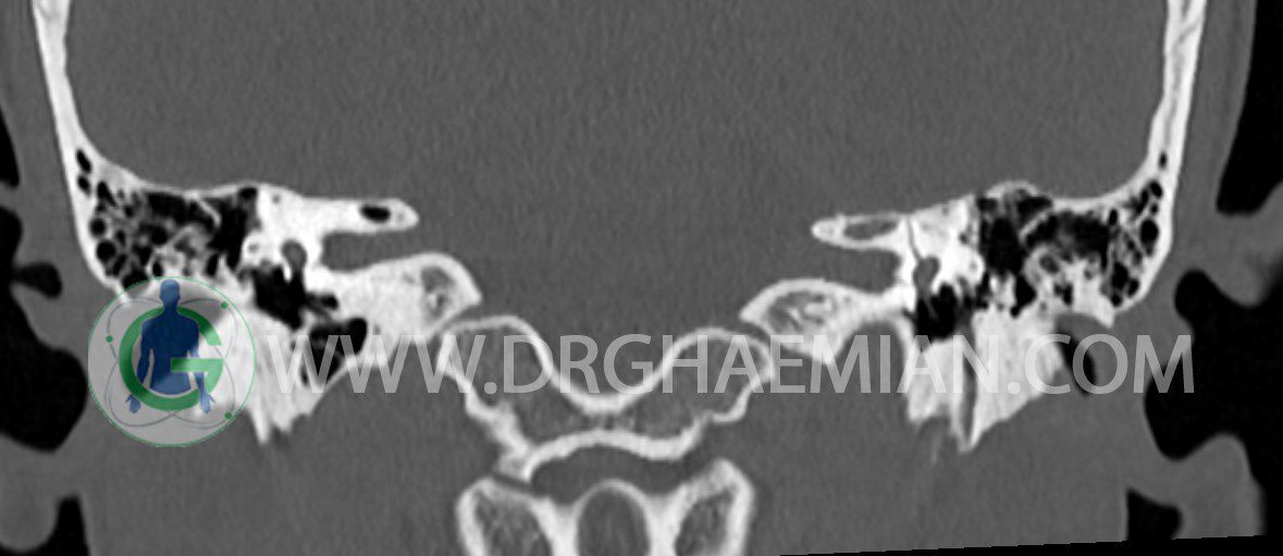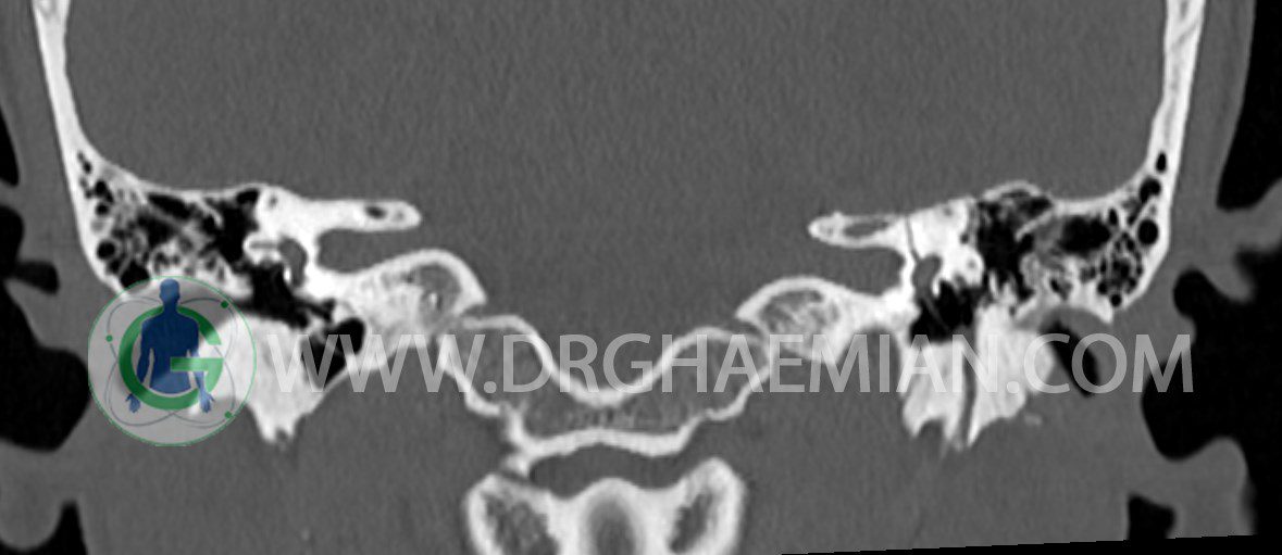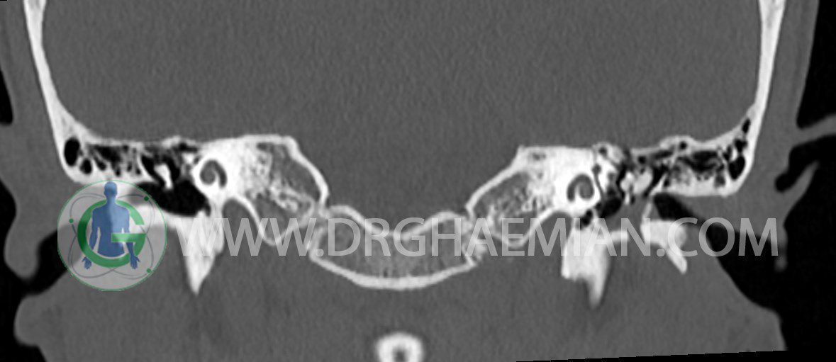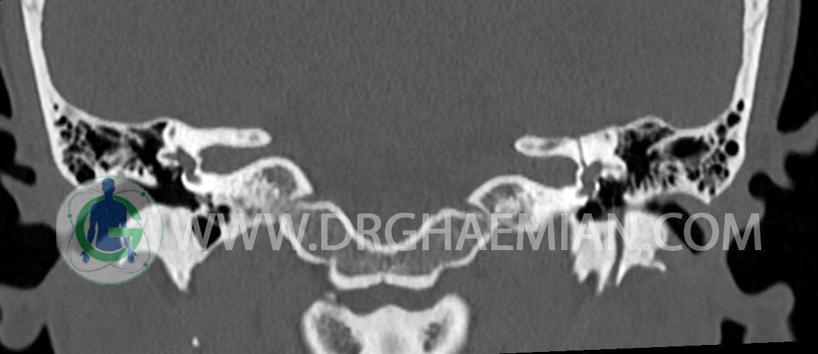 در HRCT از استخوان تمپورال با مقاطع آگزيال ، ساژيتال و کرونال ظريف ( 0.6 mm ) :