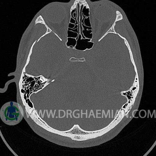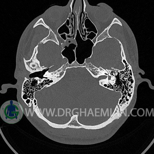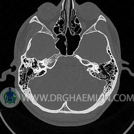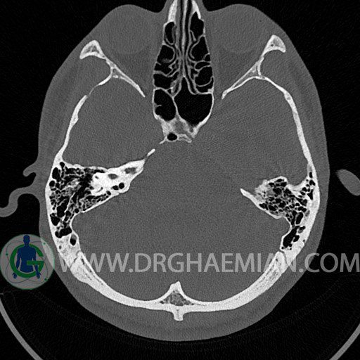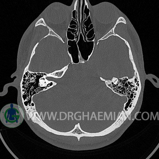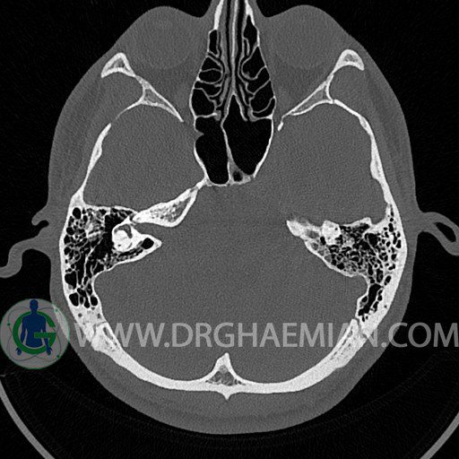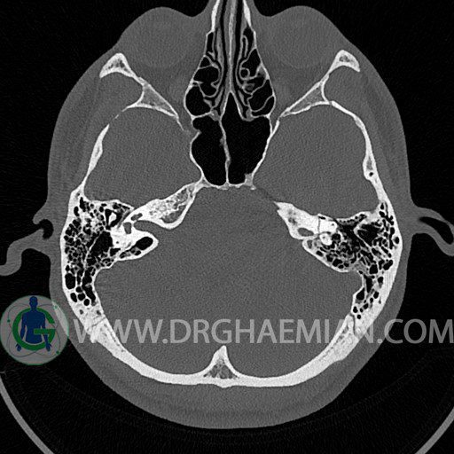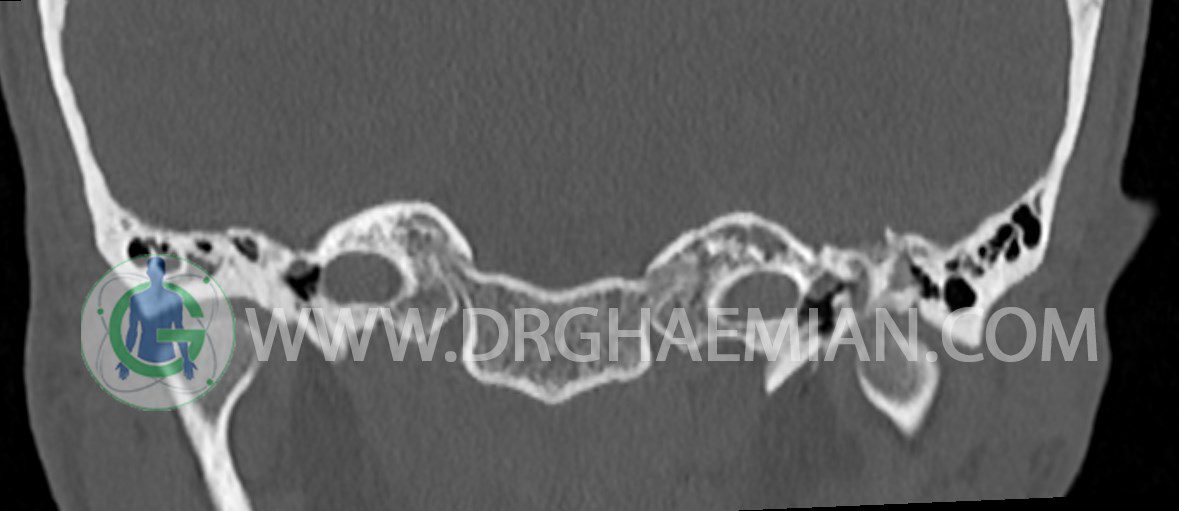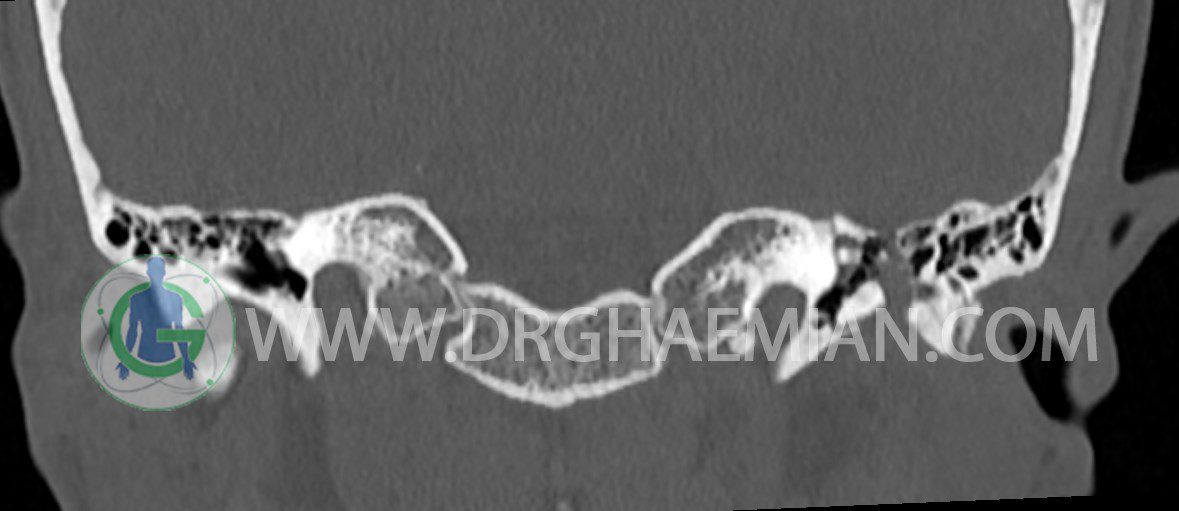 در HRCT از استخوان تمپورال با مقاطع آگزيال ، ساژيتال و کرونال ظريف ( 0.6 mm ) :