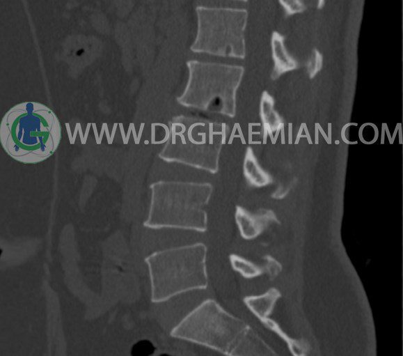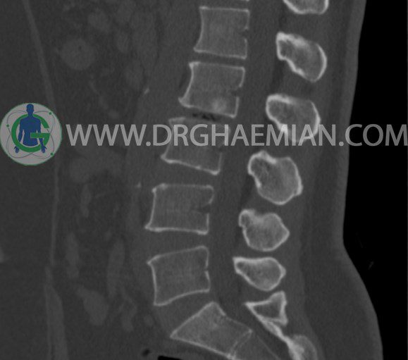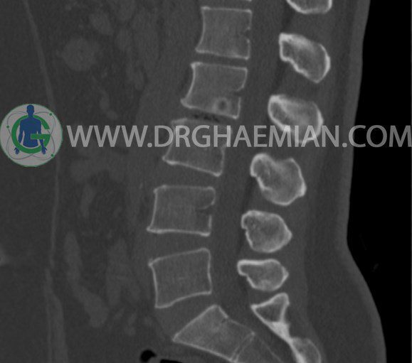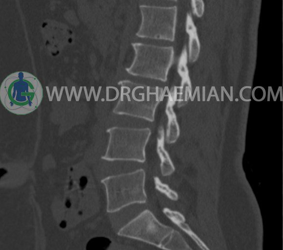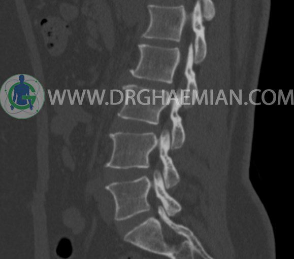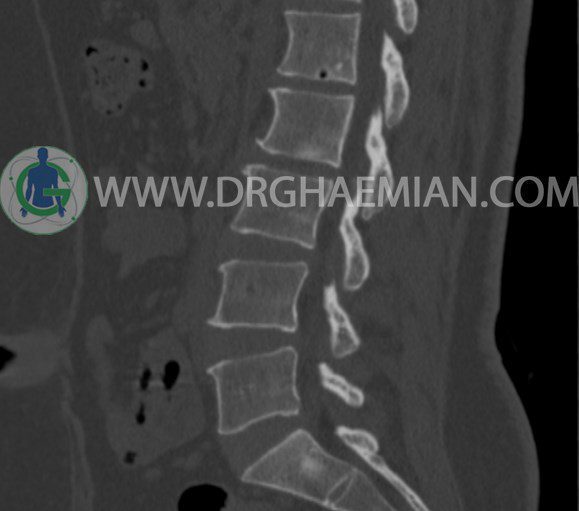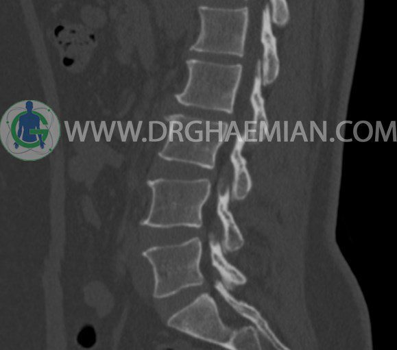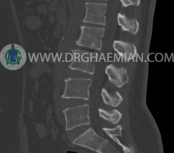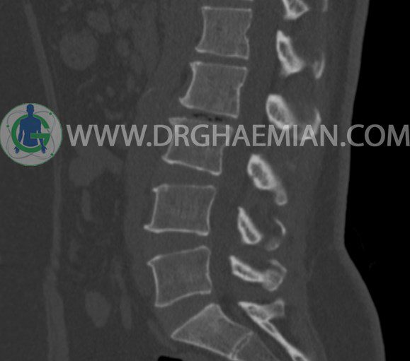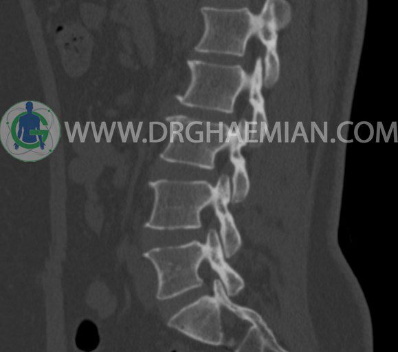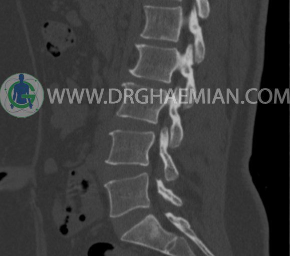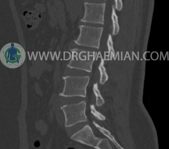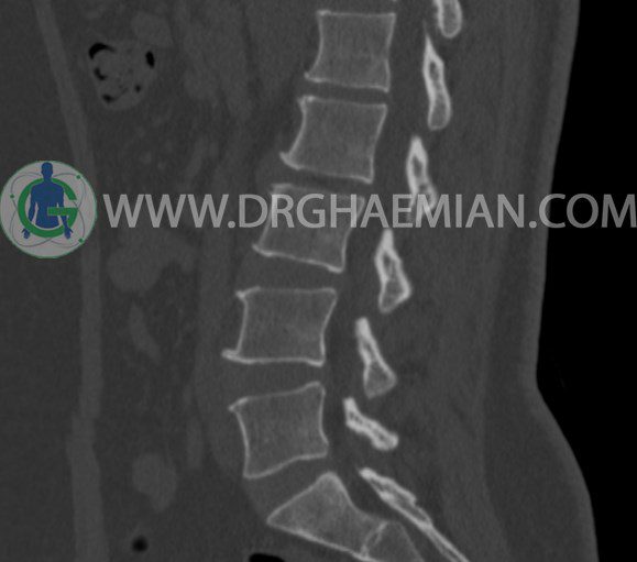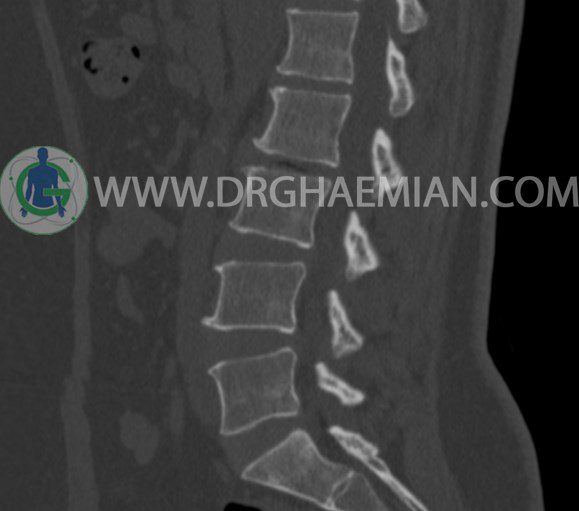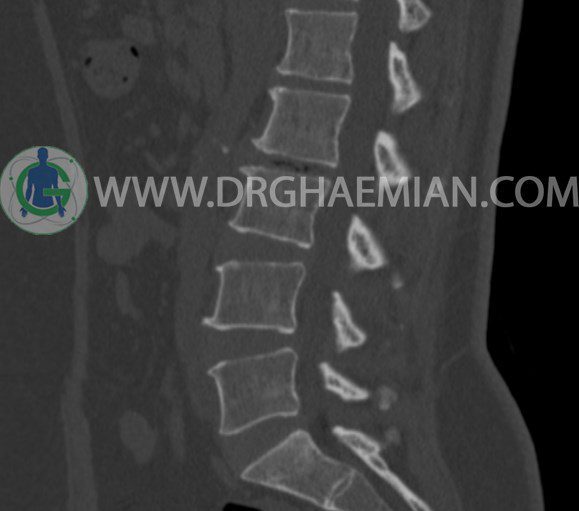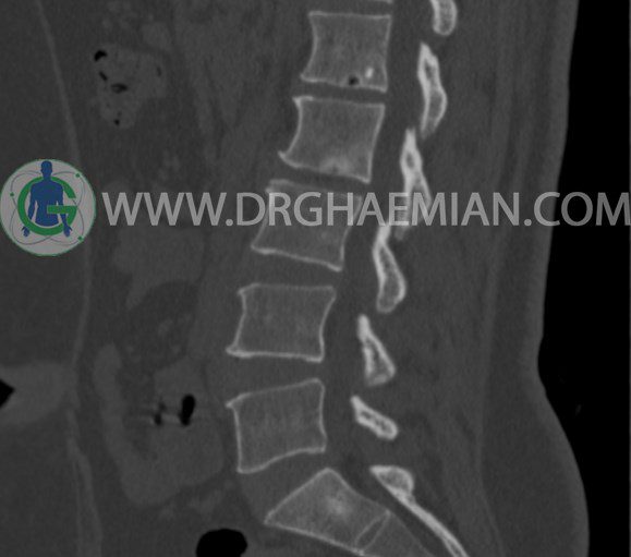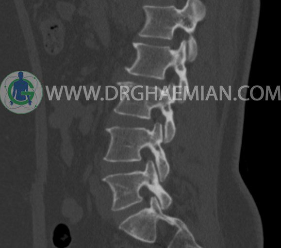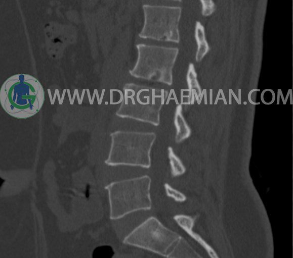 سی تی اسکن اسپيرال از مهره های L1 تا S1 با و بدون کنتراست (مولتي ديدکتور 16 با مقاطع ظريف و بازسازي هاي ساژيتال و کرونال و 3D):