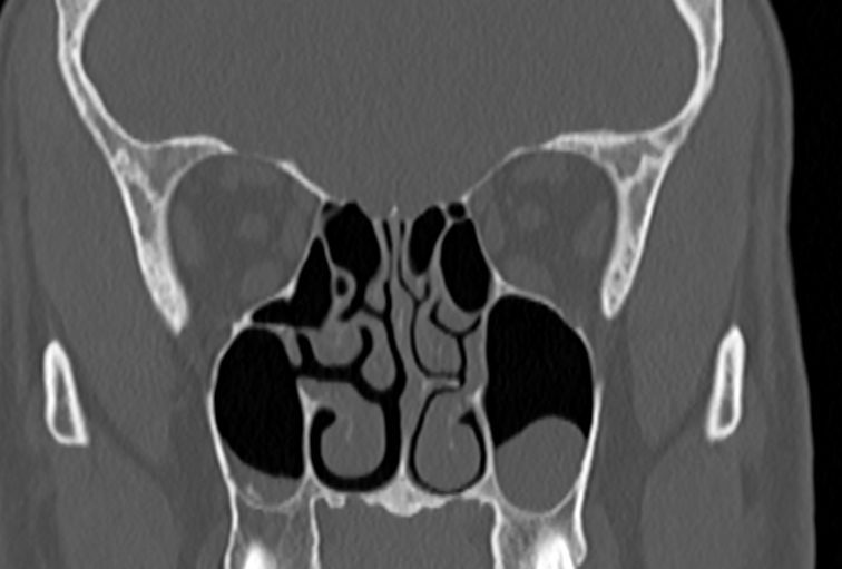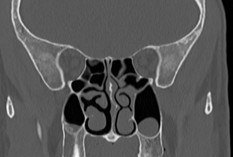 اوستيوم سينوسهای ماگزيلاری باز است و ضايعه ای در محل اوستئومئاتال کمپلکسOMC)) دو طرف ديده نمیشود.